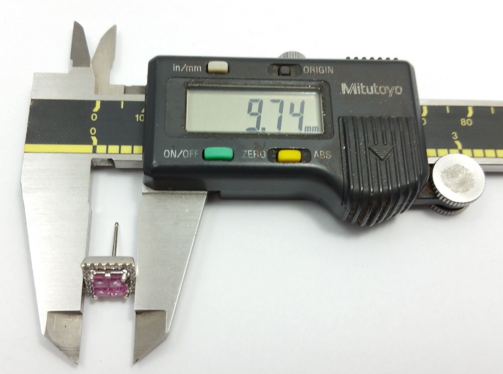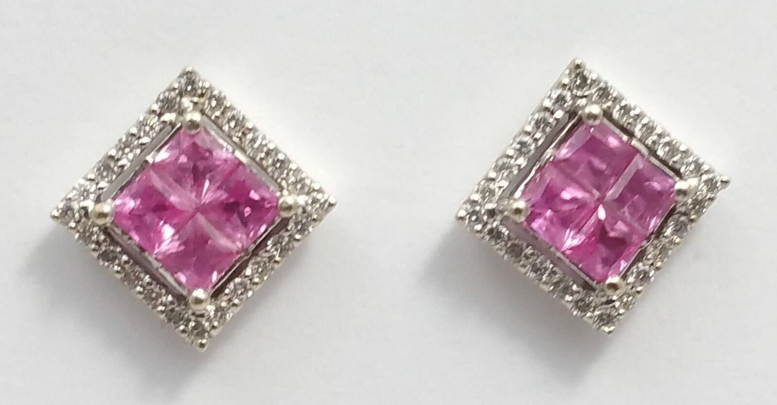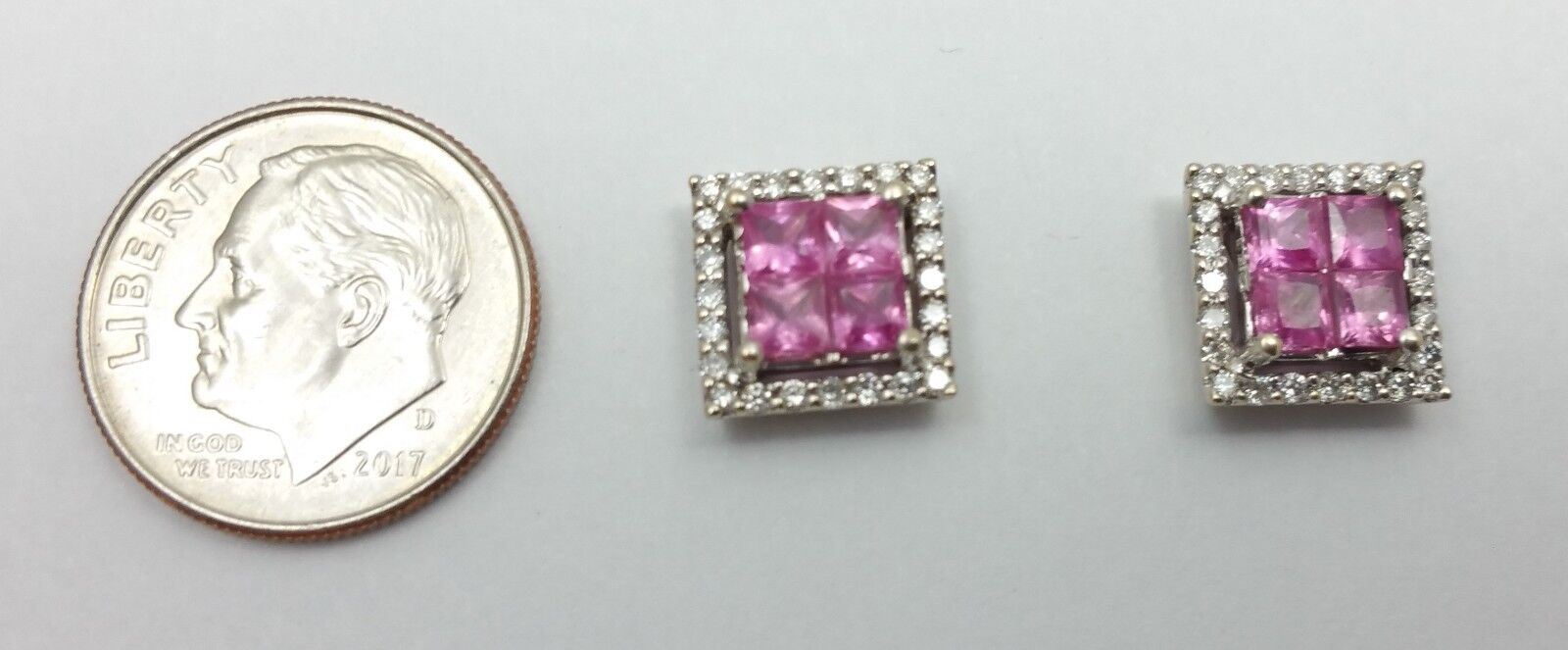 18K White Gold Square Diamond and Tourmaline Stud Earrings