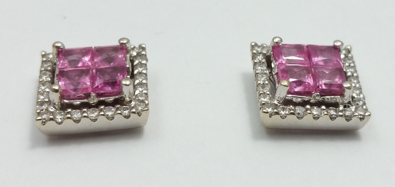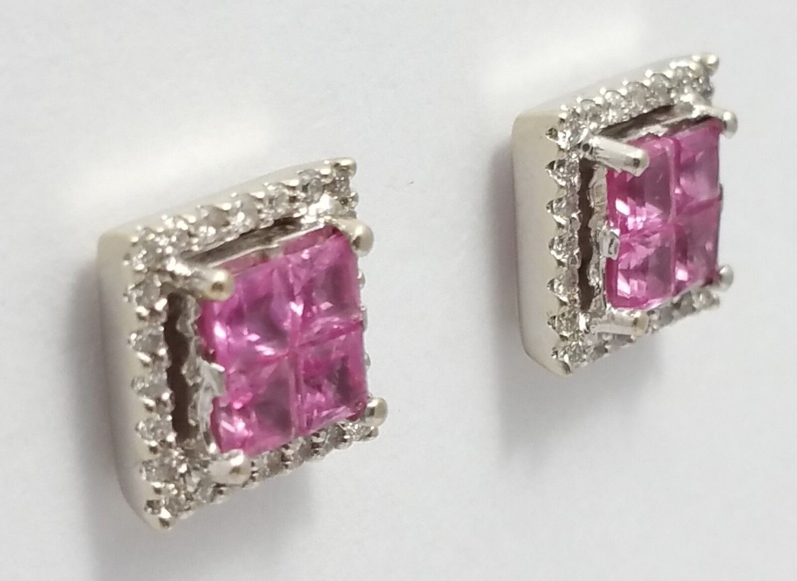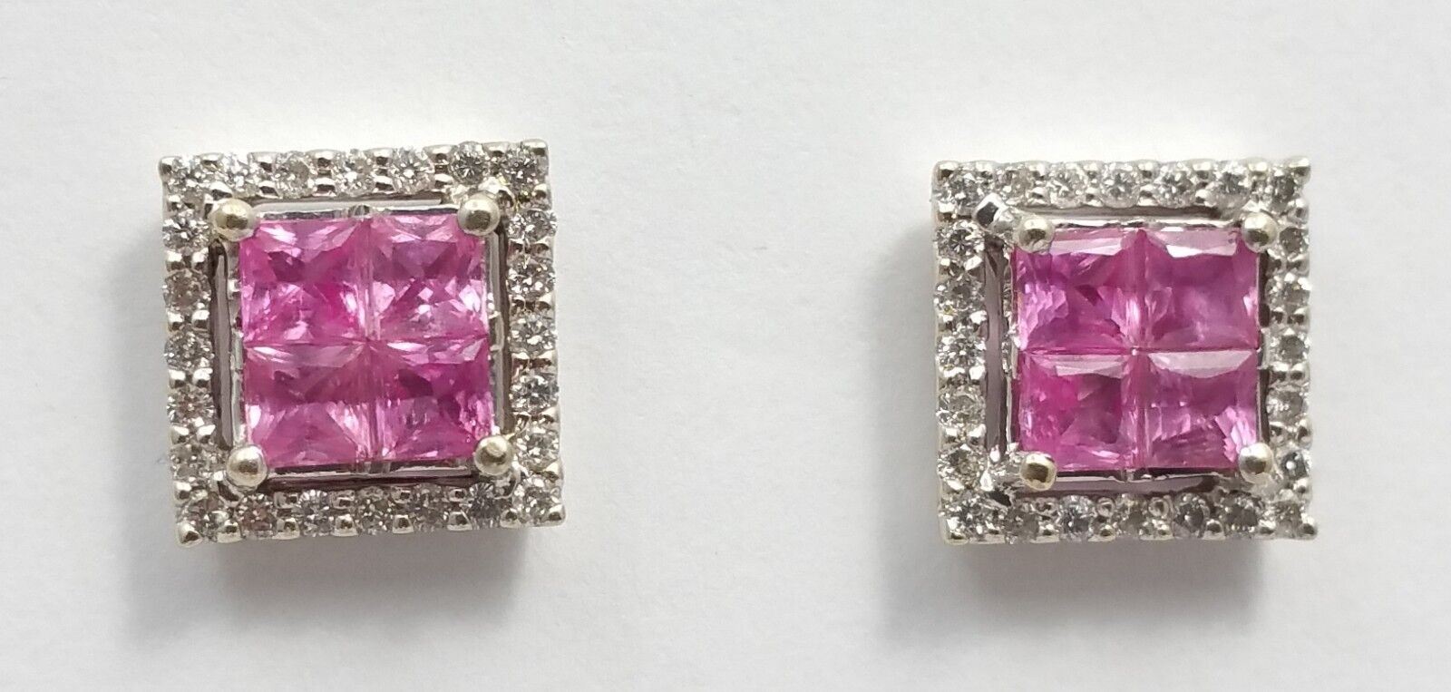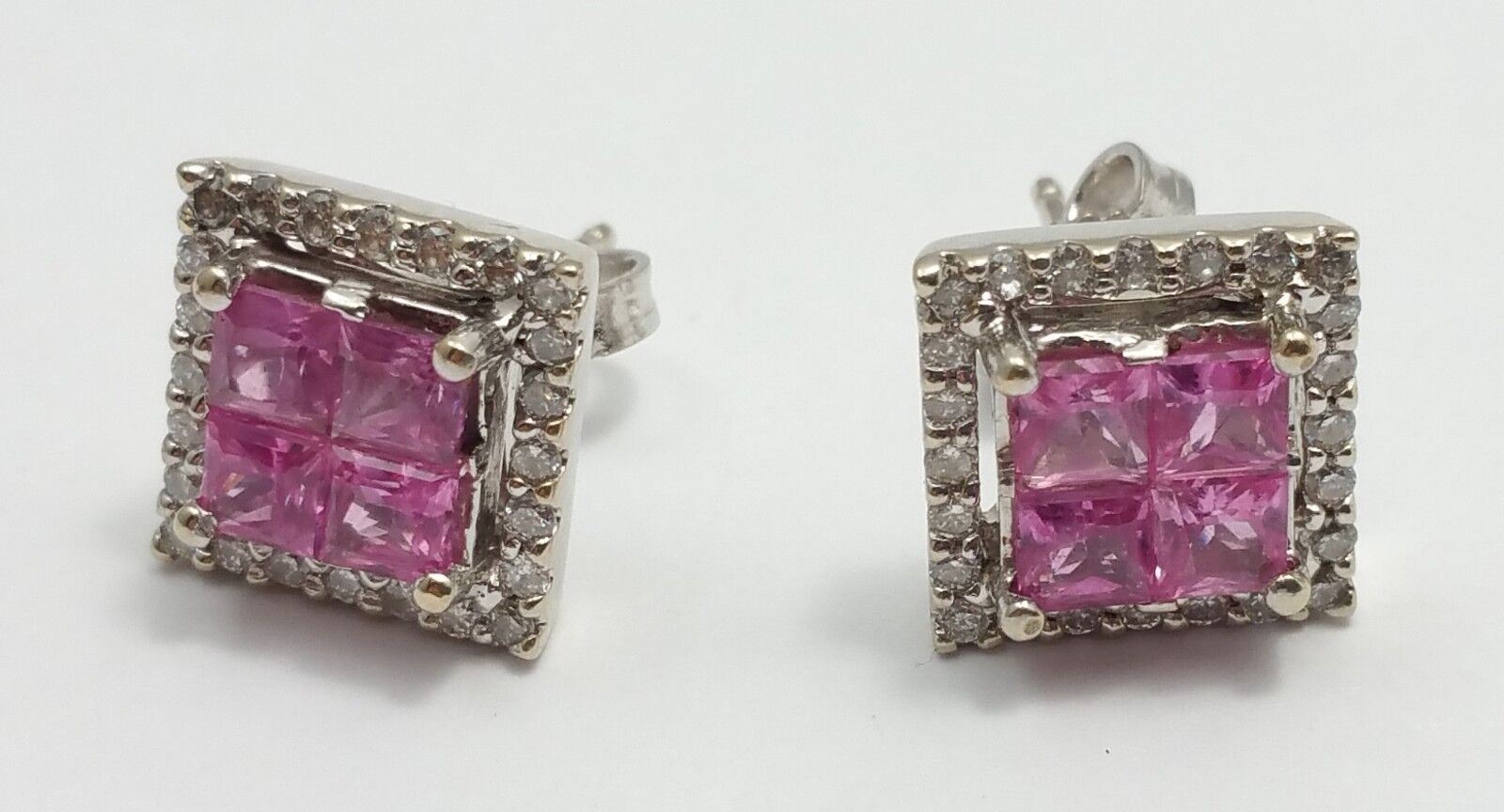 18K White Gold Square Diamond and Tourmaline Stud Earrings