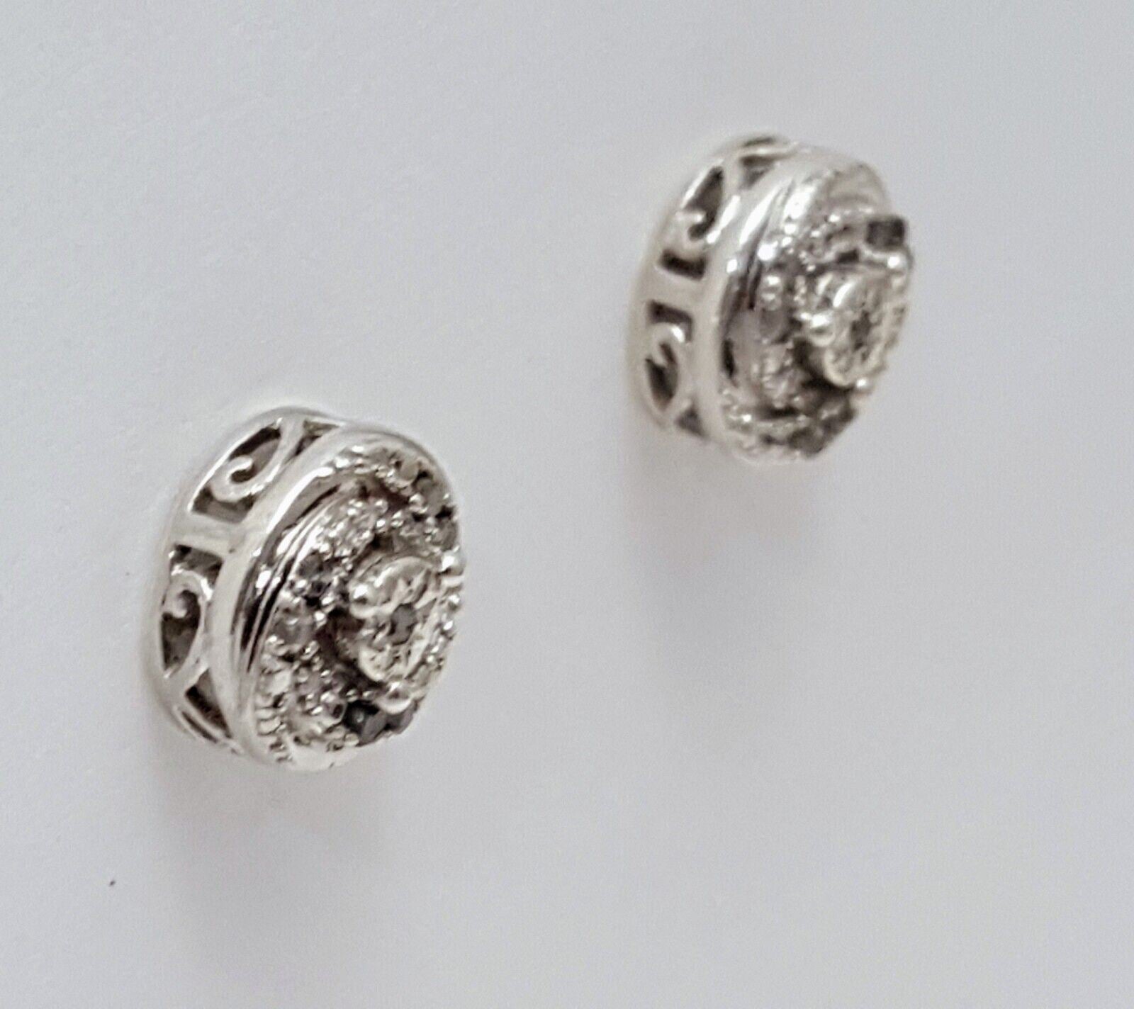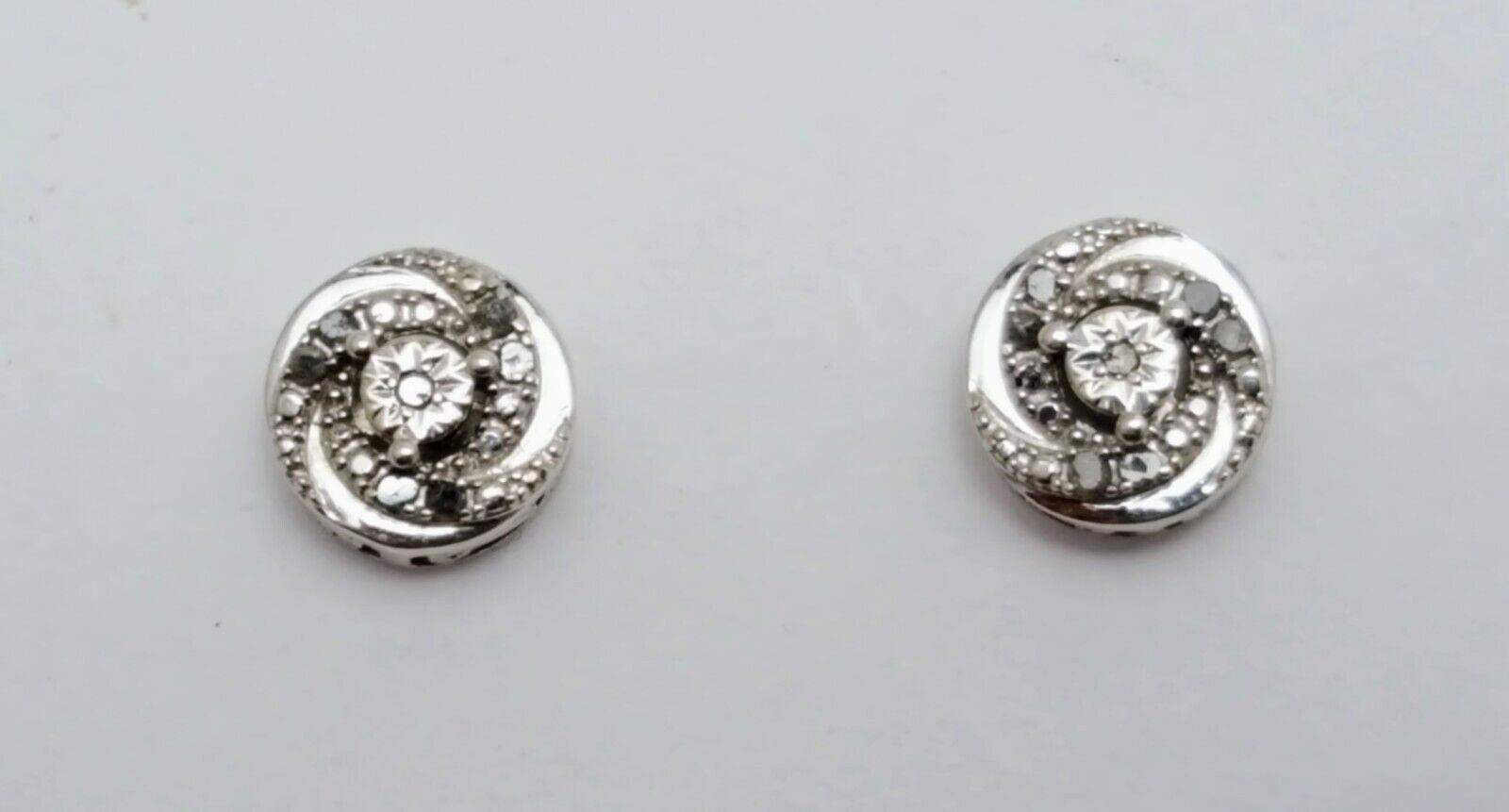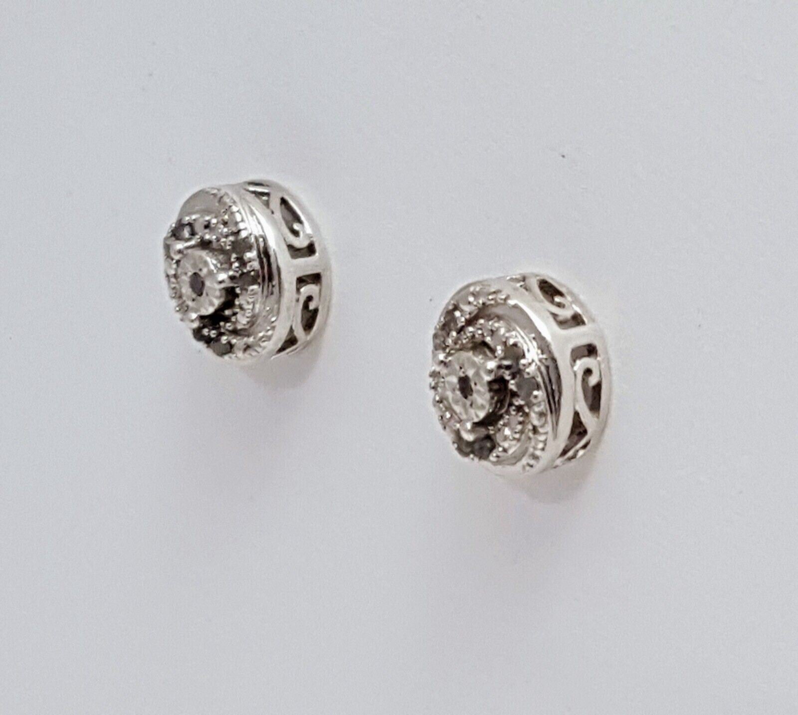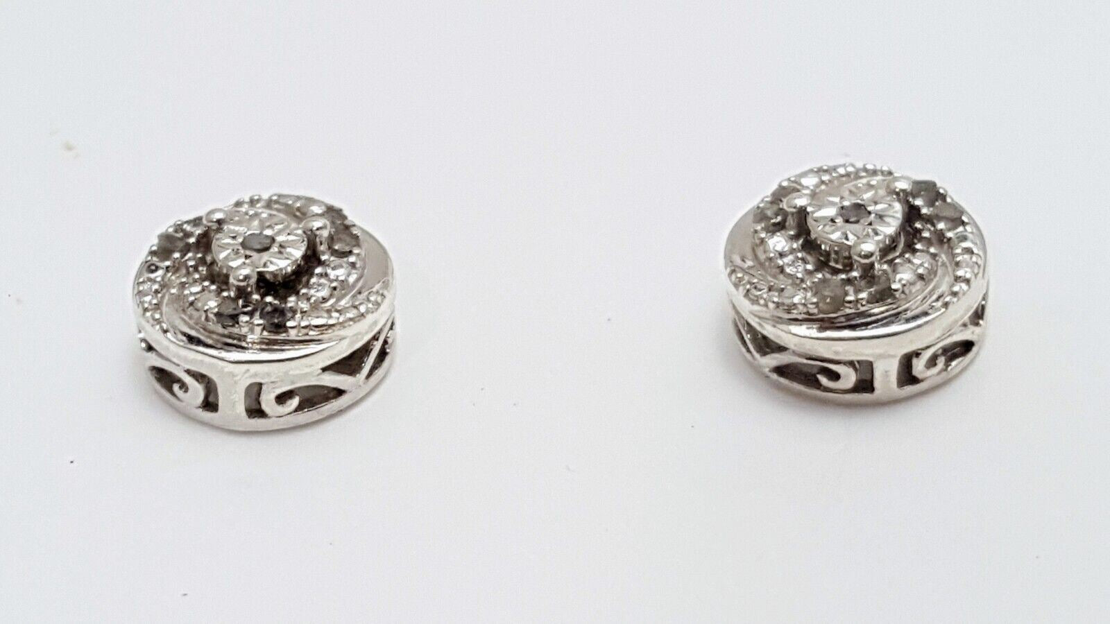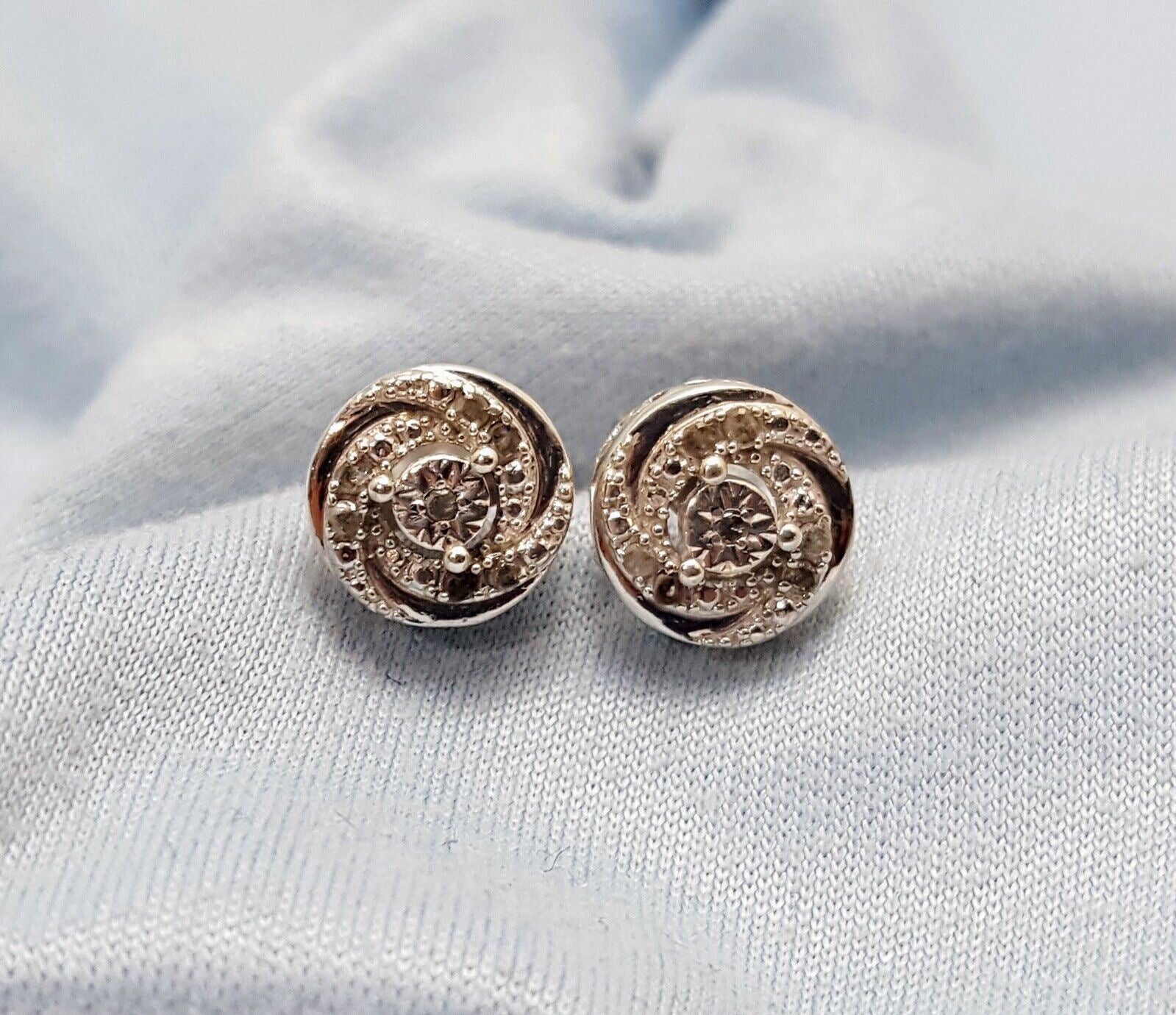 925 Sterling Silver Designer Round Raw Diamonds Stud Earrings