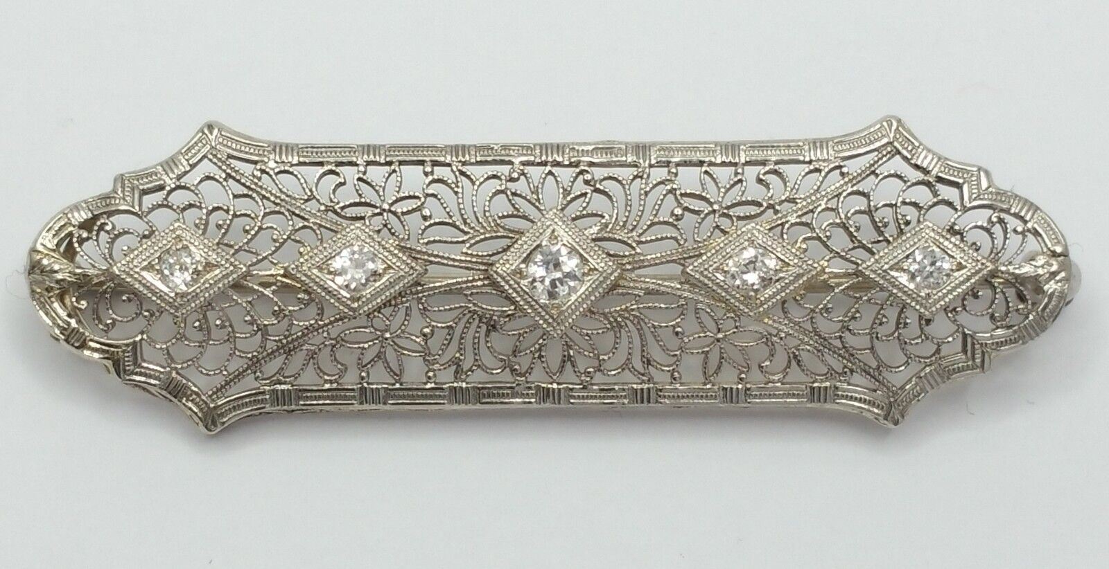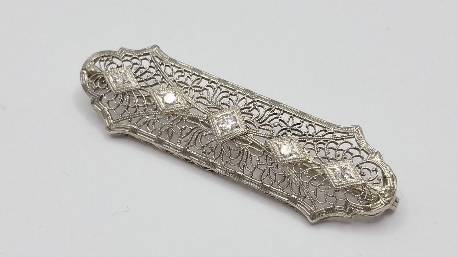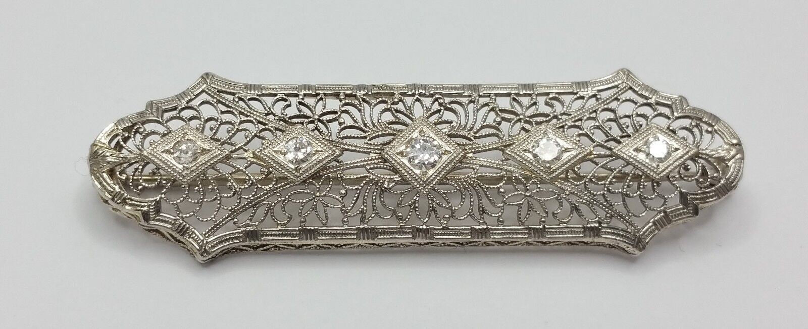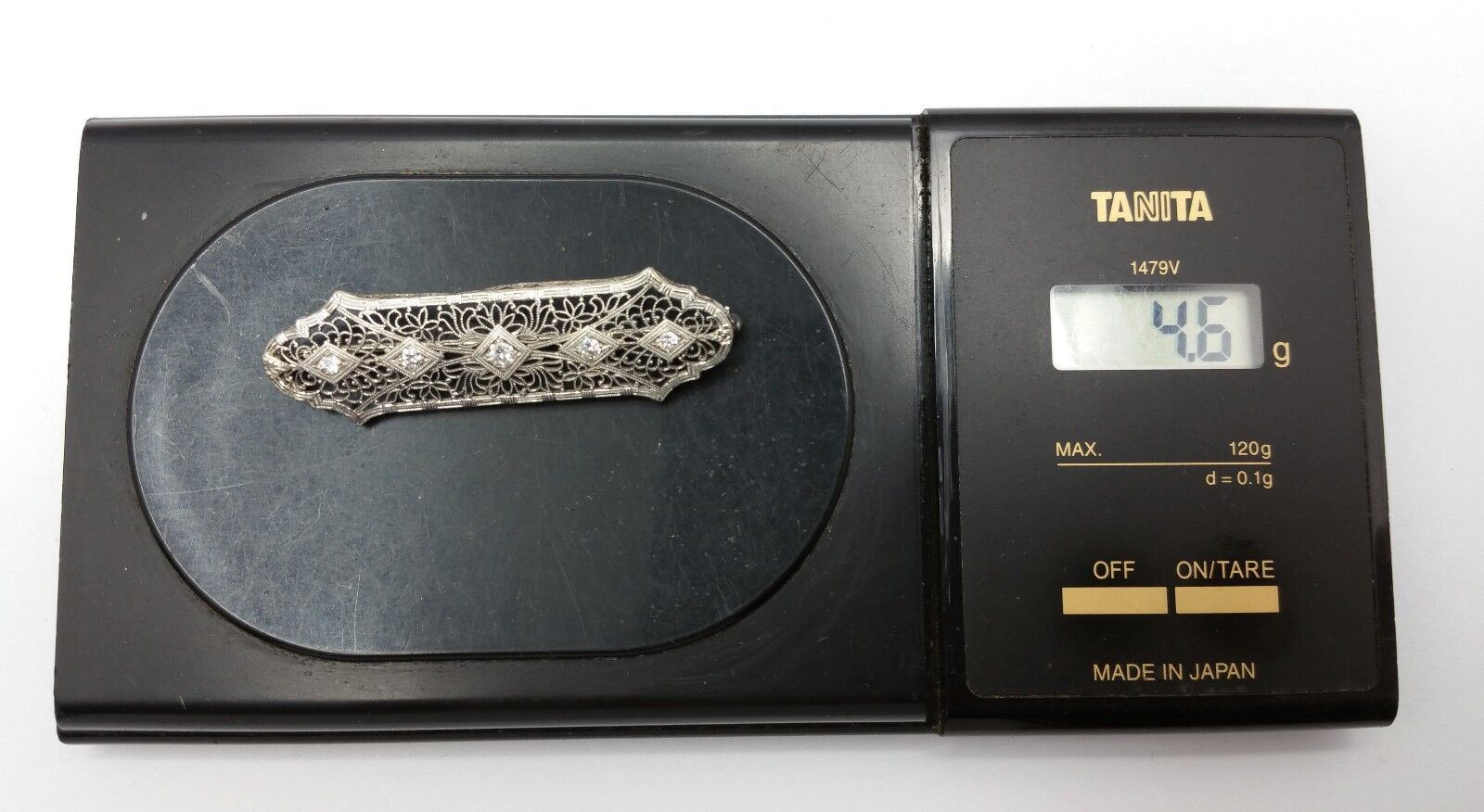 Vintage Victorian 14K Solid White Gold Designer Diamond Brooch Pin
