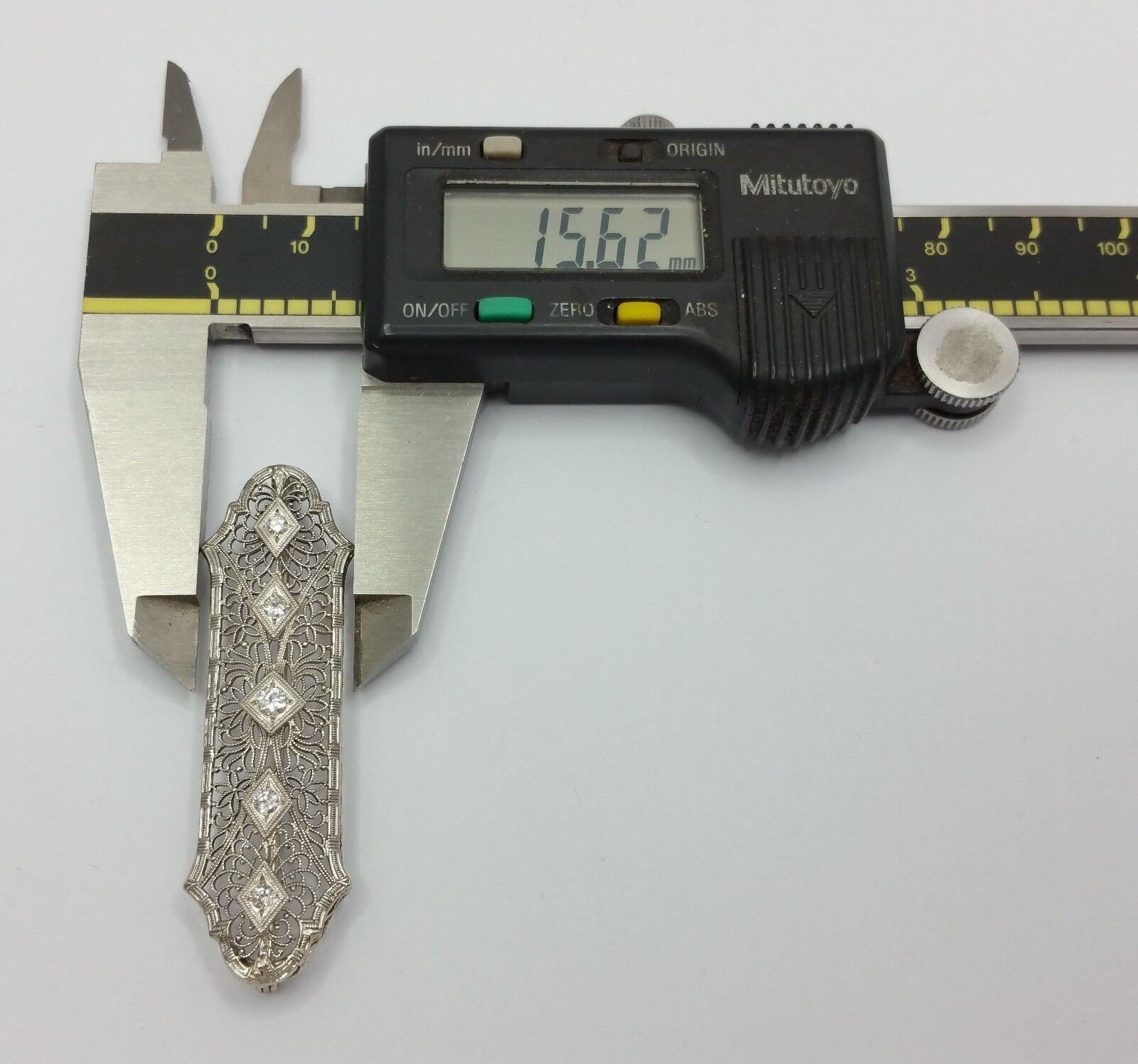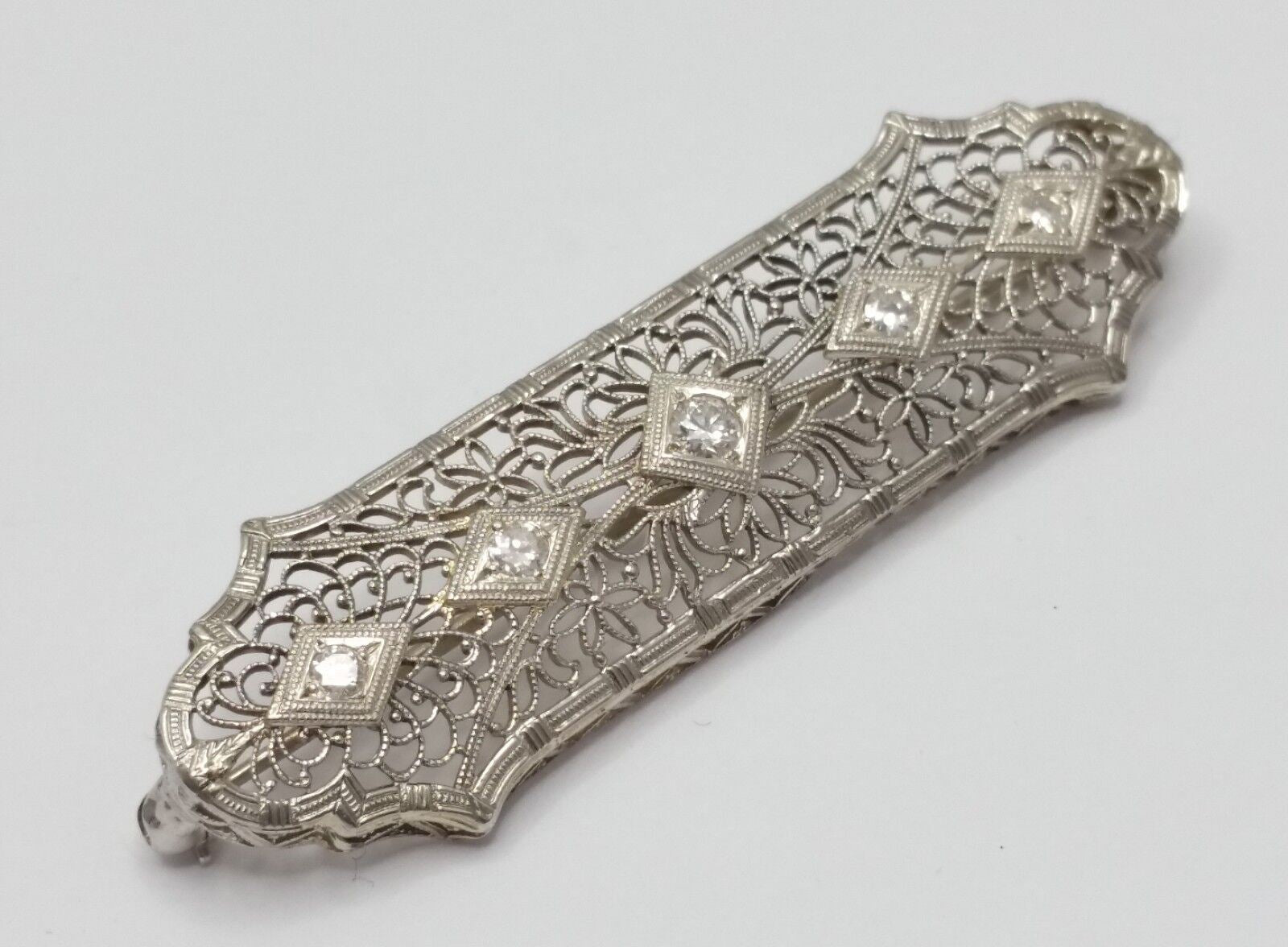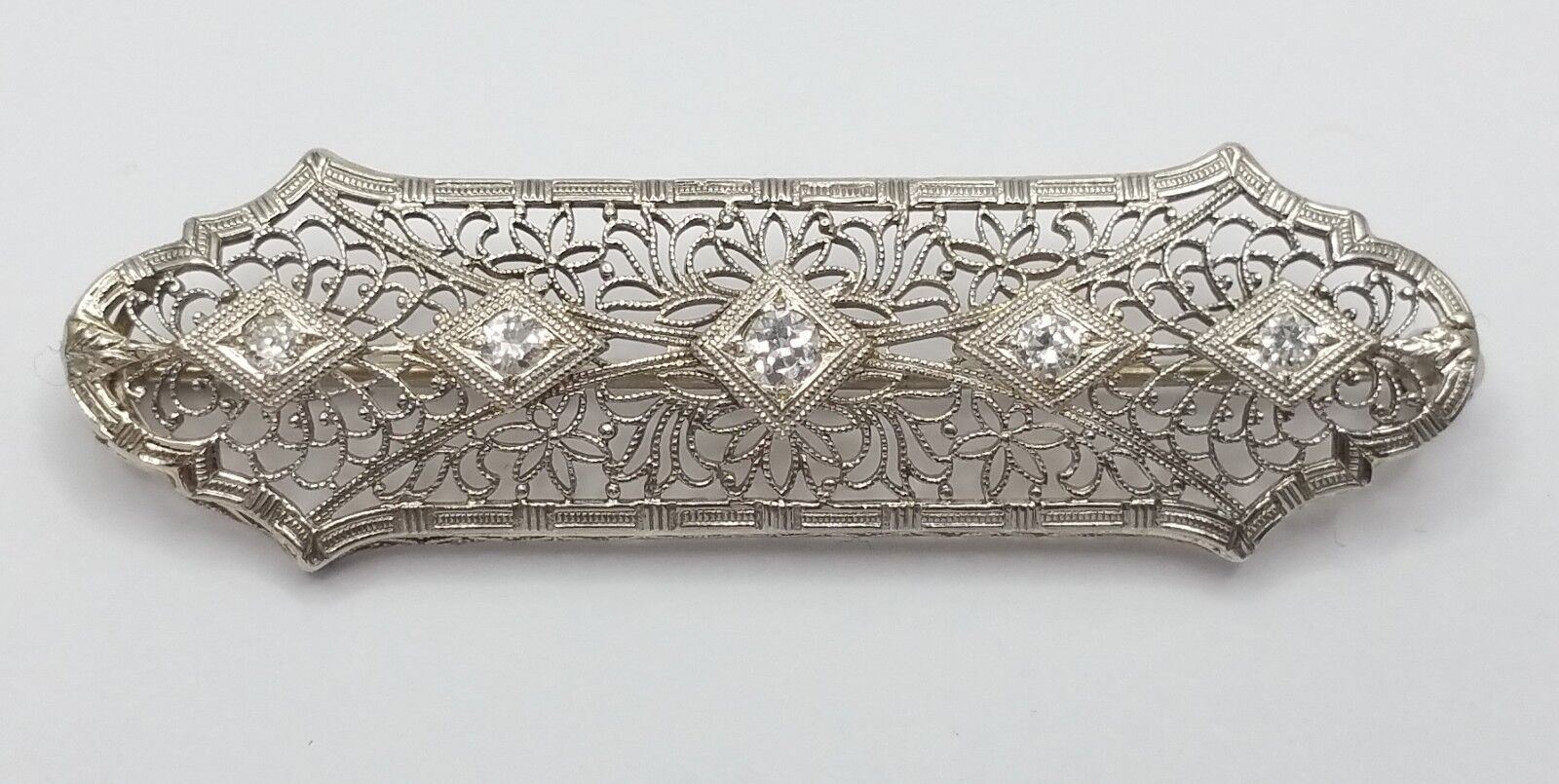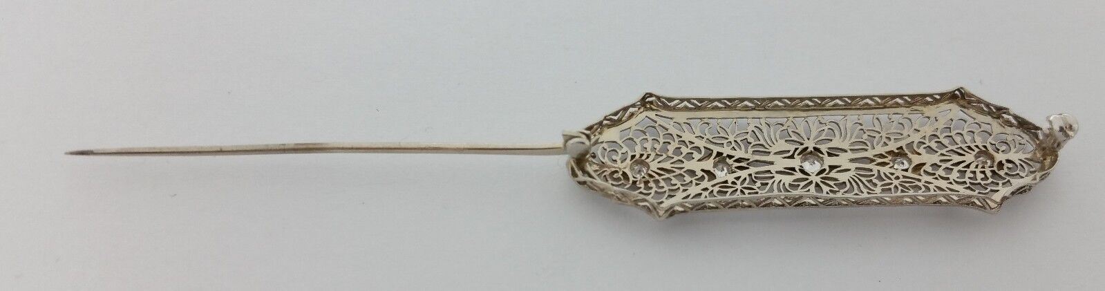 Vintage Victorian 14K Solid White Gold Designer Diamond Brooch Pin