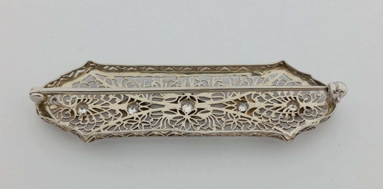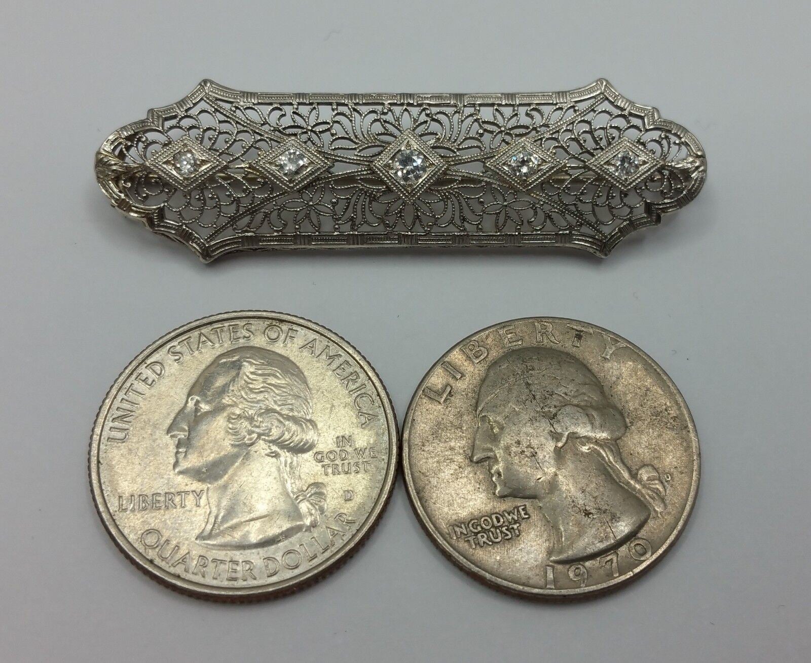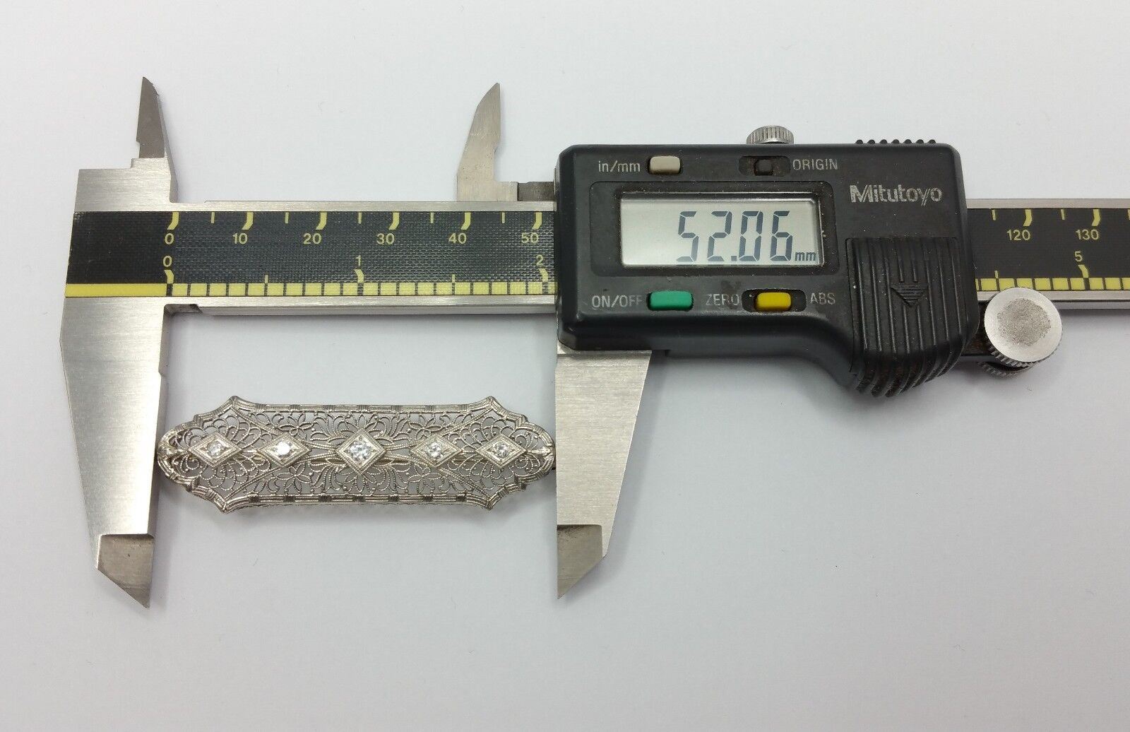 Vintage Victorian 14K Solid White Gold Designer Diamond Brooch Pin