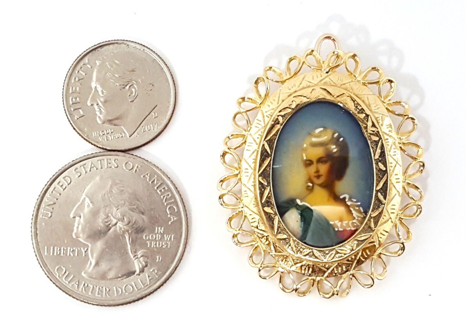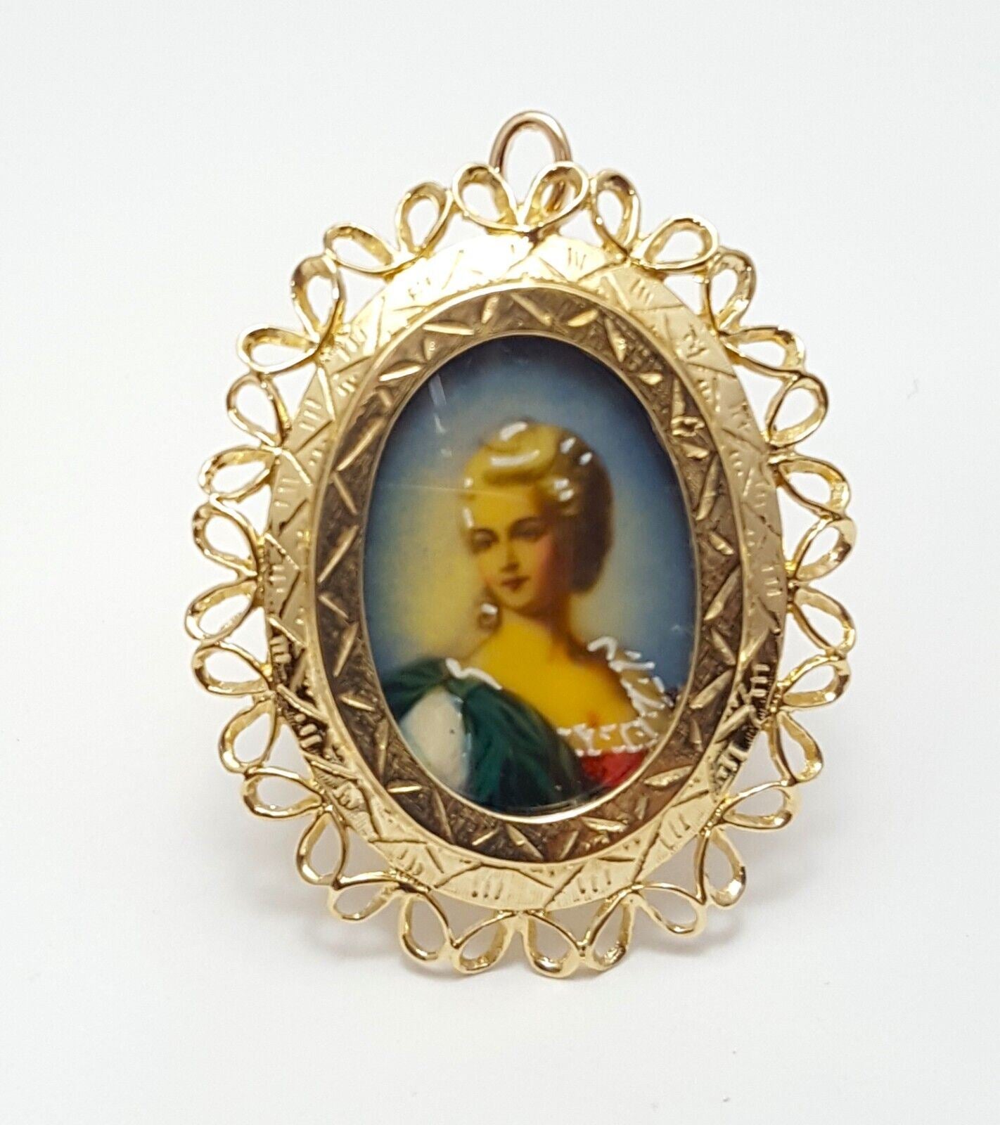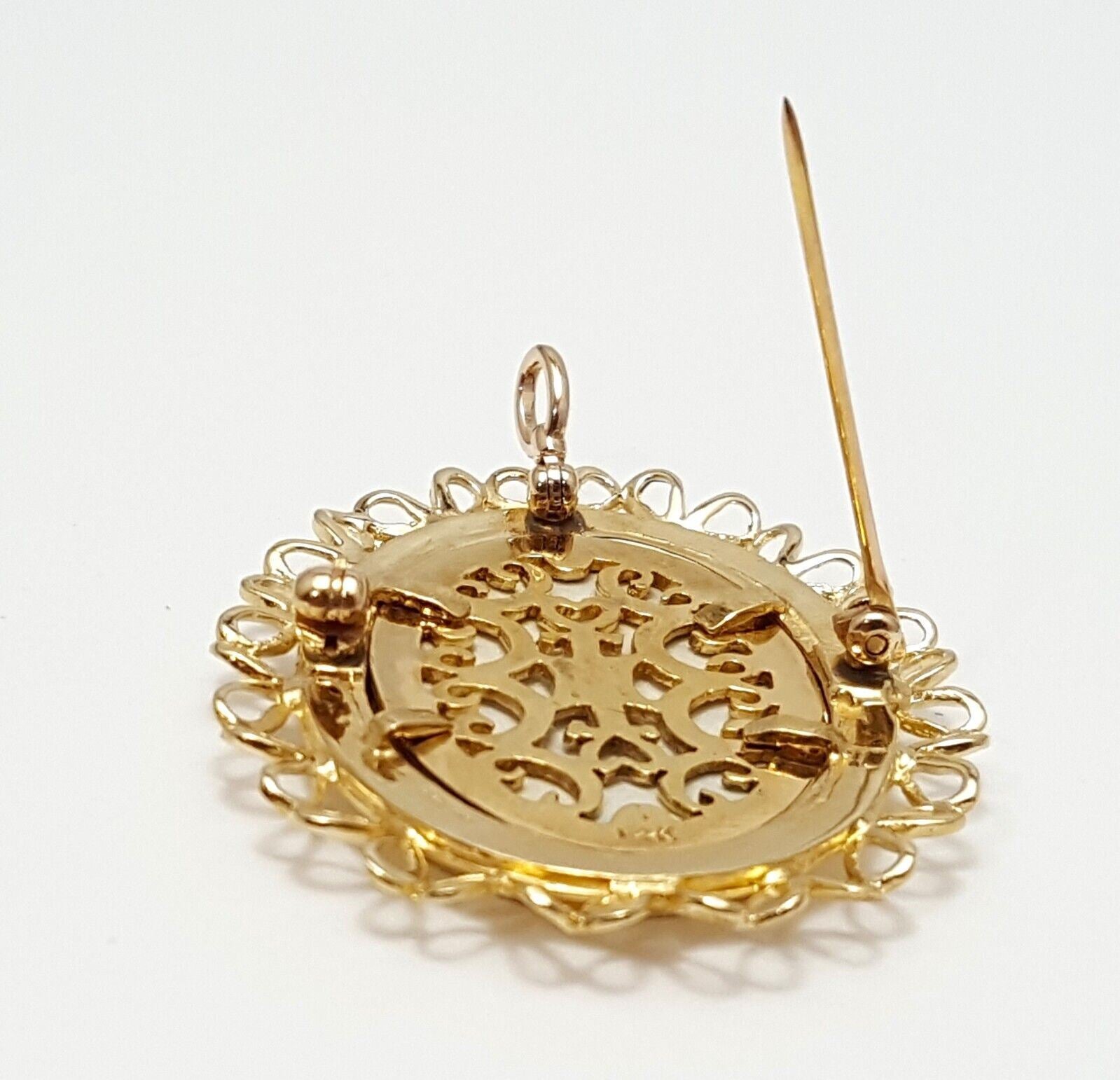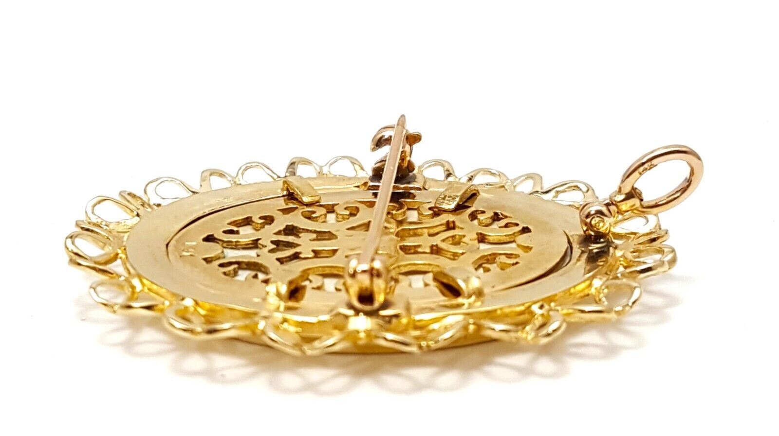 Vintage Victorian 14K Solid Yellow Gold Designer Enamel Brooch Pin Charm Pendant