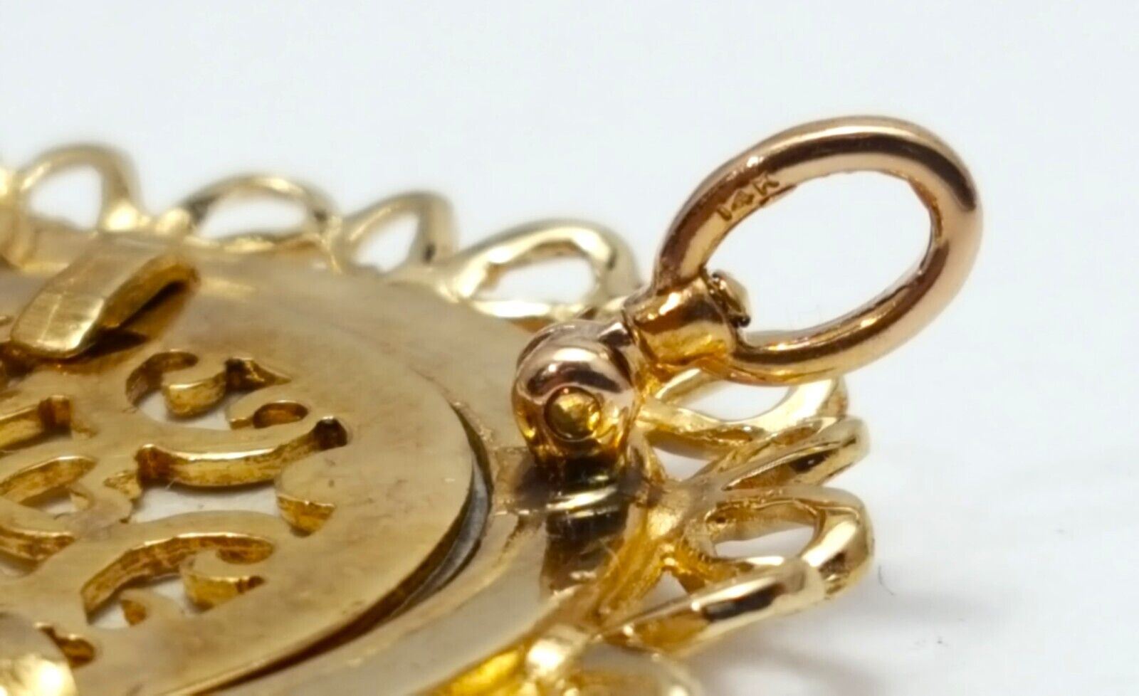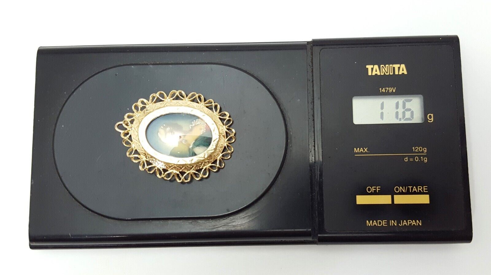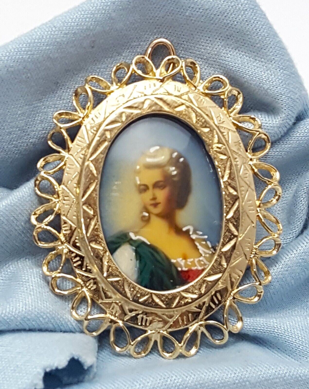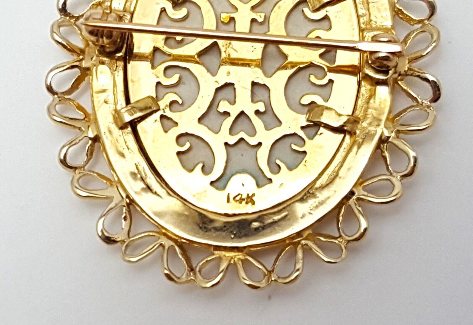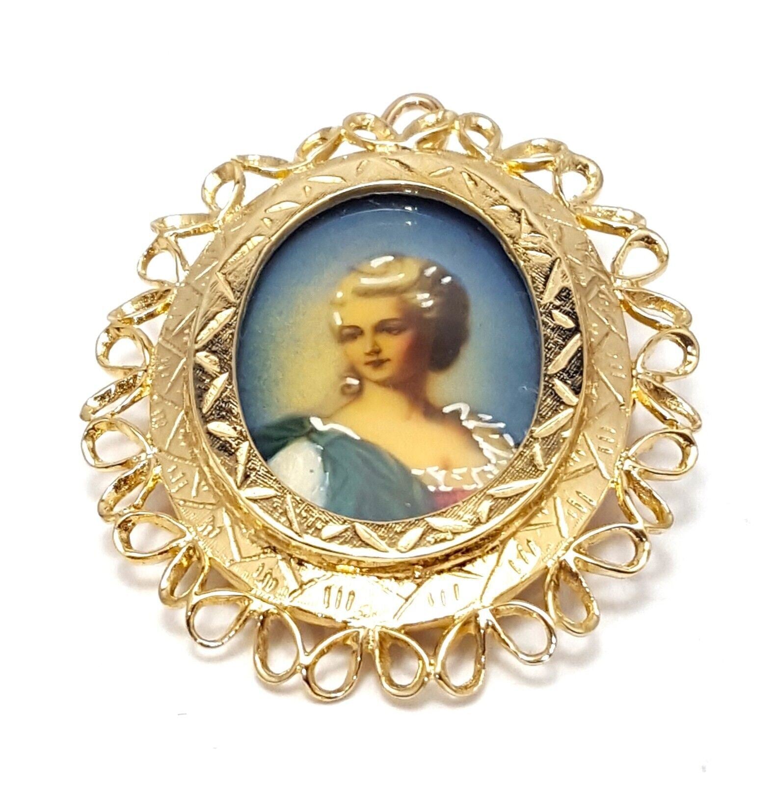 Vintage Victorian 14K Solid Yellow Gold Designer Enamel Brooch Pin Charm Pendant