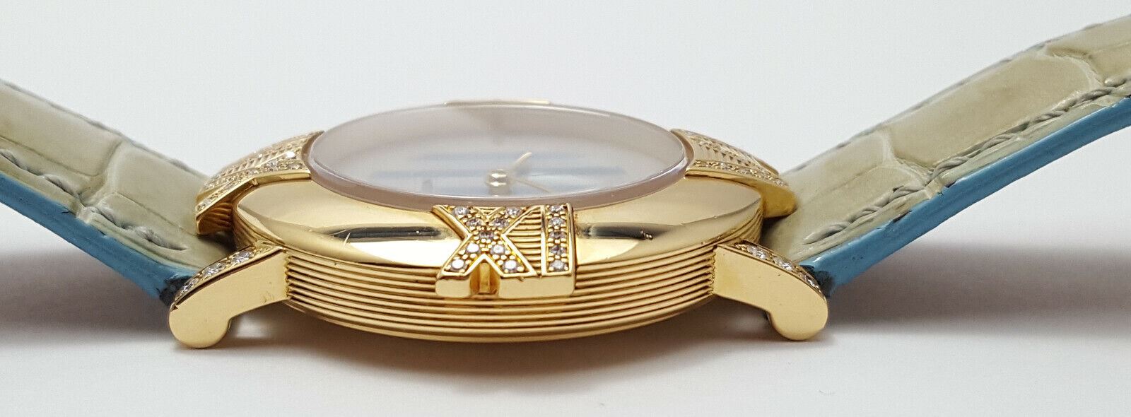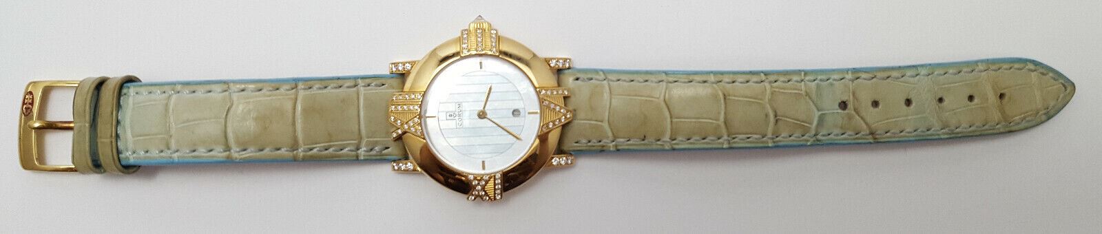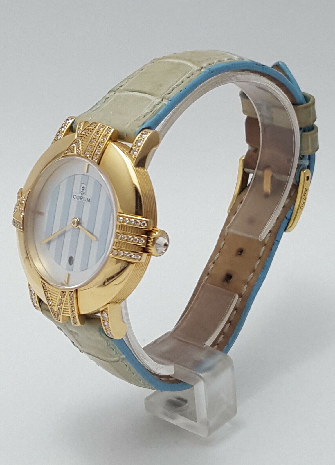 Corum 18kt Yellow Gold Diamond Mother of Pearl Alligator Leather Watch 49.301.65