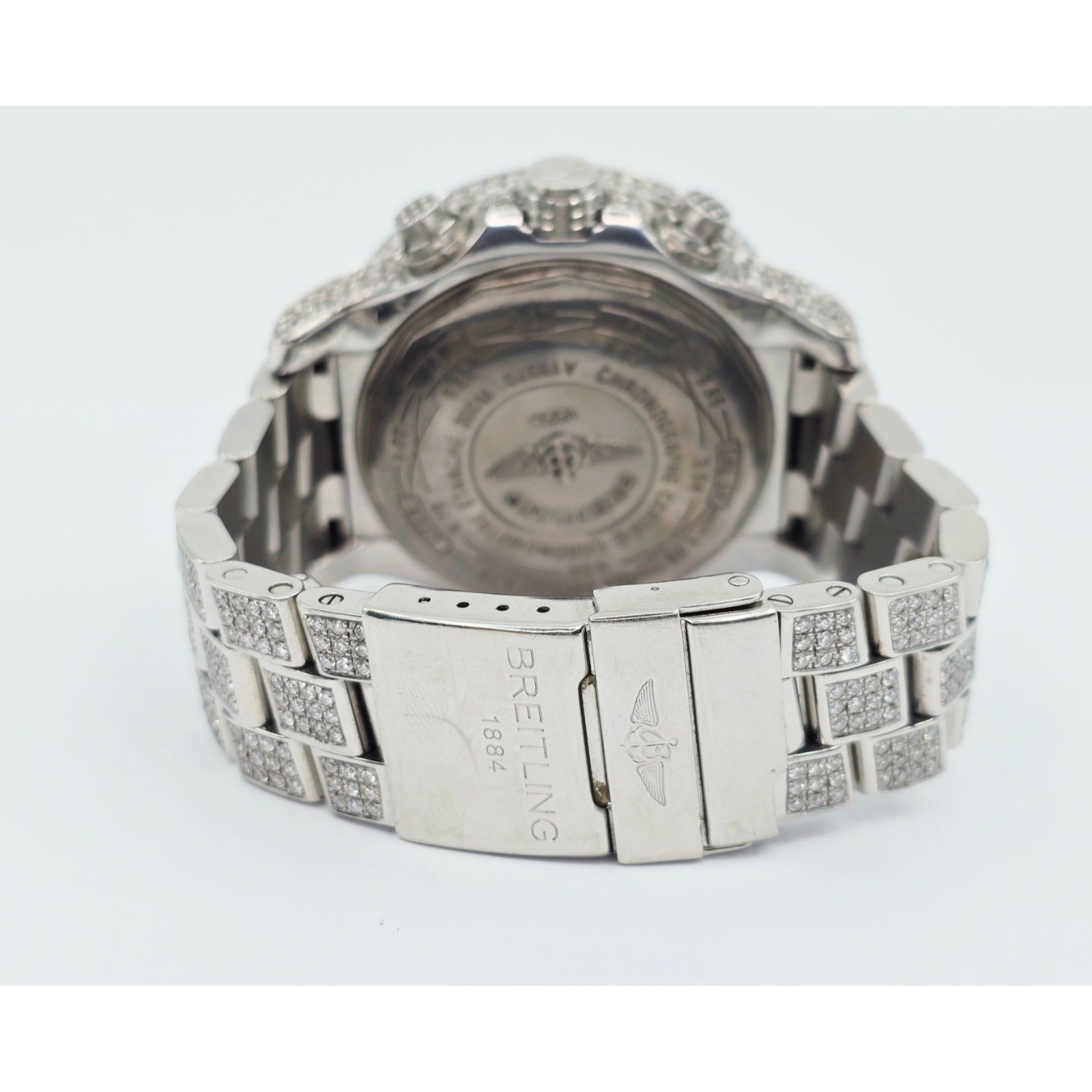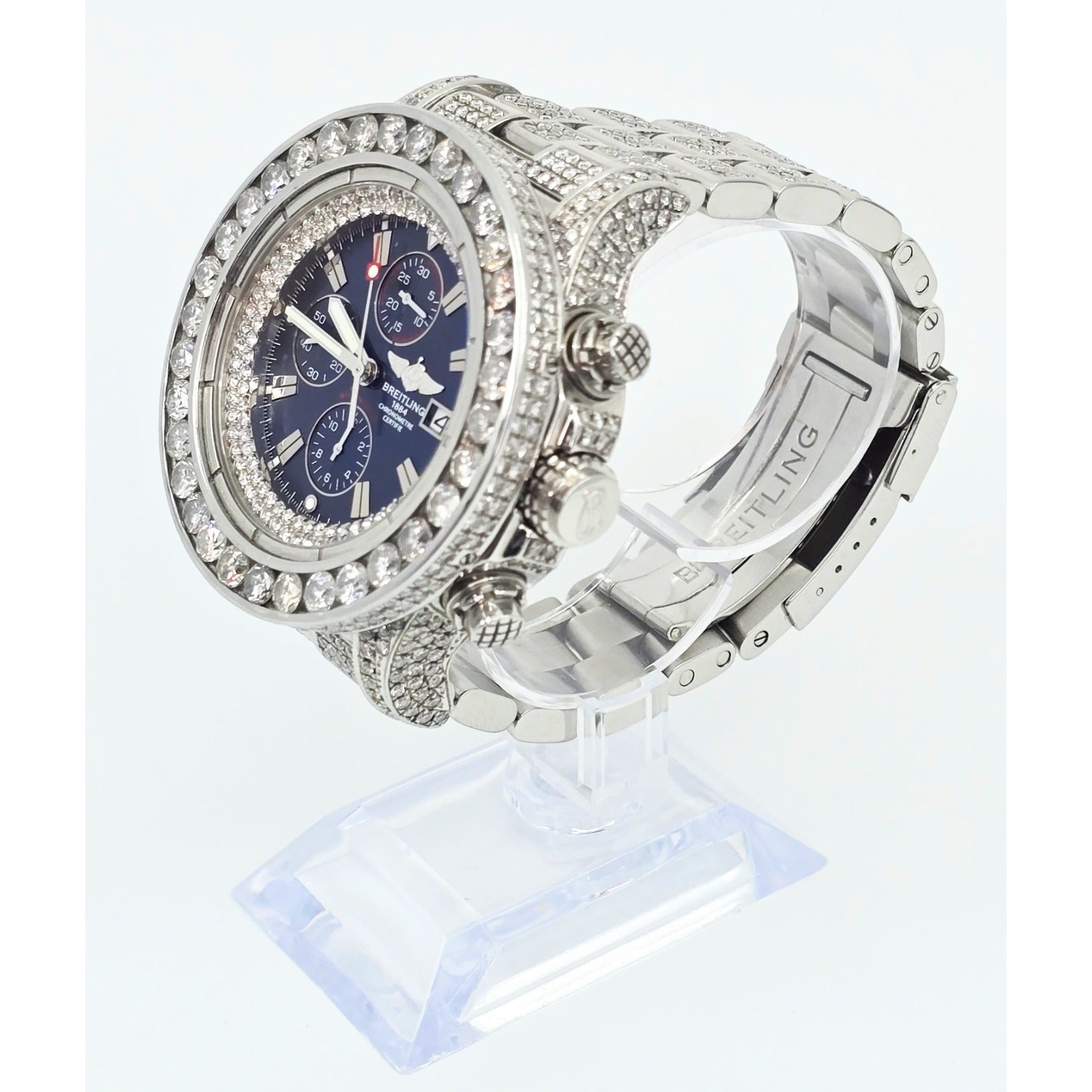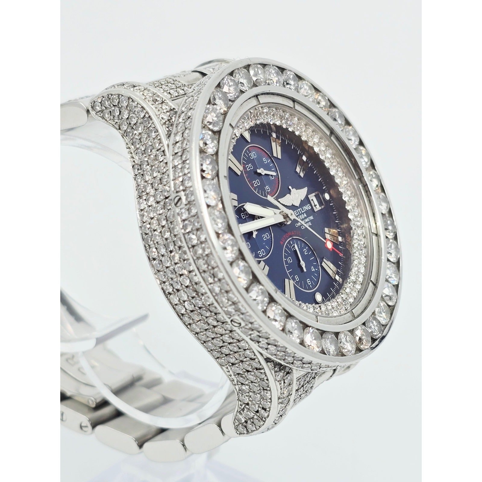 Custom Breitling A13370 Super Avenger XL Blue 48MM Steel Diamond Watch 18.60ct