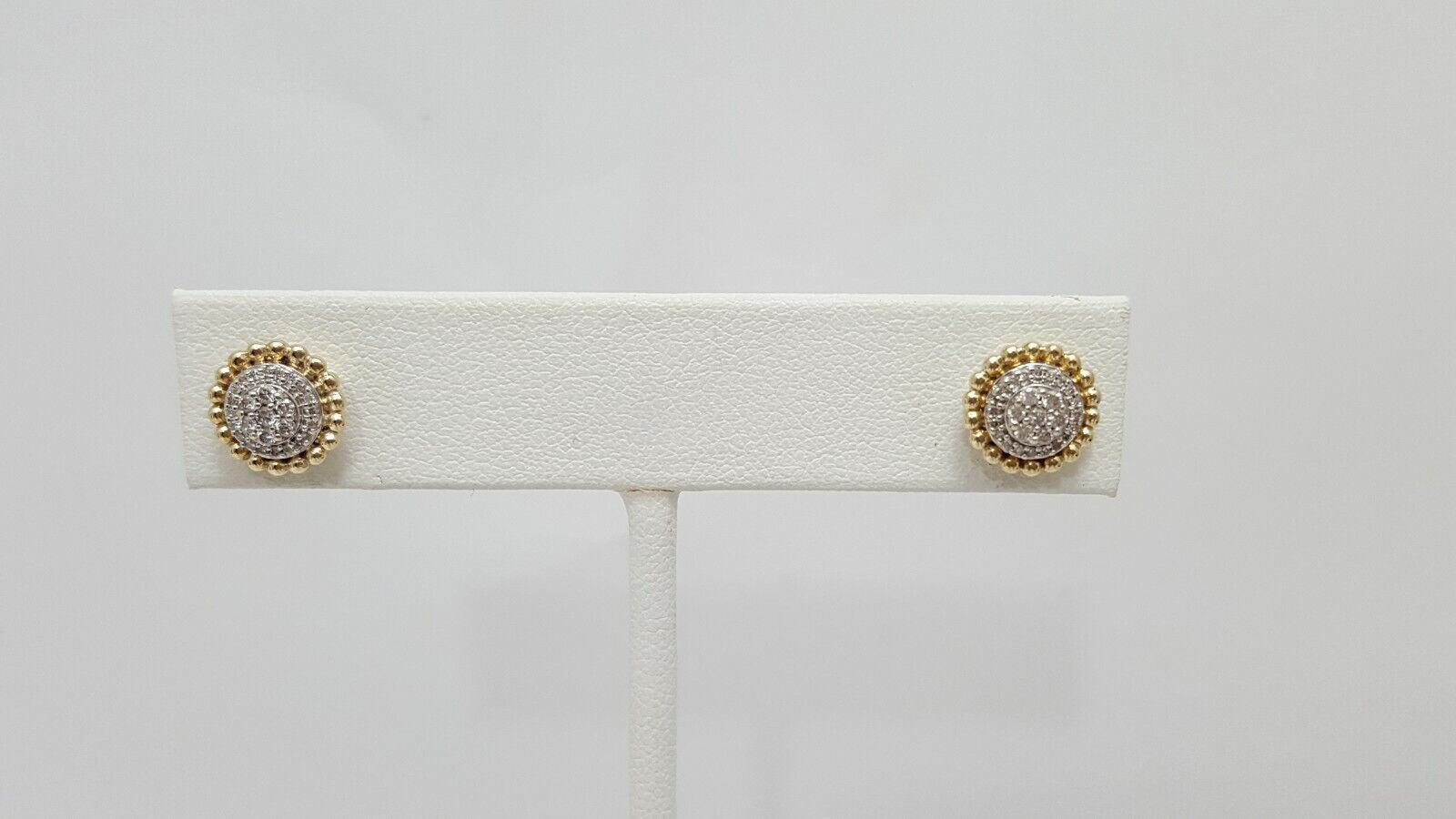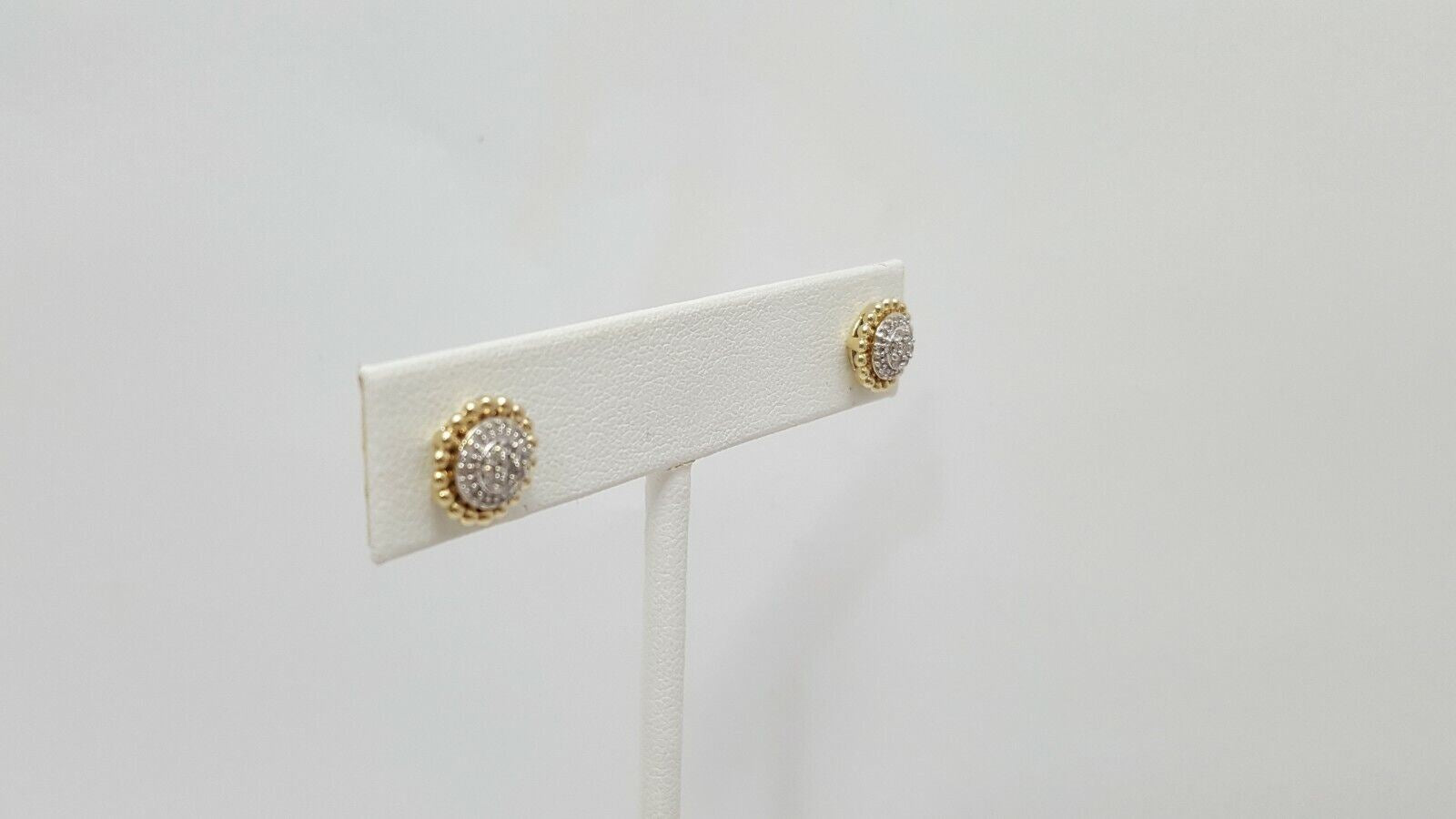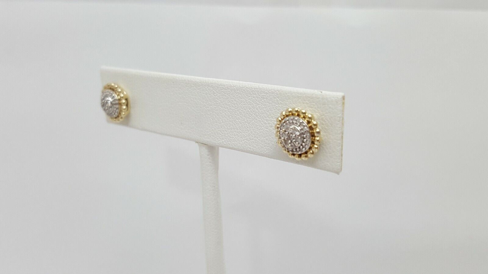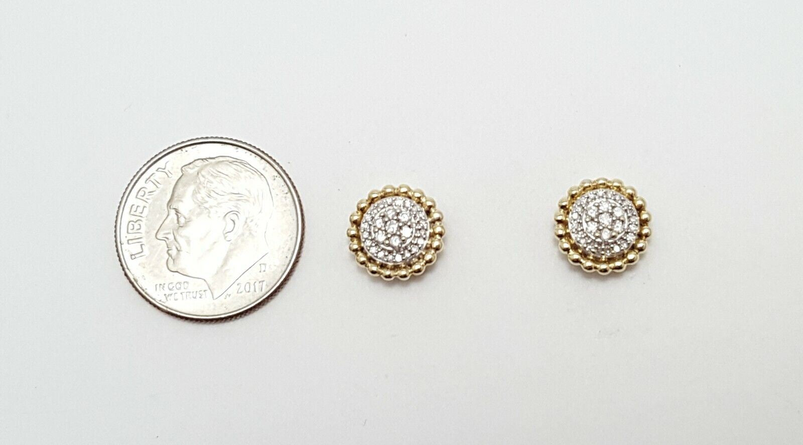 10K Solid Two Tone Gold Diamond Stud Earrings
