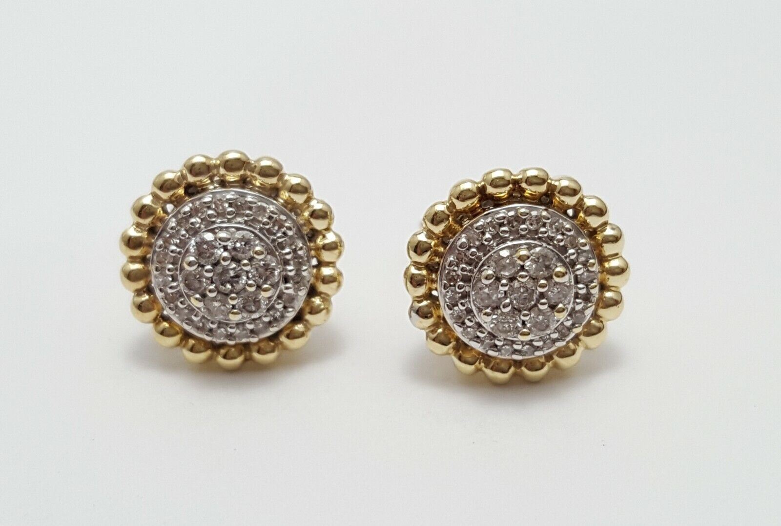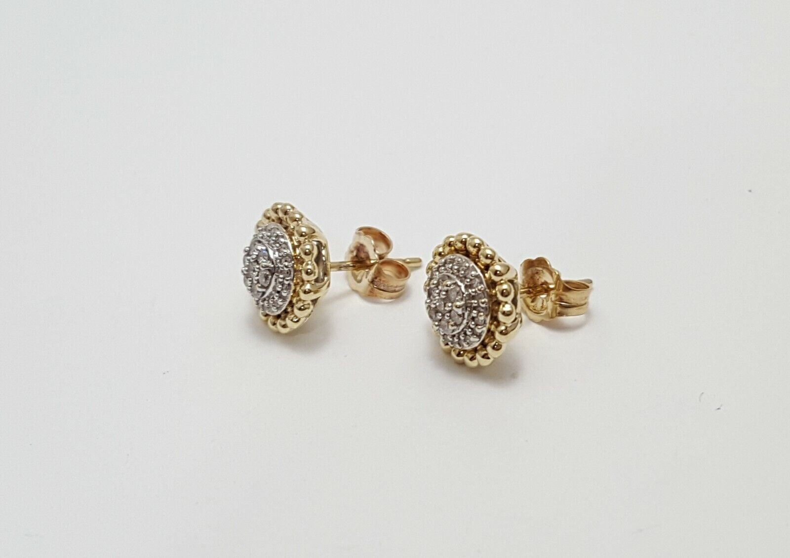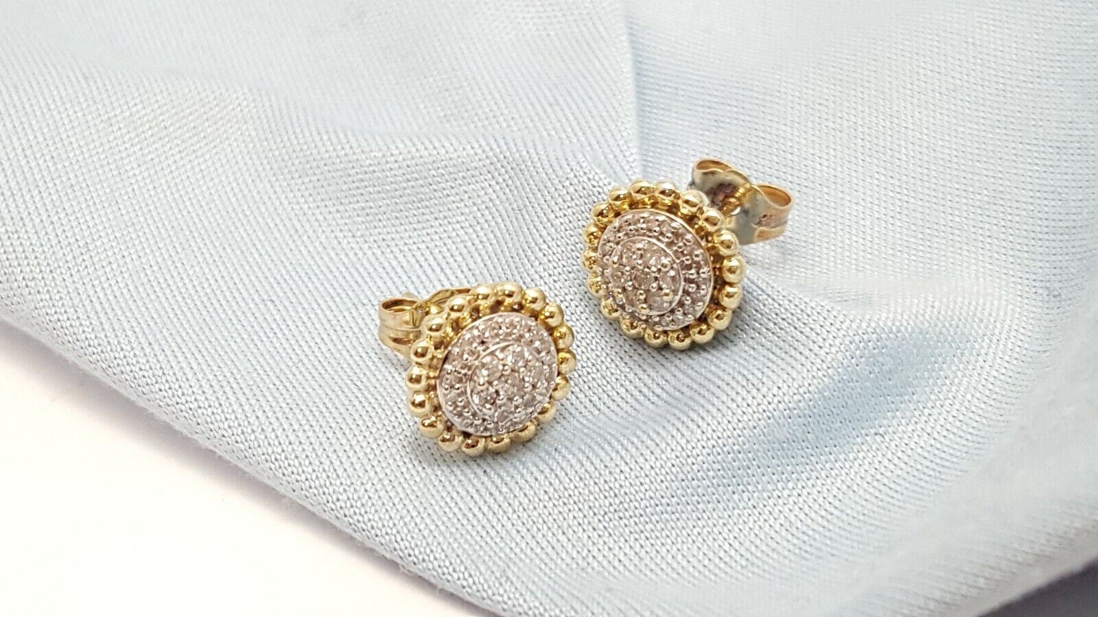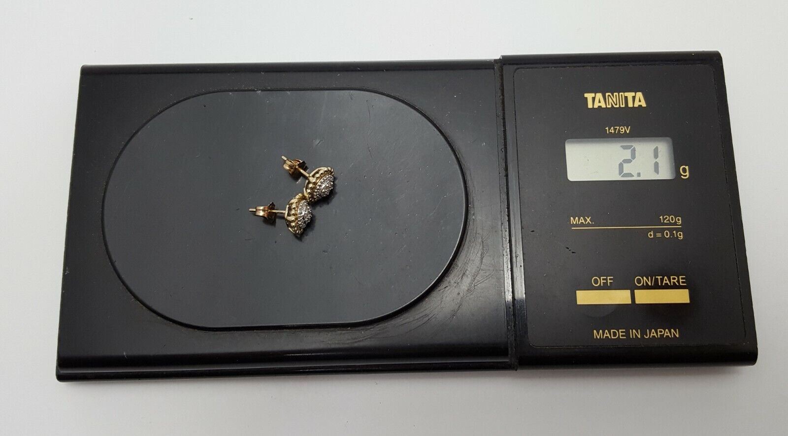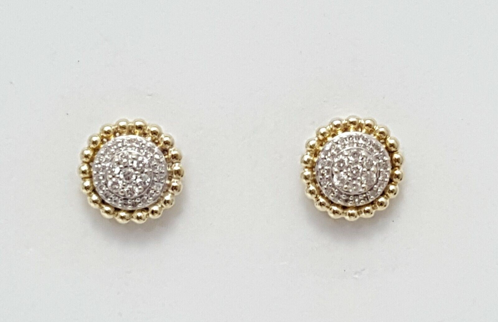 10K Solid Two Tone Gold Diamond Stud Earrings