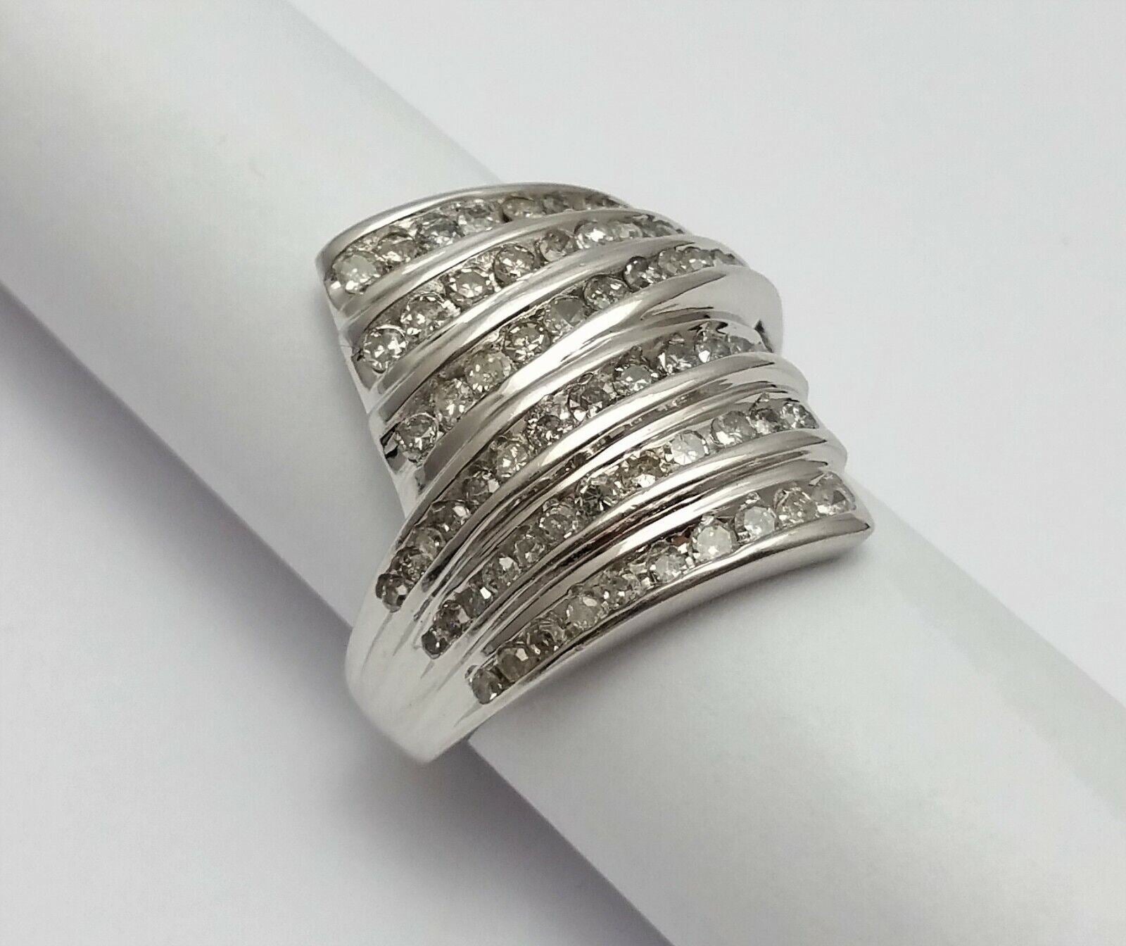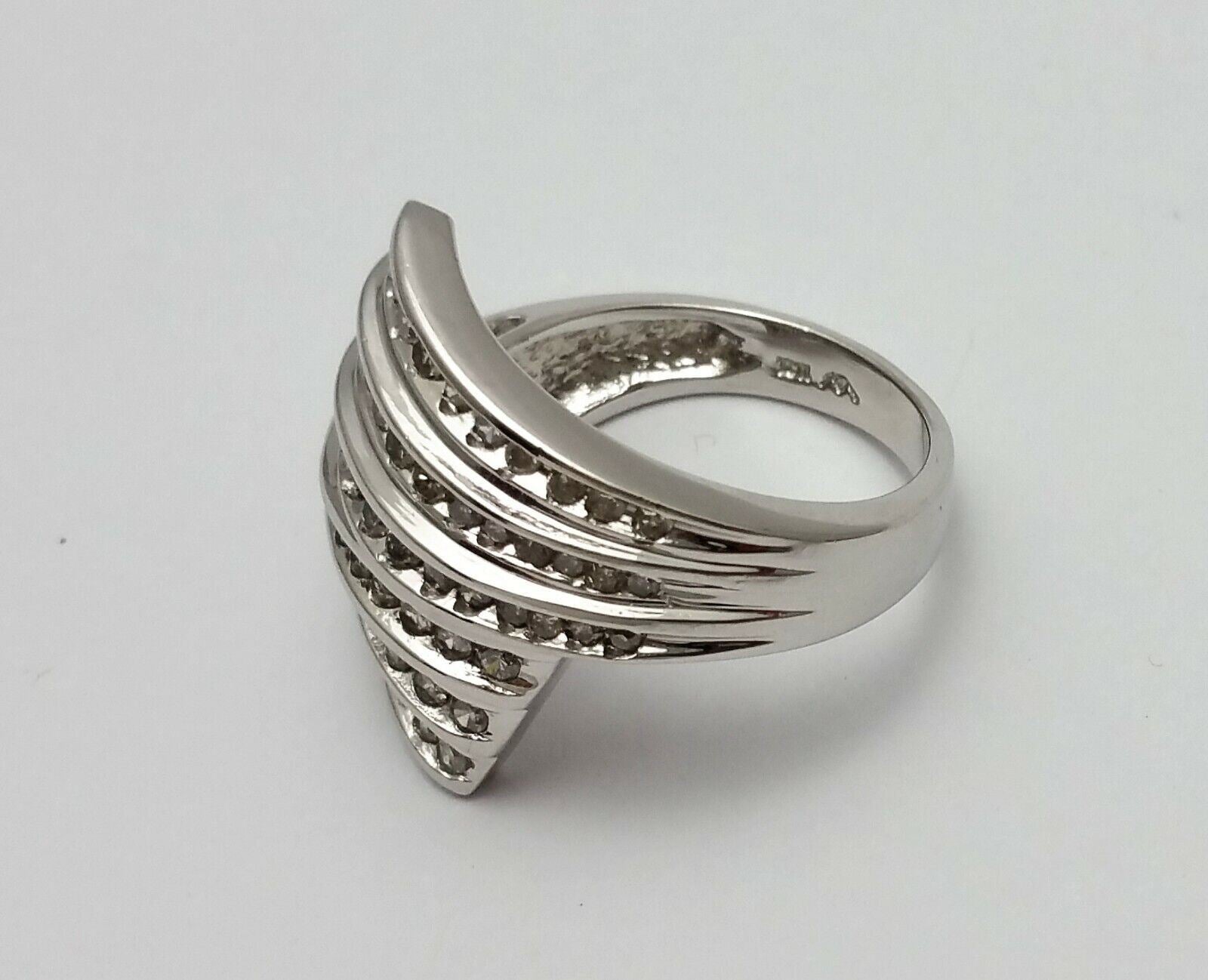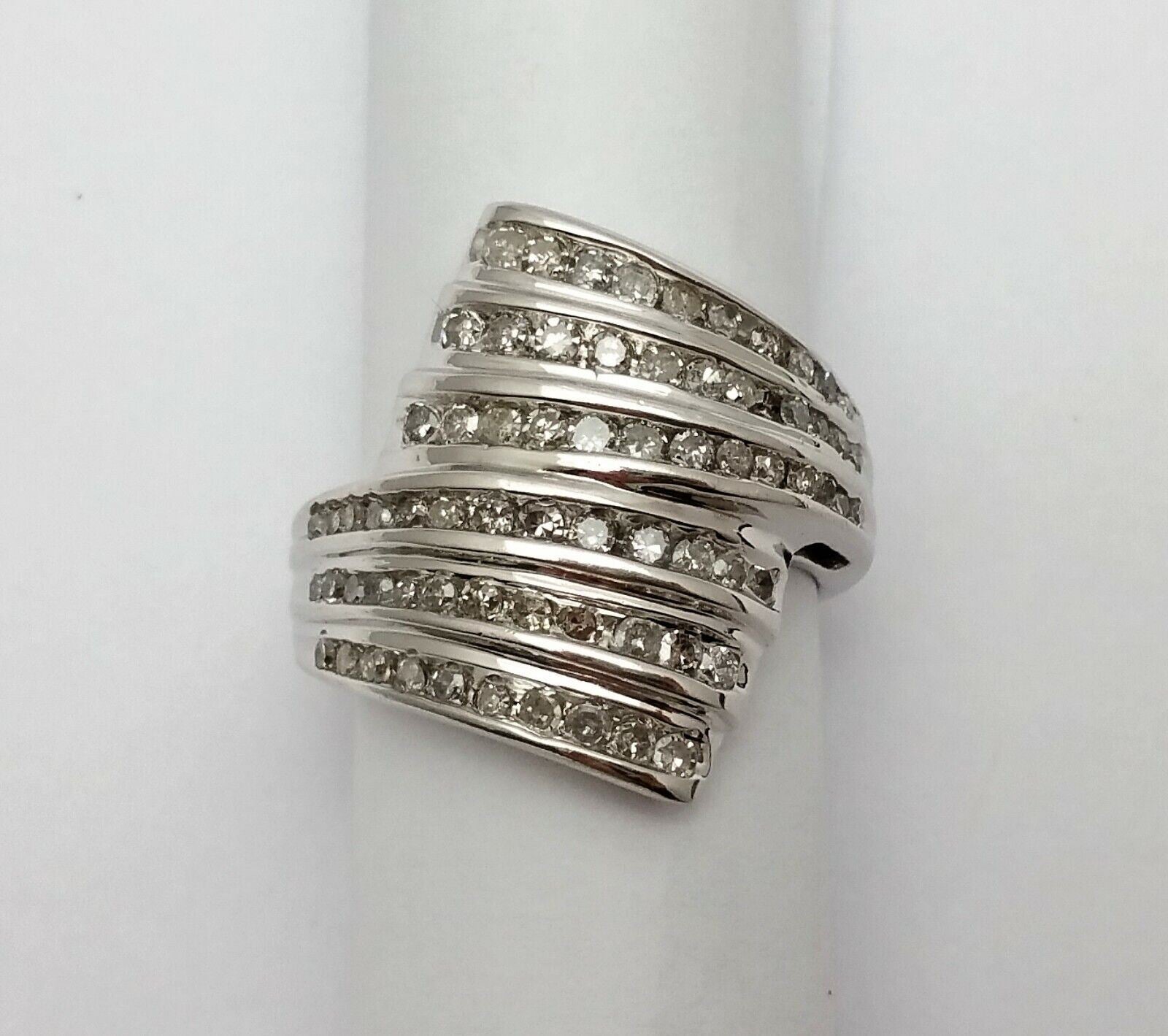 10K White Gold Ladies Designer Ring w/ Cluster of Diamonds