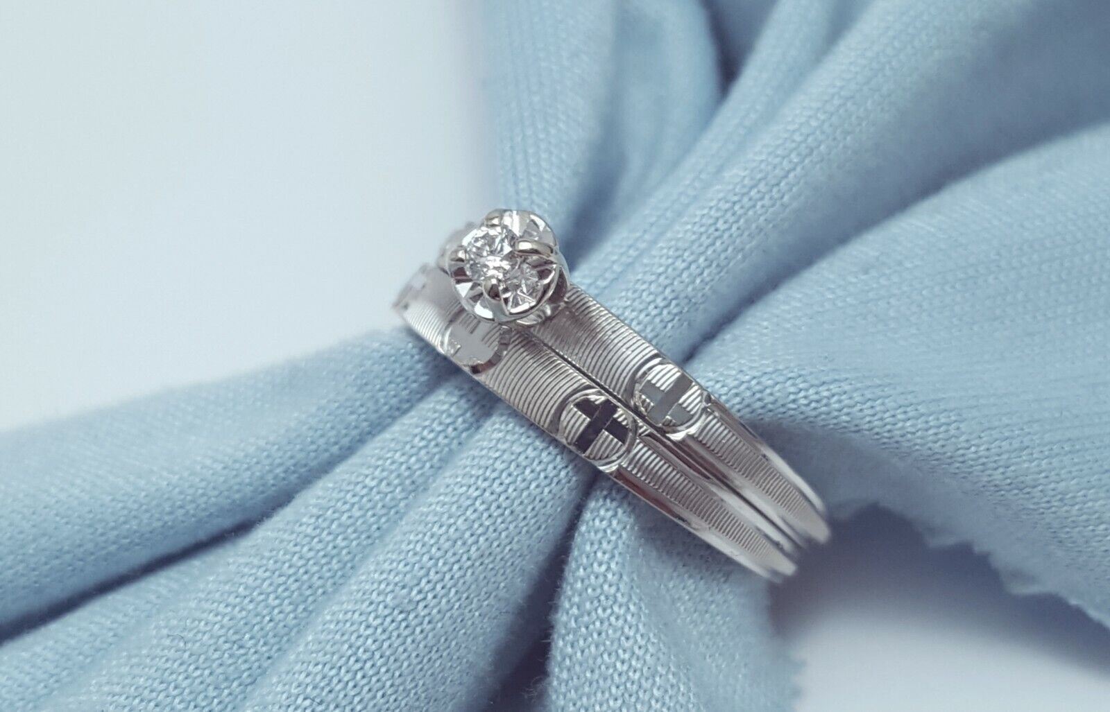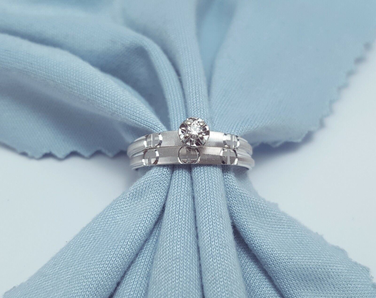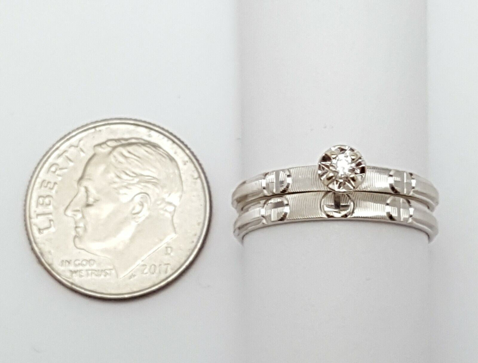 10K White Gold Ladies Wedding Solitaire Diamond Ring Set
