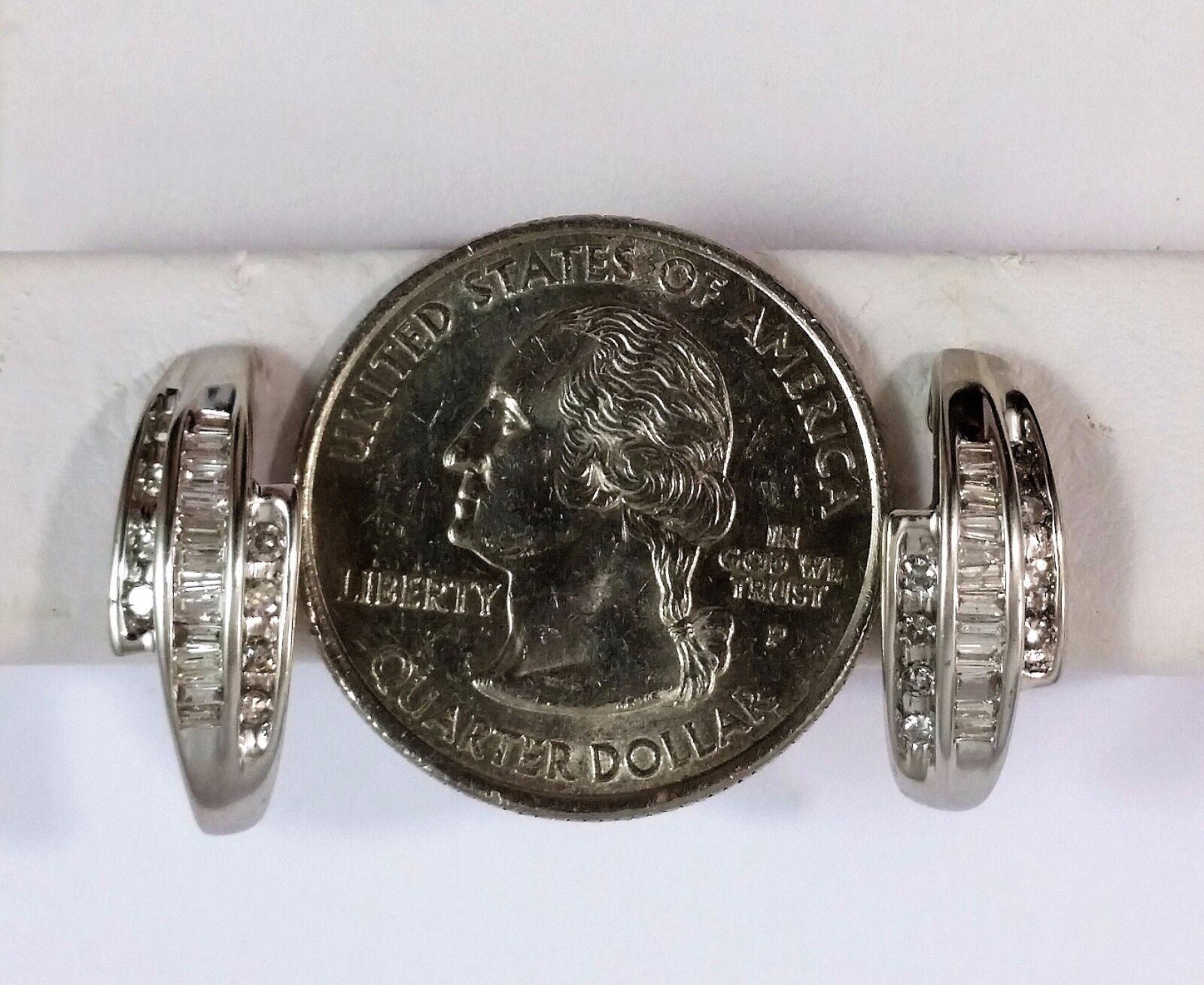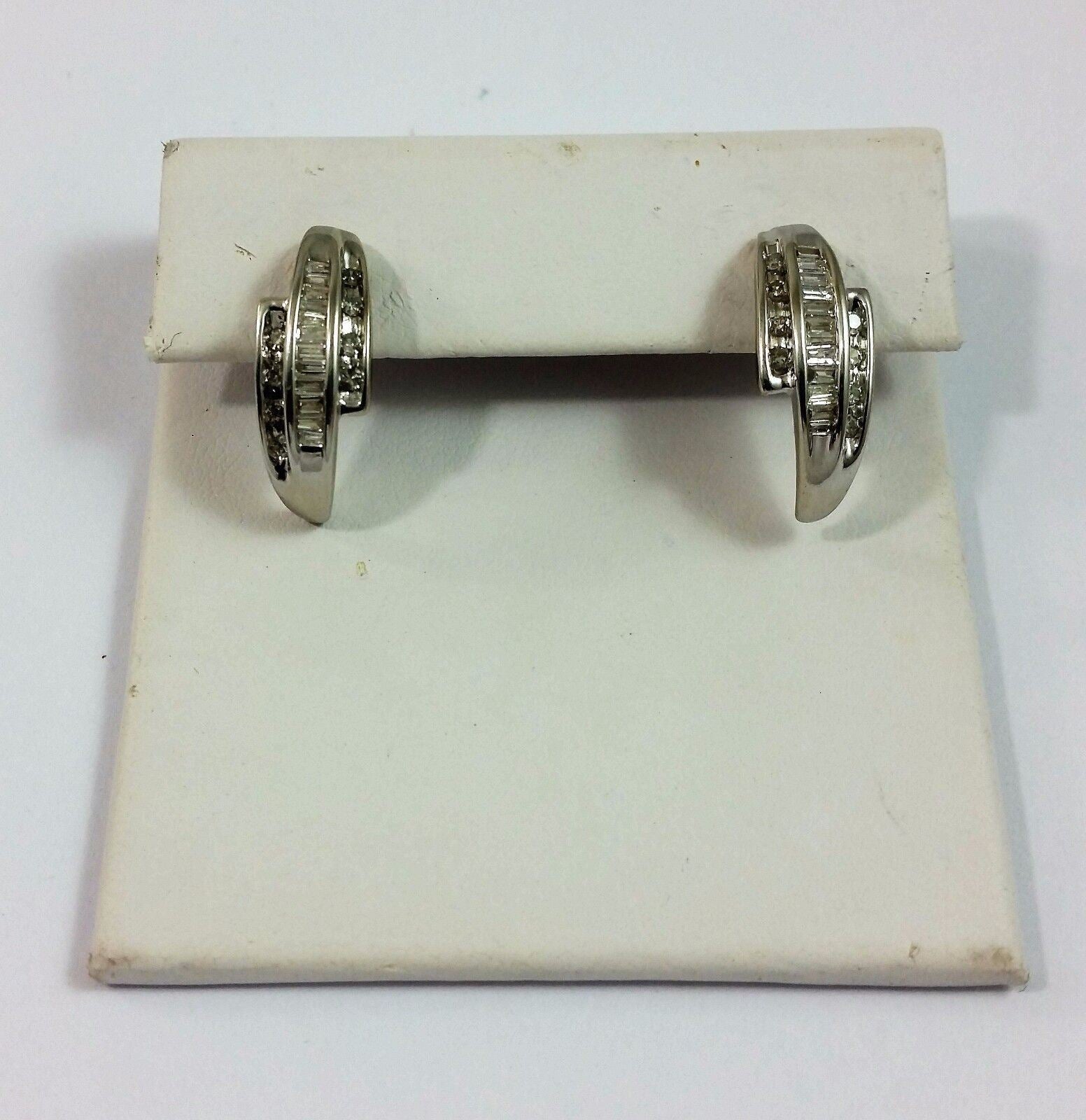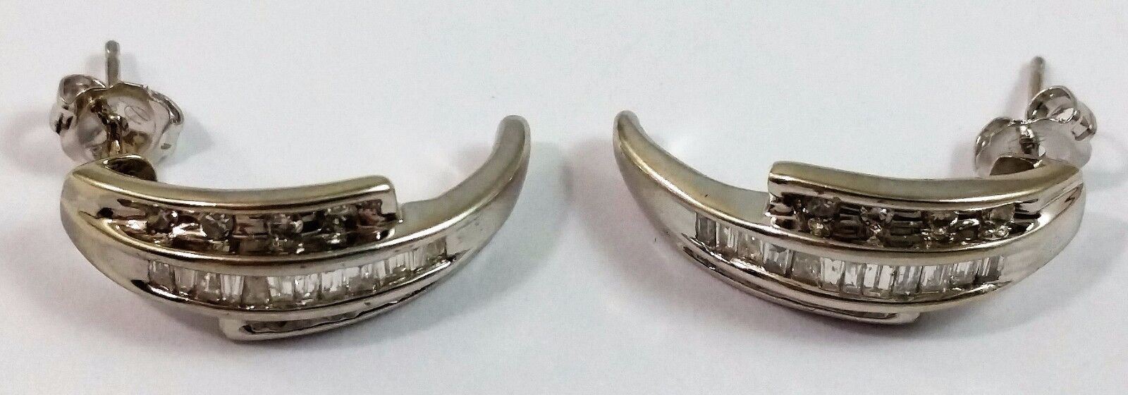 10K White Gold Hanging Stud Dangle Earrings with Diamonds