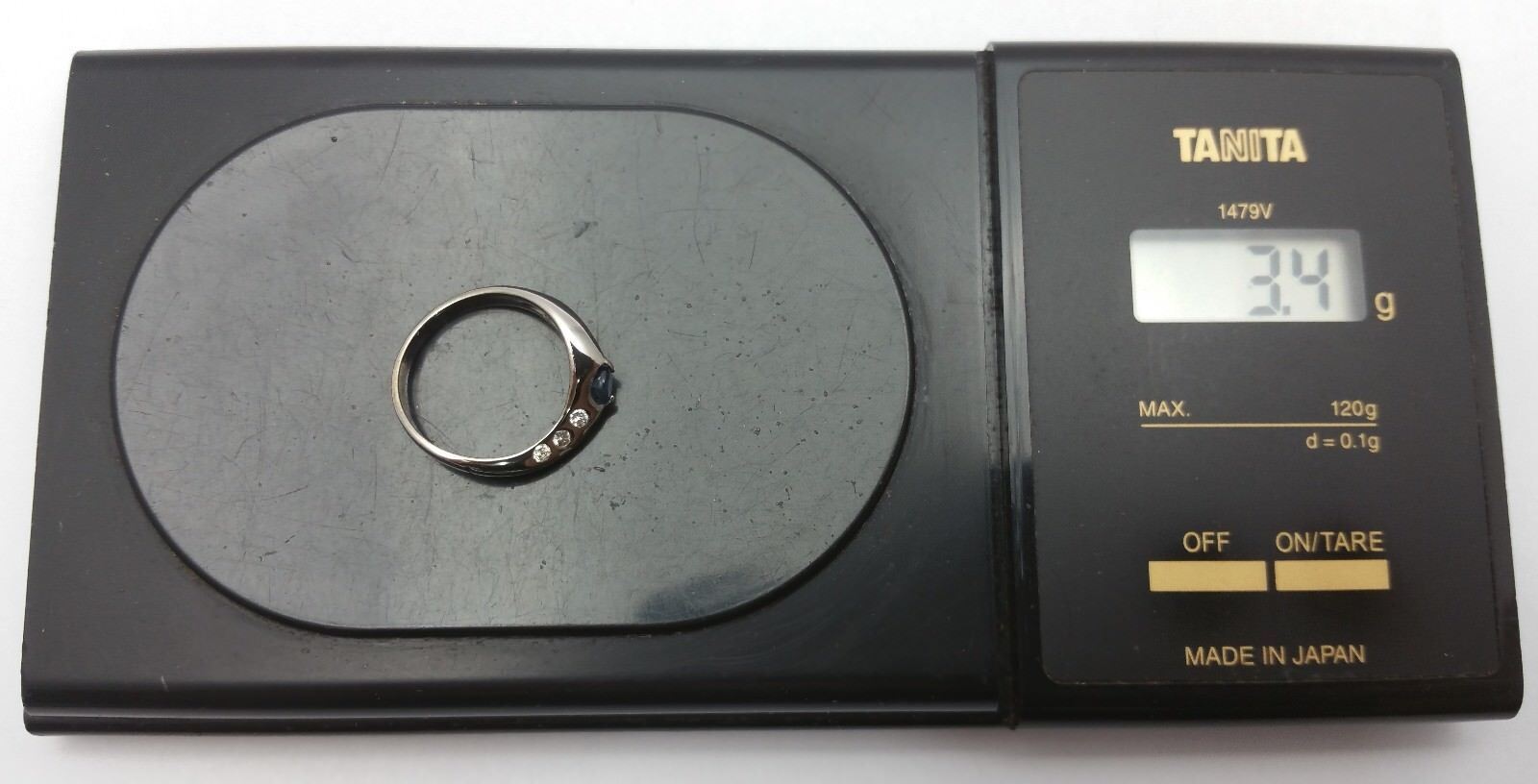 14K White Gold Designer Ladies Ring W/ Sapphire & Diamonds