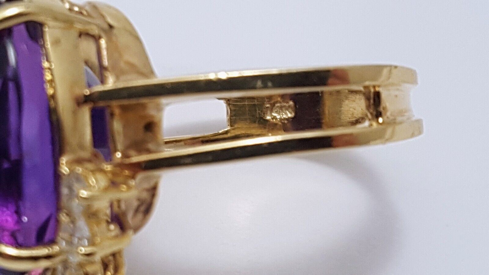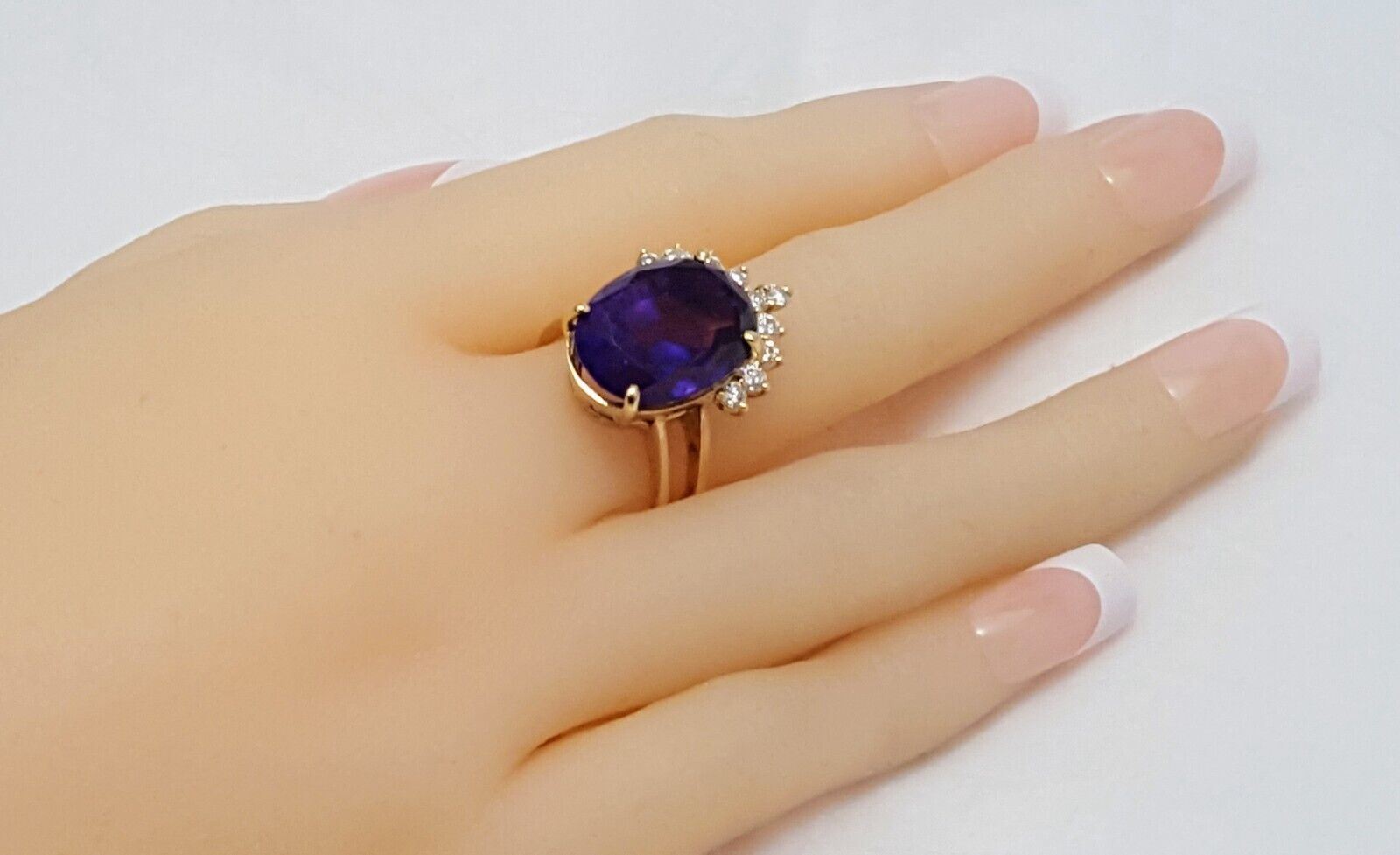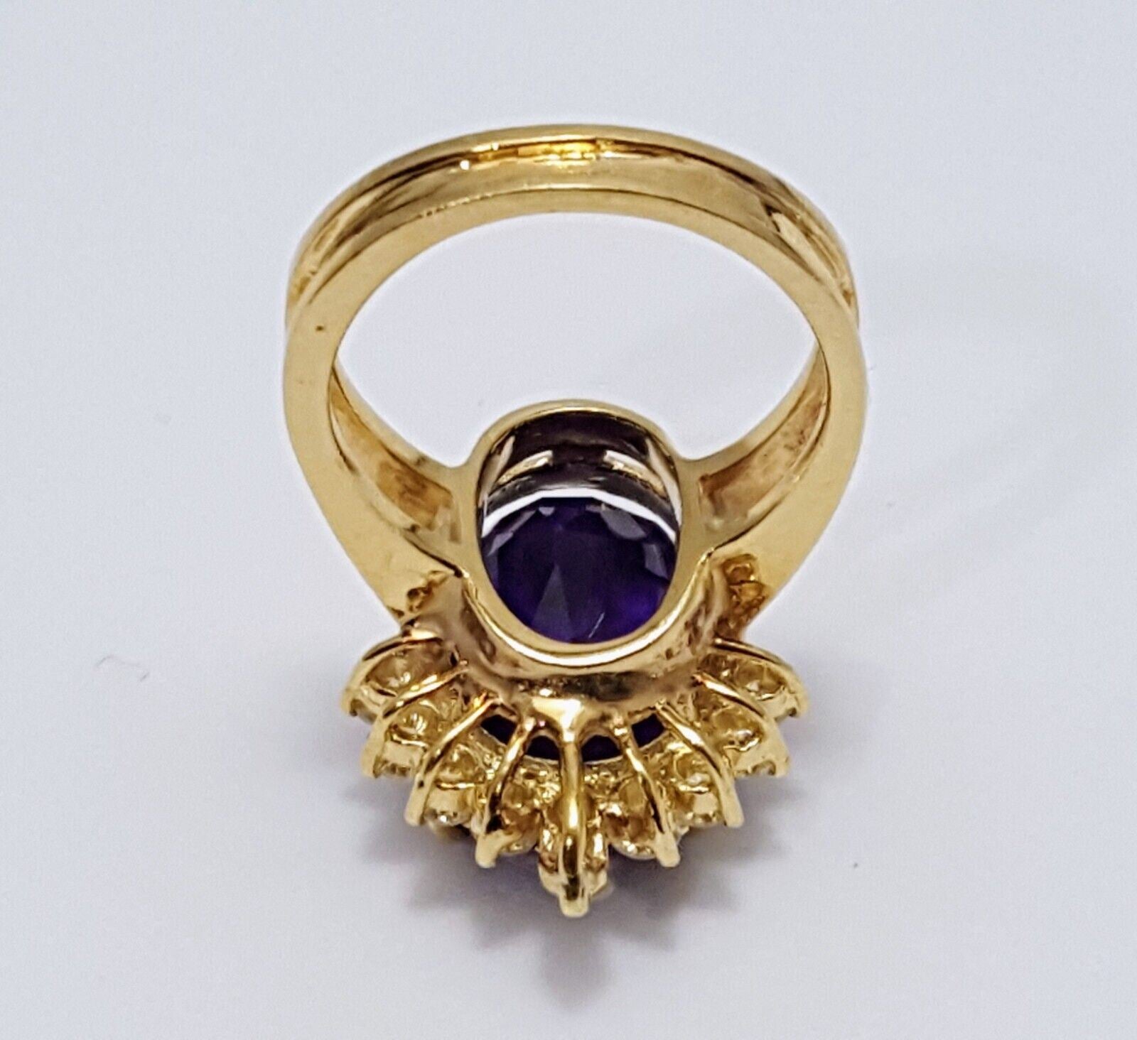 14K Karat Solid Yellow Gold Designer Oval Amethyst & Round Diamond Ring