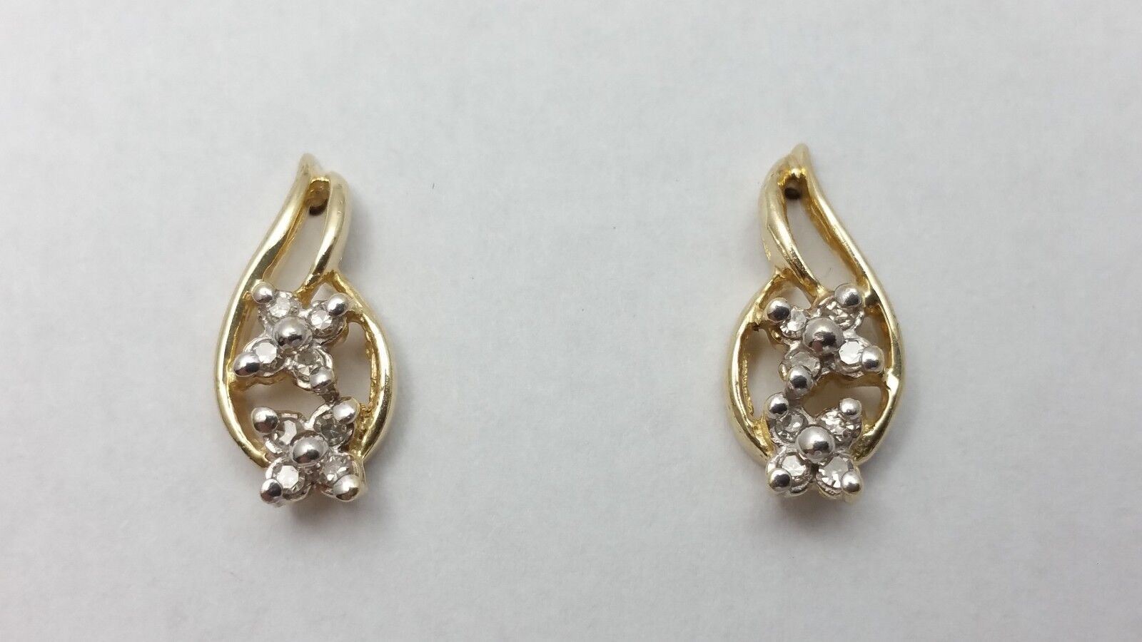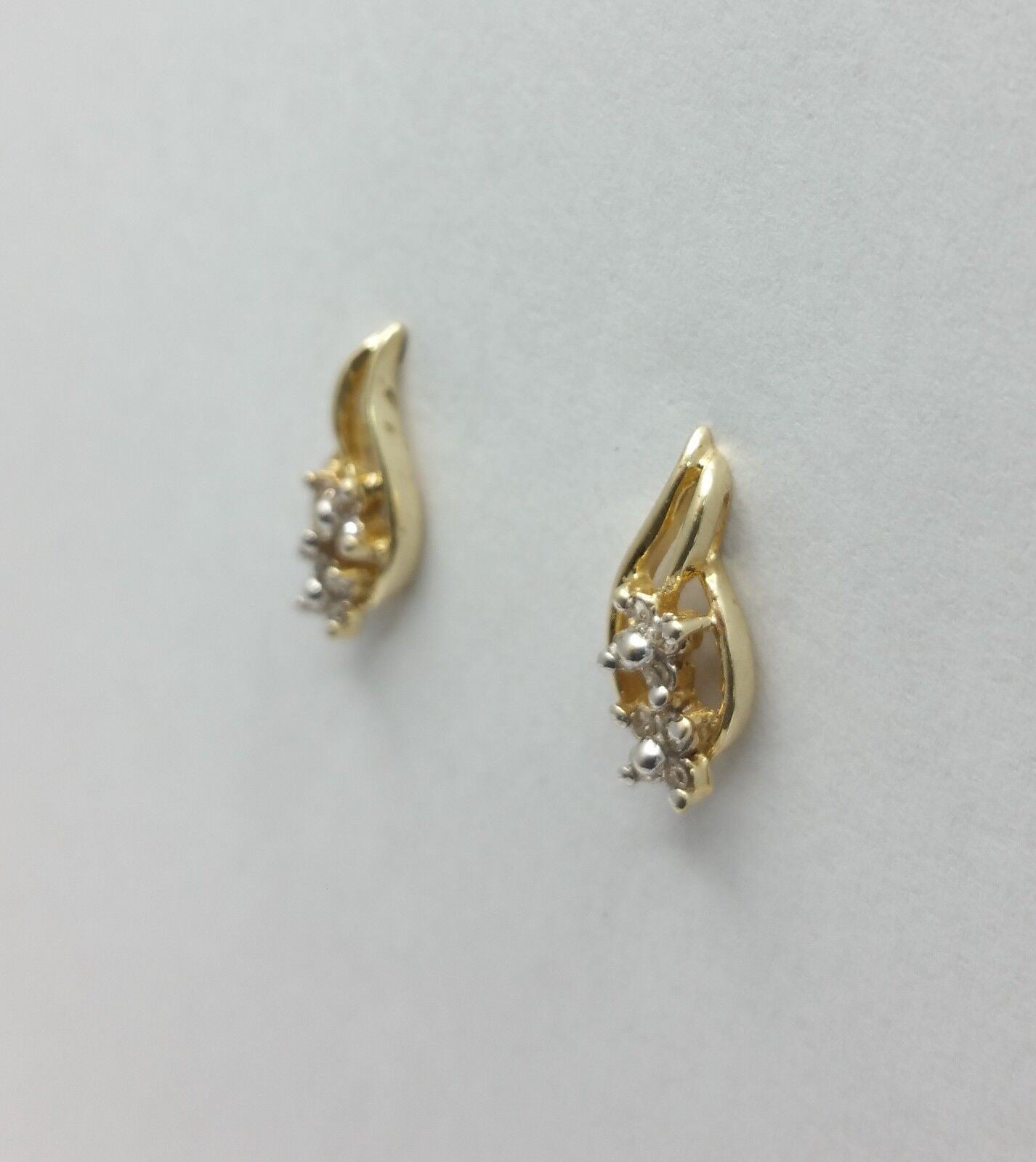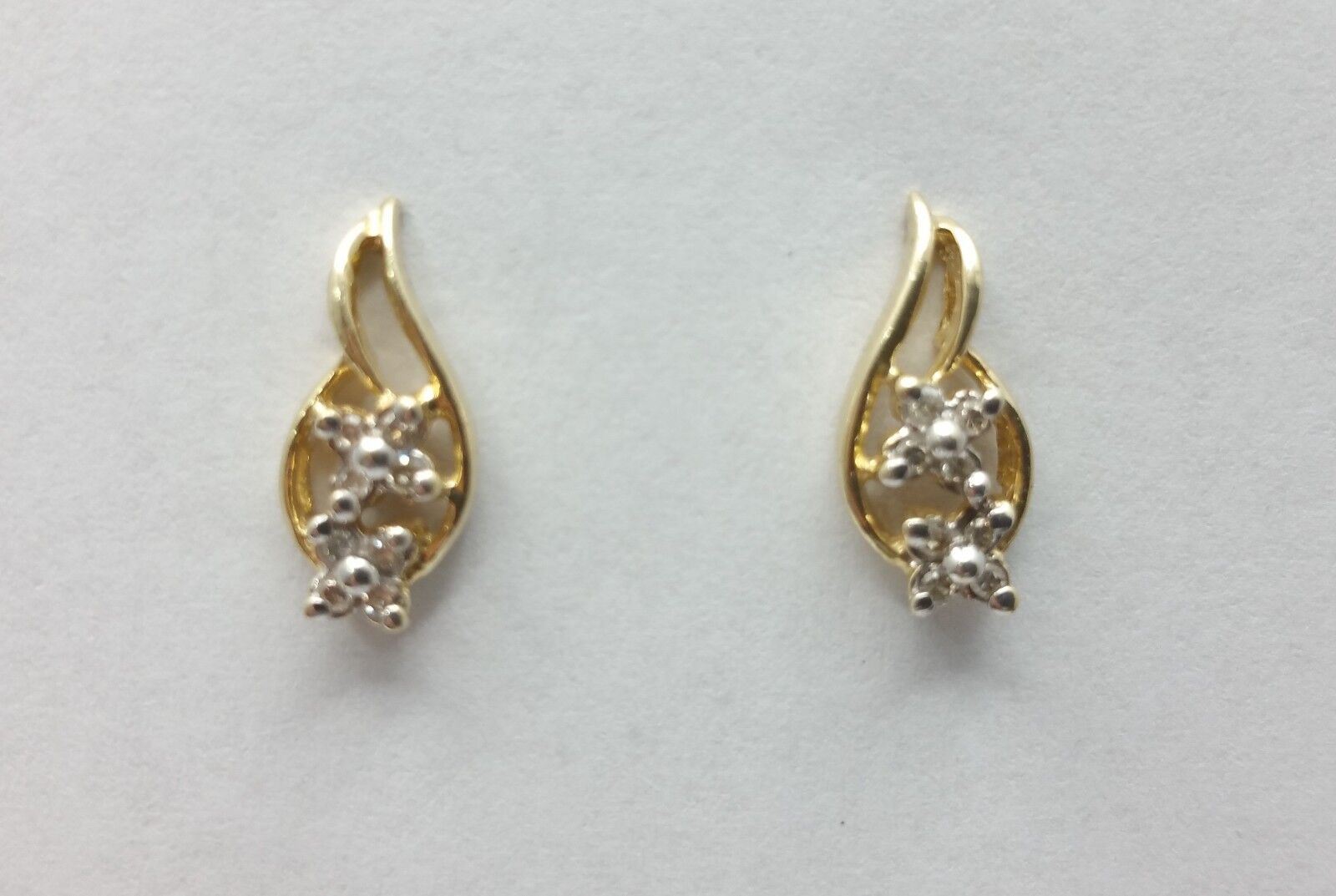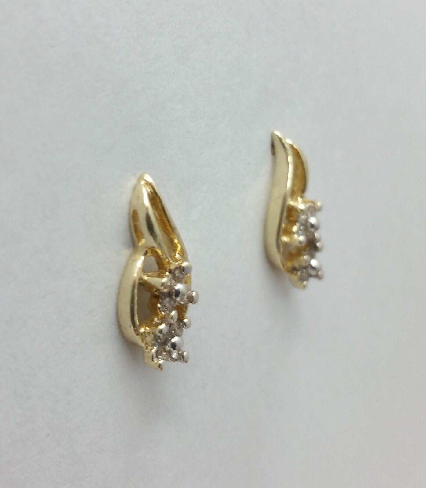 14K Yellow Gold Designer Stud Earrings With Diamonds