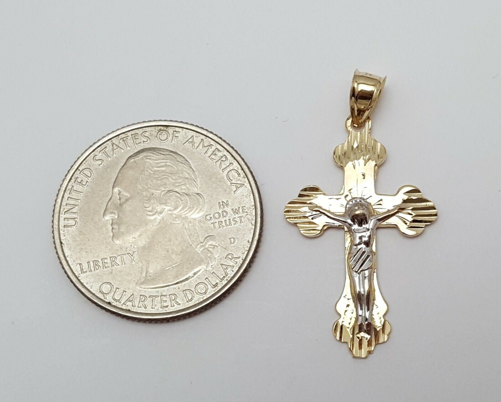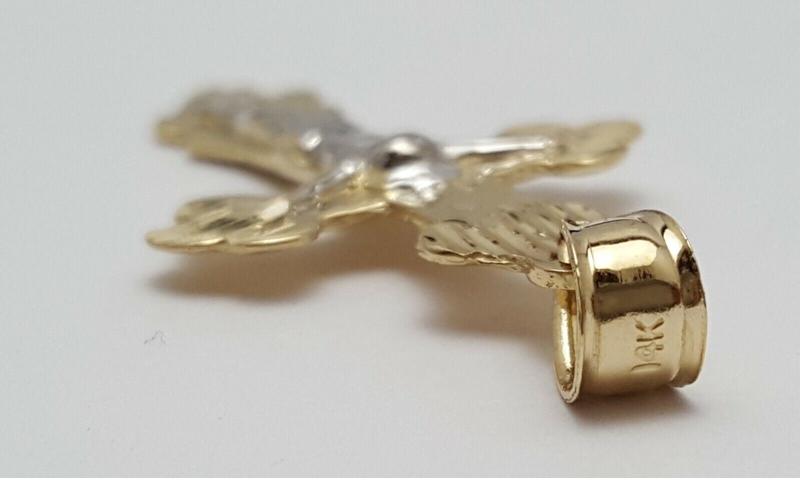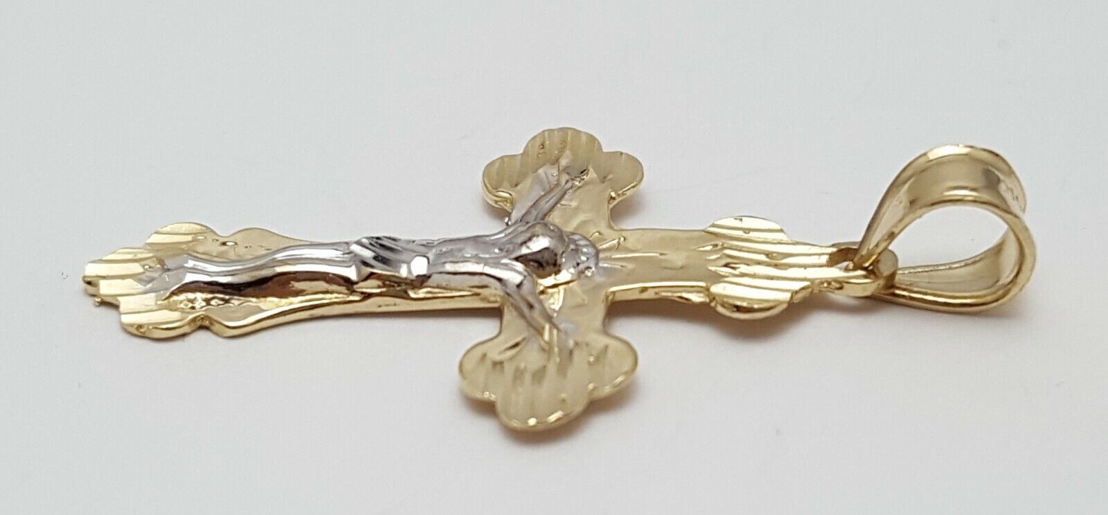 14K Solid Two Tone Gold Religious Jesus on Cross Charm Pendant