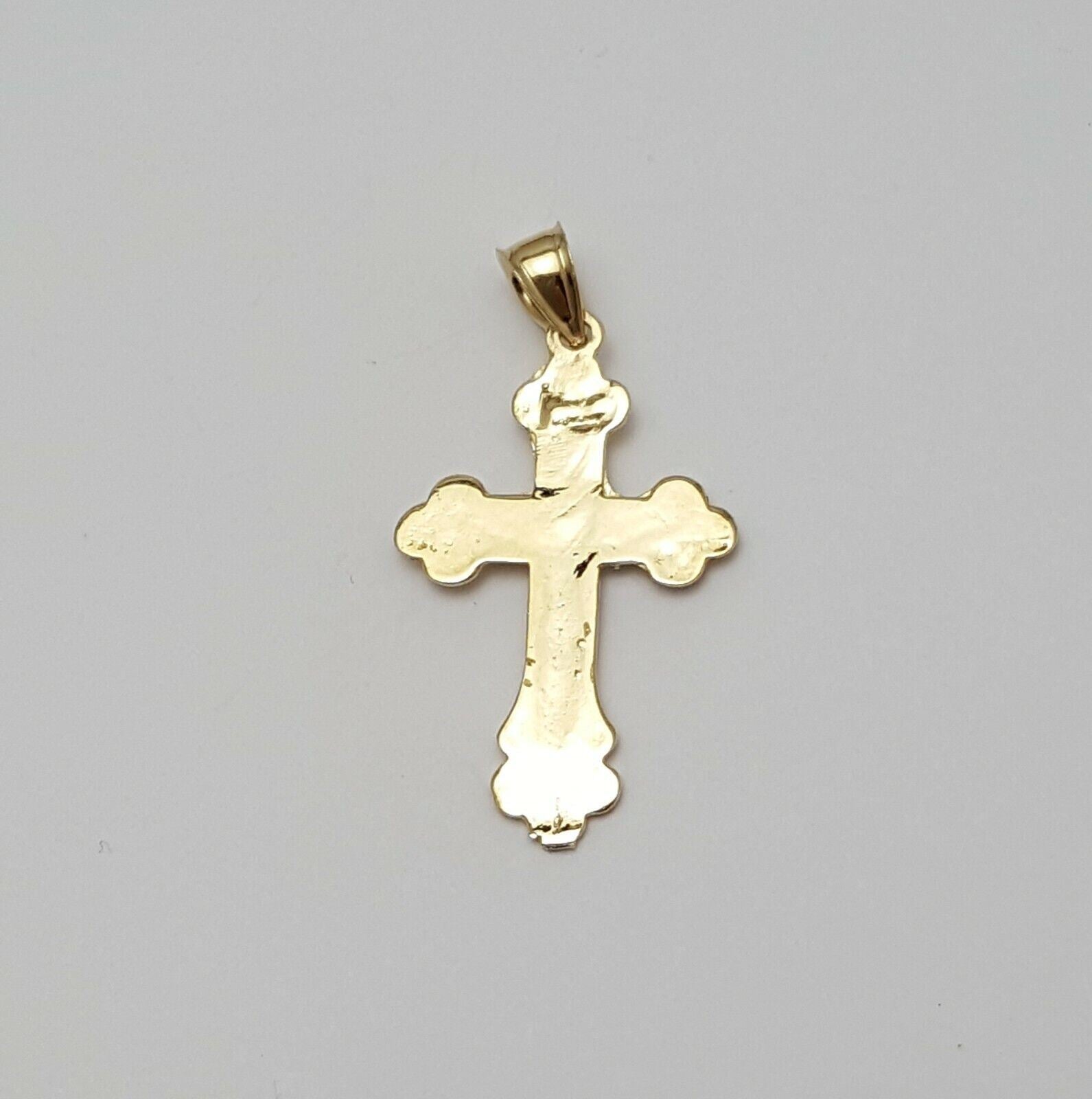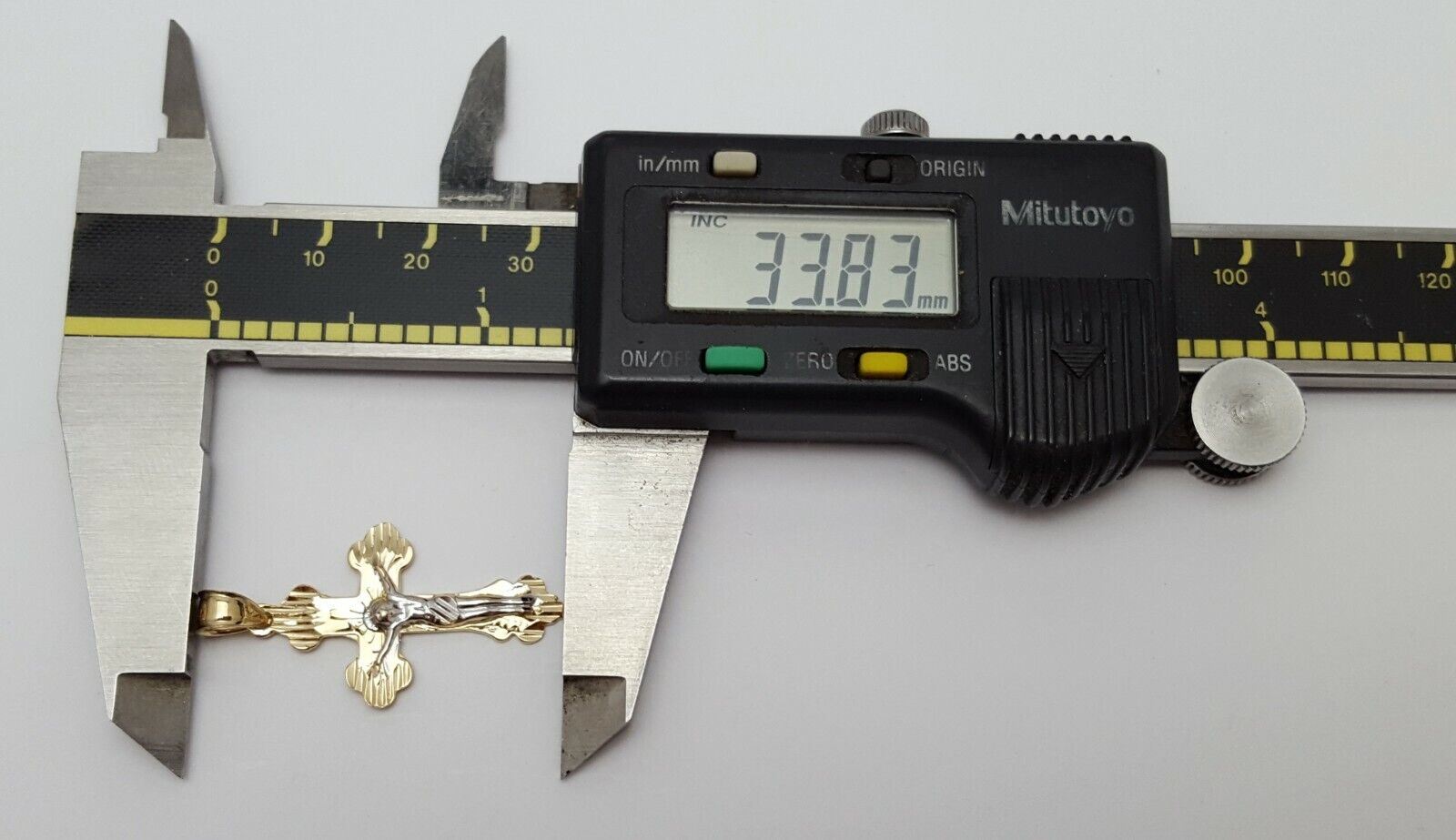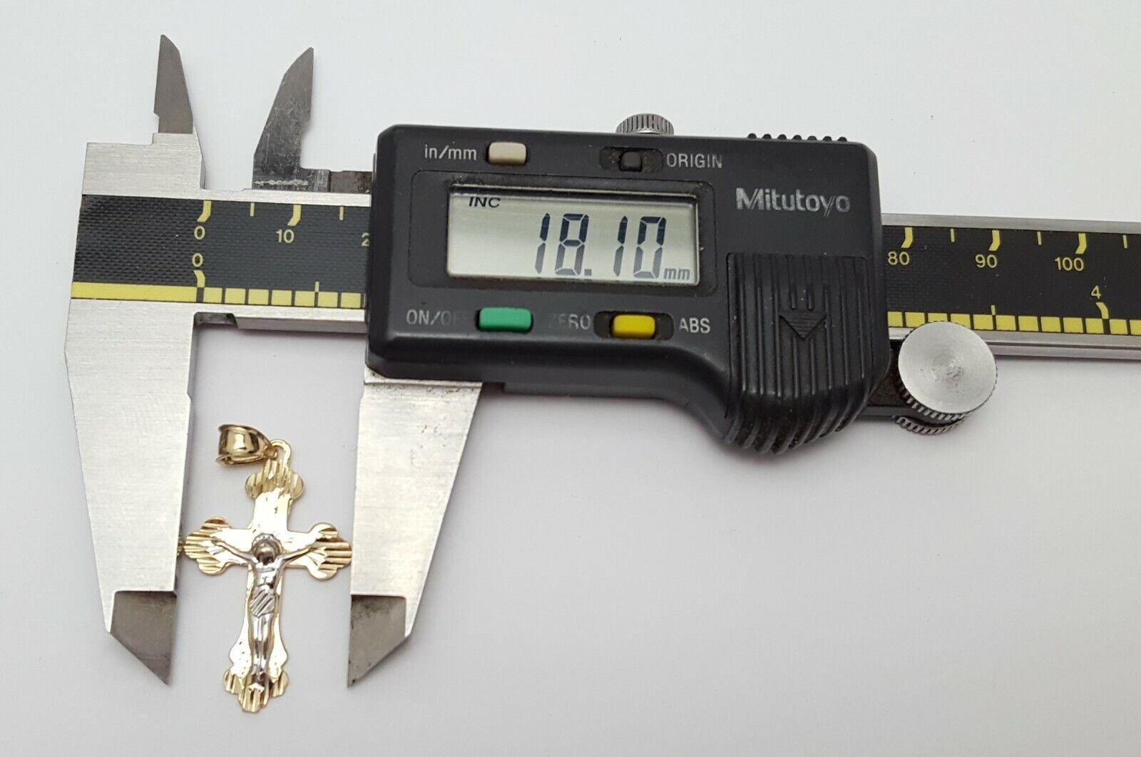 14K Solid Two Tone Gold Religious Jesus on Cross Charm Pendant