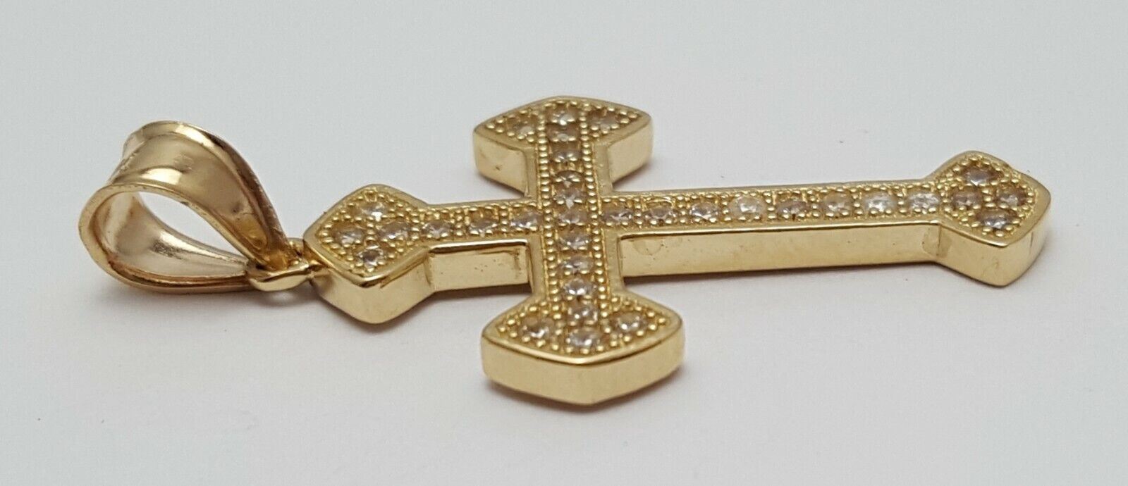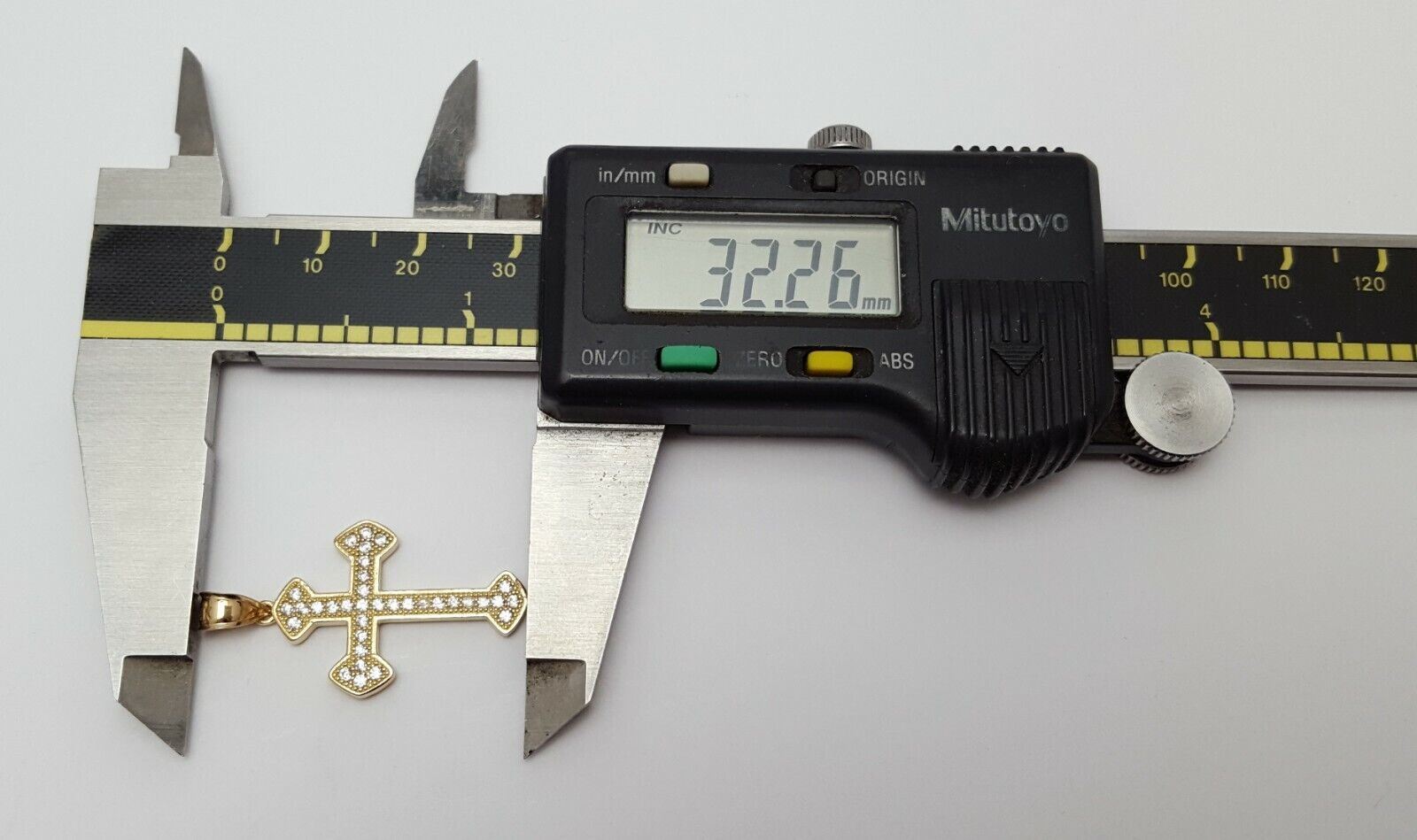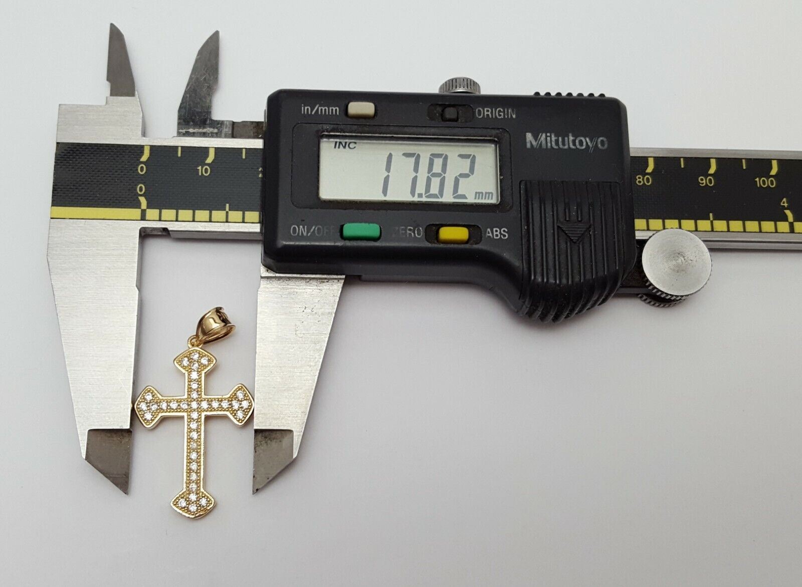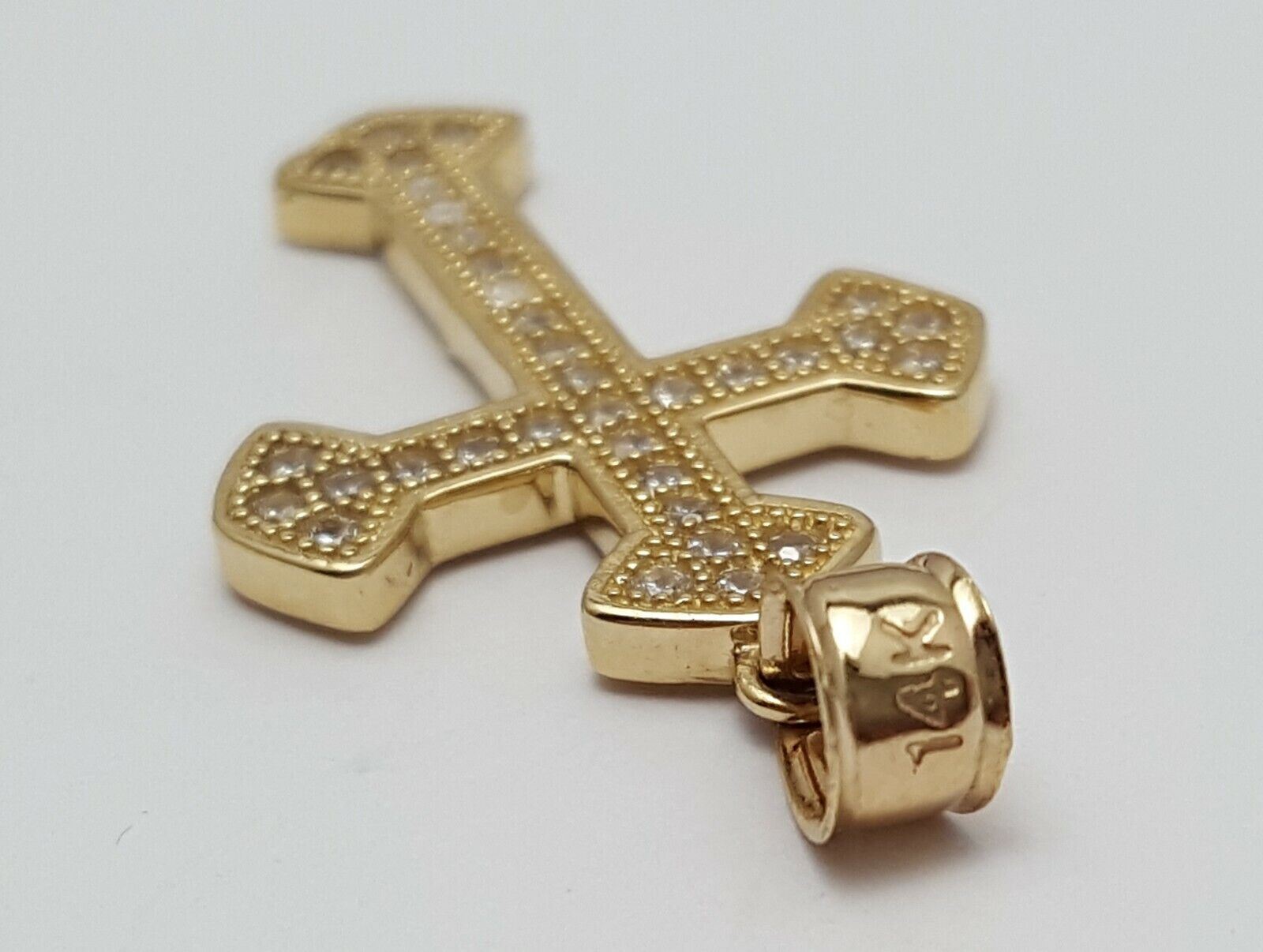 14K Solid Yellow Gold Cubic Zirconia Religious Cross Charm Pendant