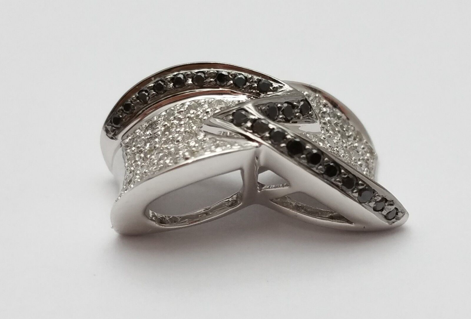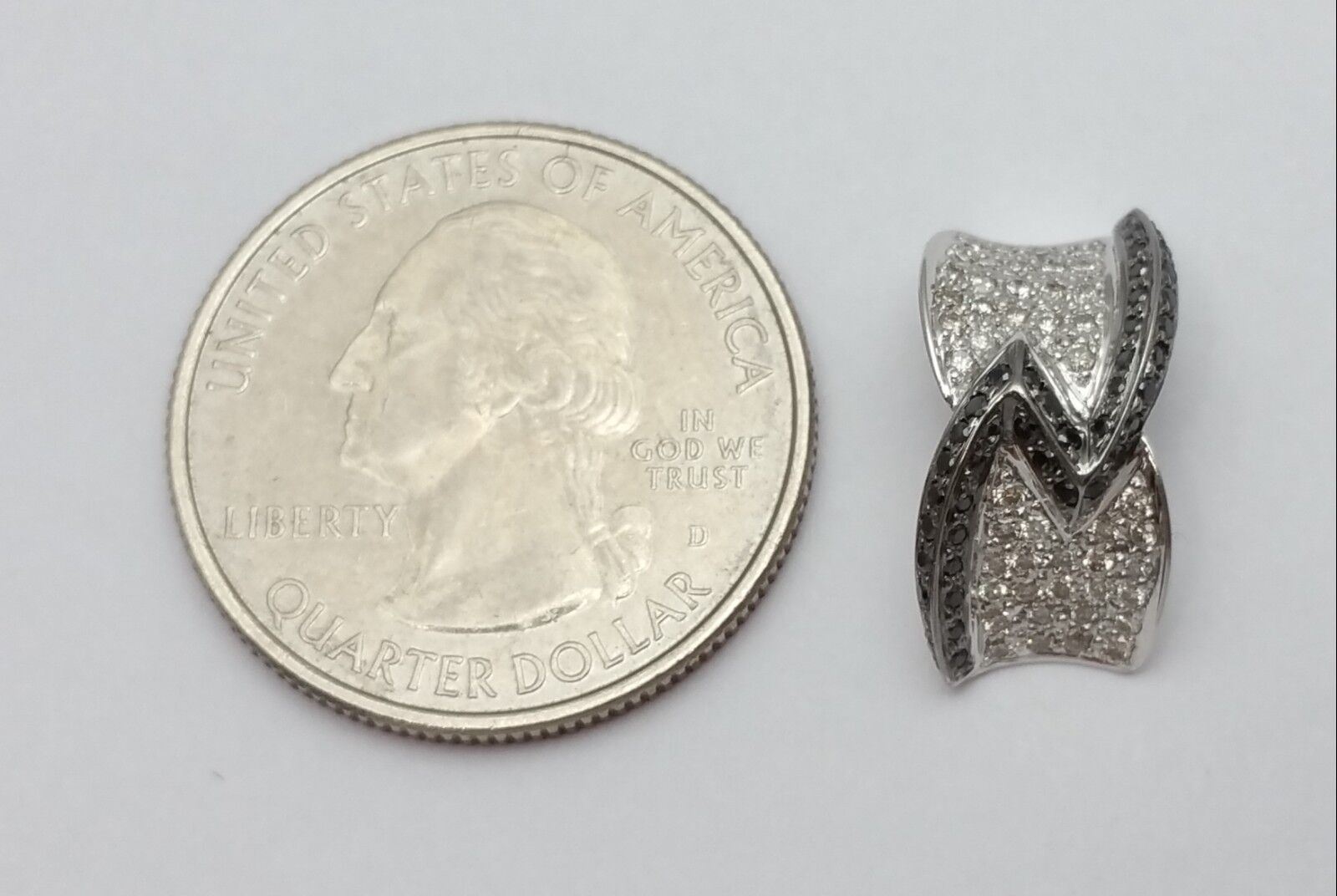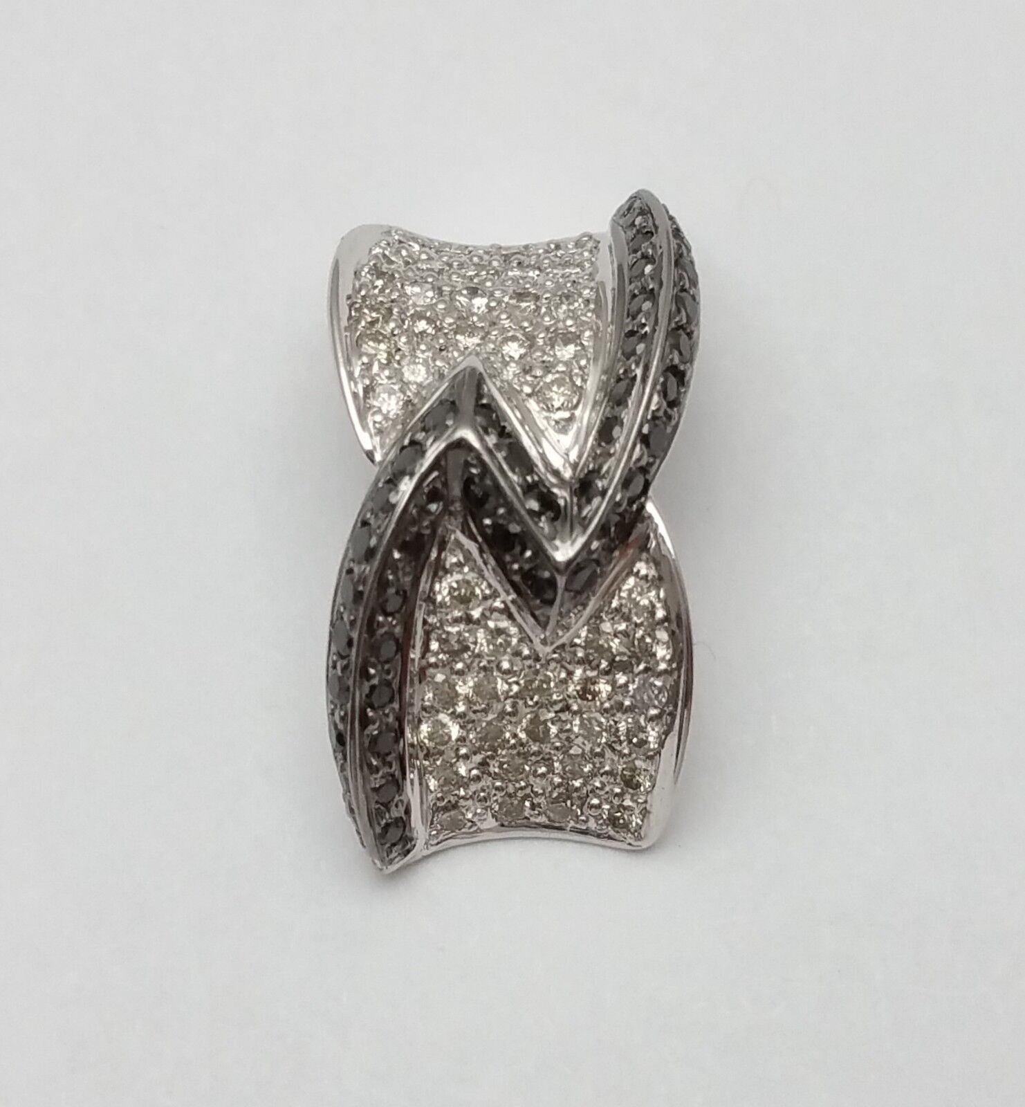 18K Solid White Gold Black & White Diamond Charm Pendant
