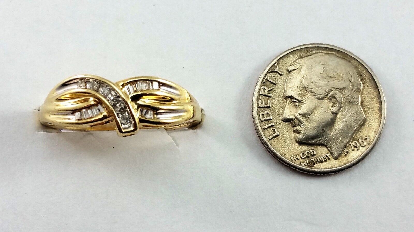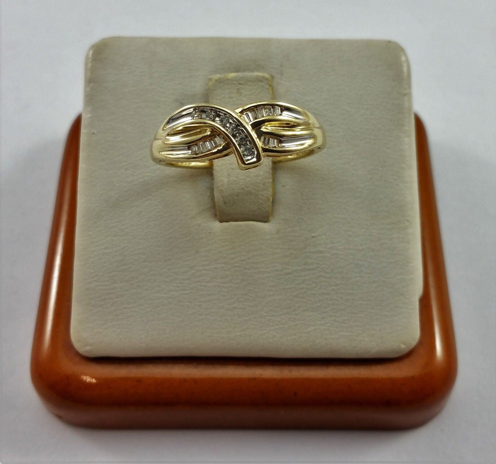 10K Solid Yellow Gold Baguette & Round Diamond Ring