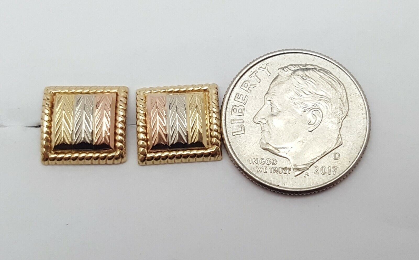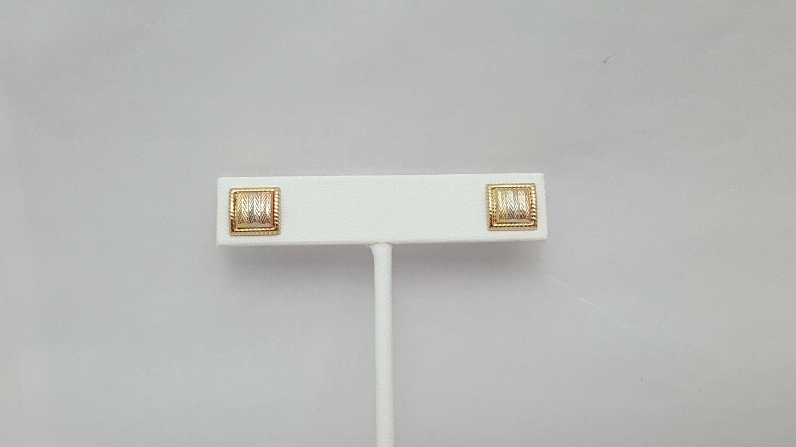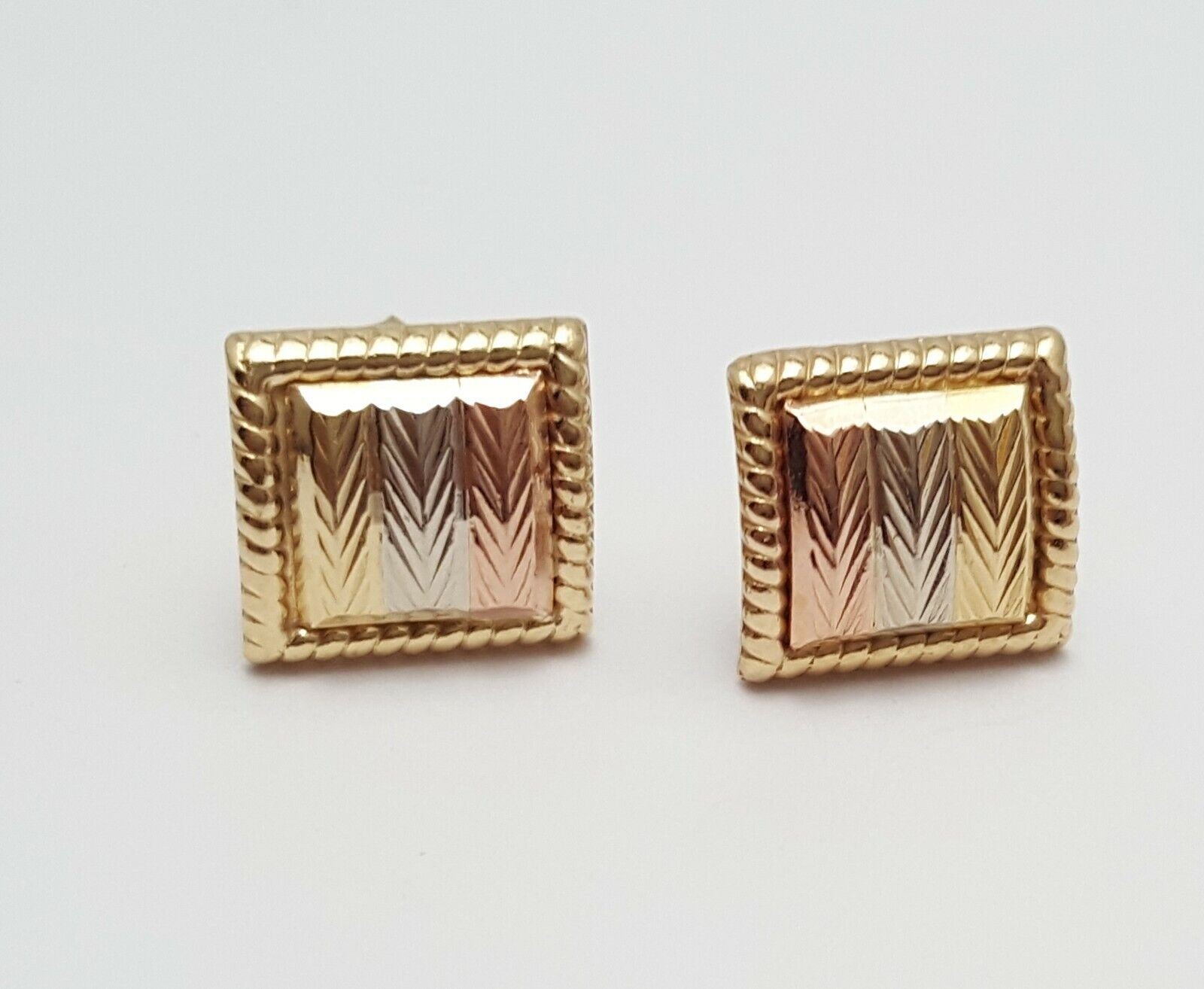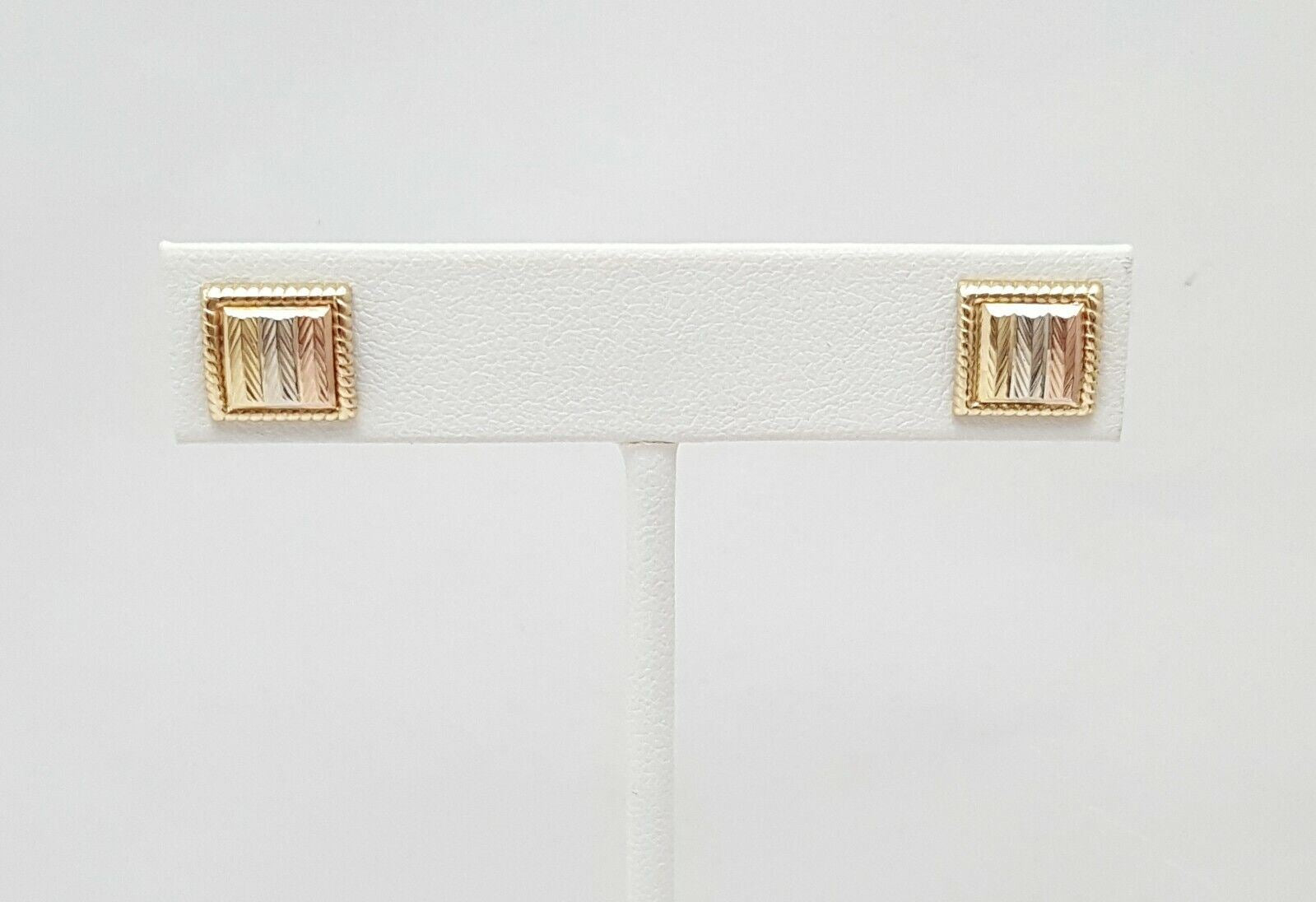 10K Tri Tone Tri Color Gold Designer Square Stud Earrings