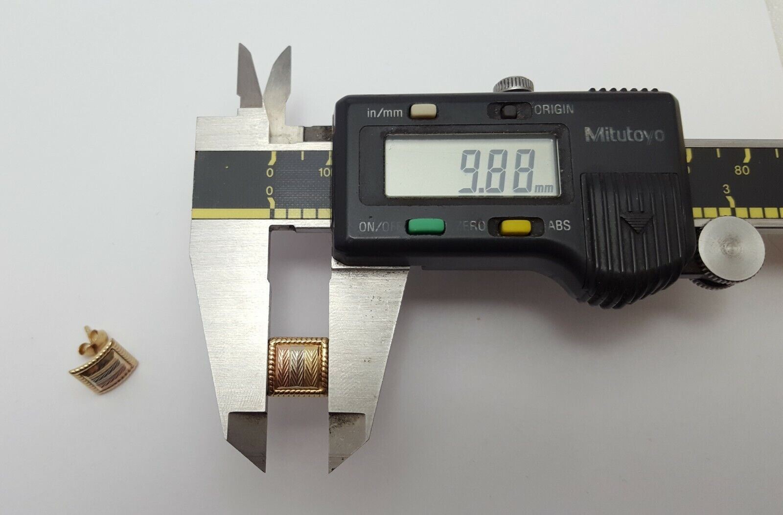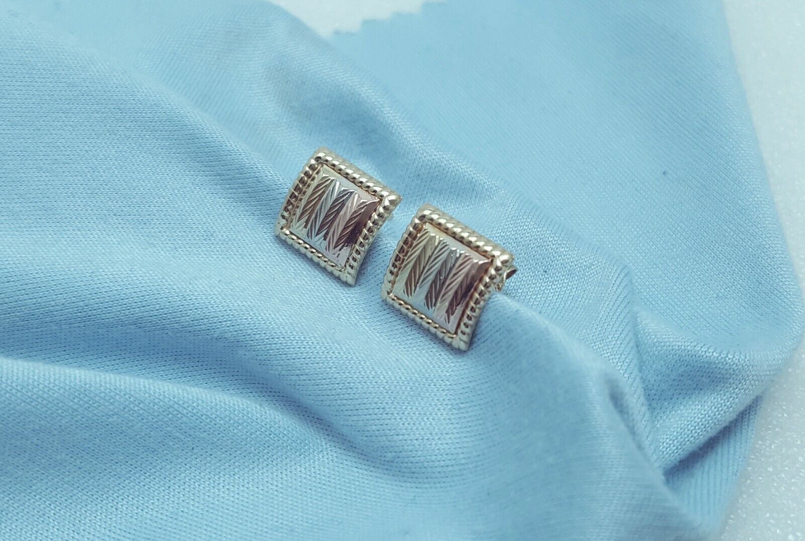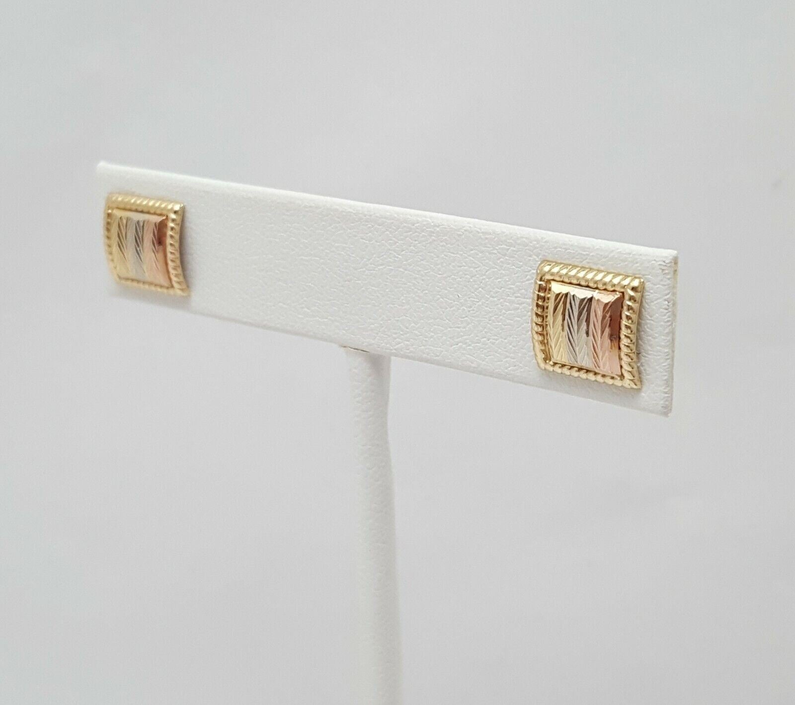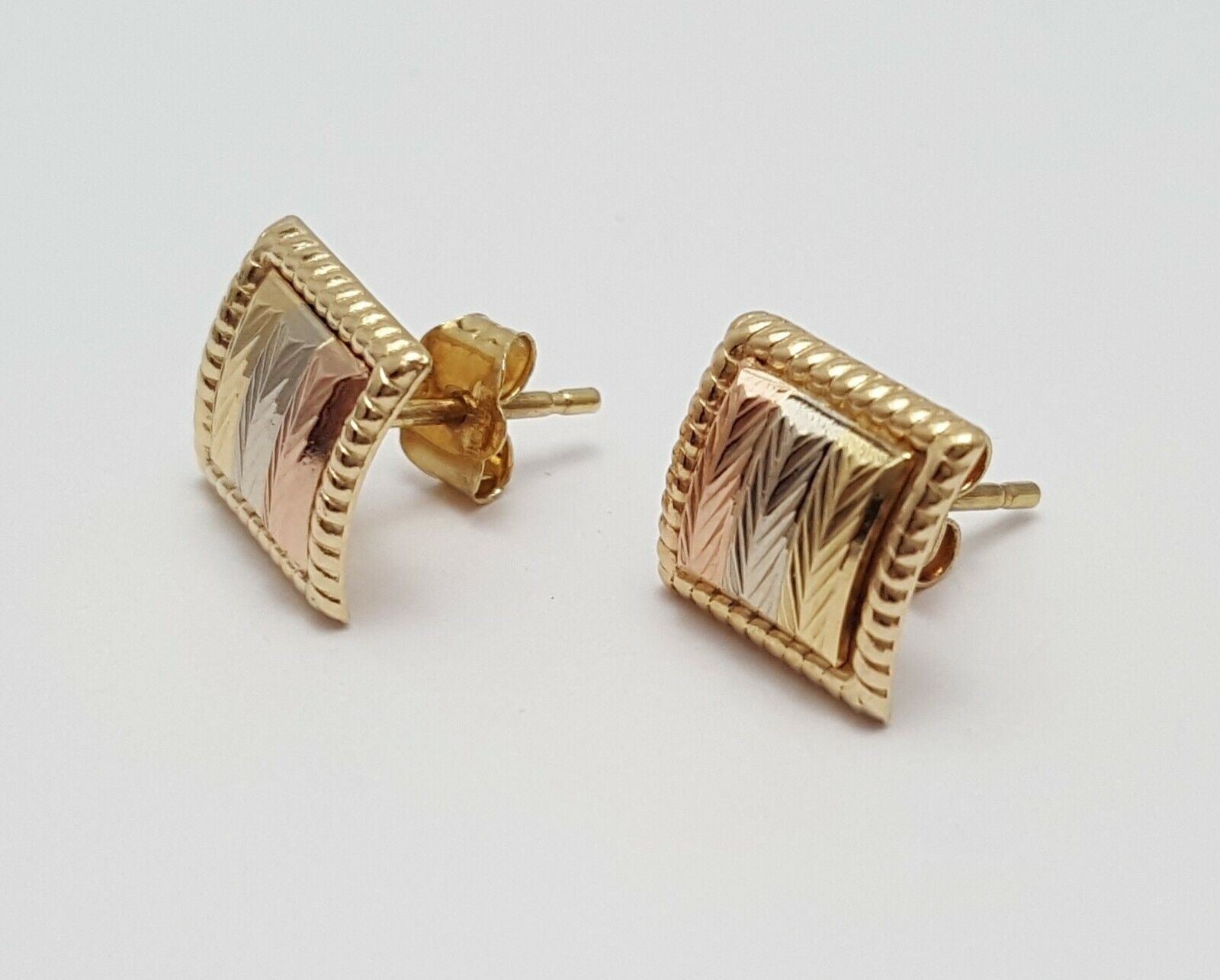 10K Tri Tone Tri Color Gold Designer Square Stud Earrings