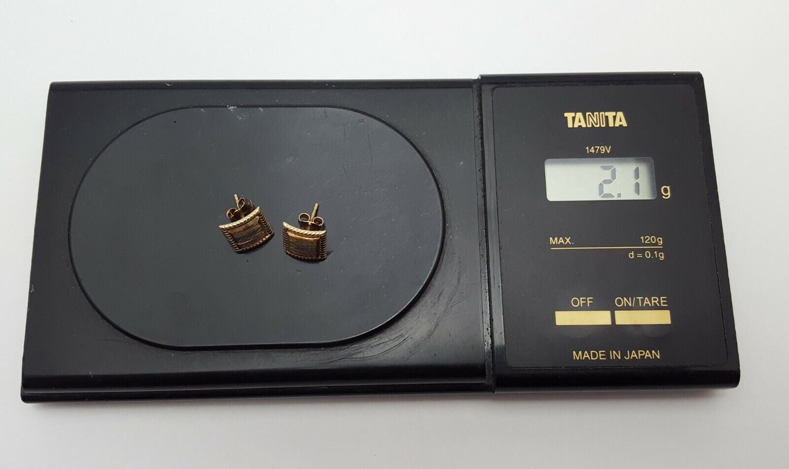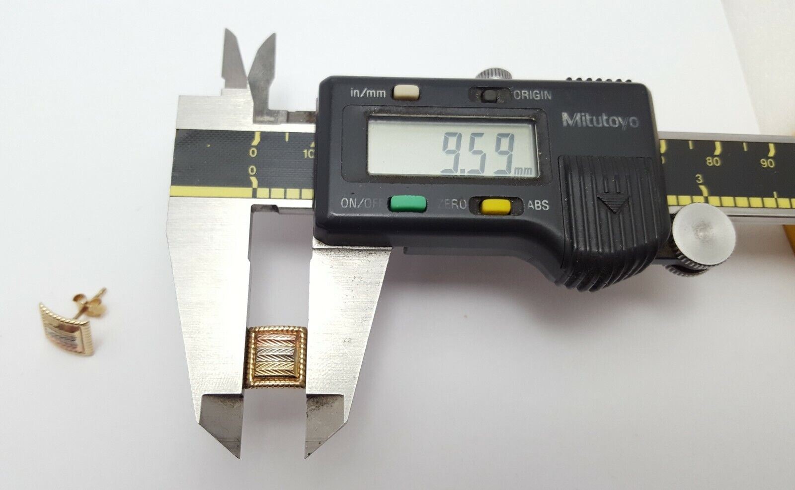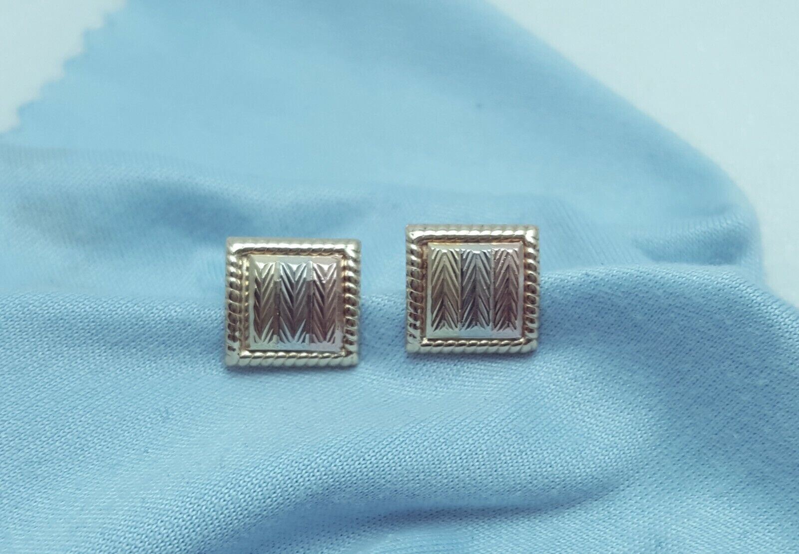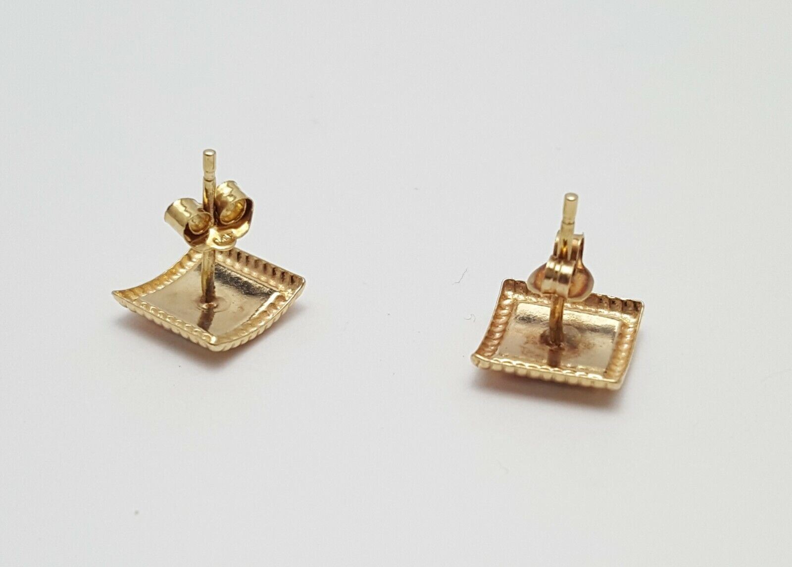 10K Tri Tone Tri Color Gold Designer Square Stud Earrings