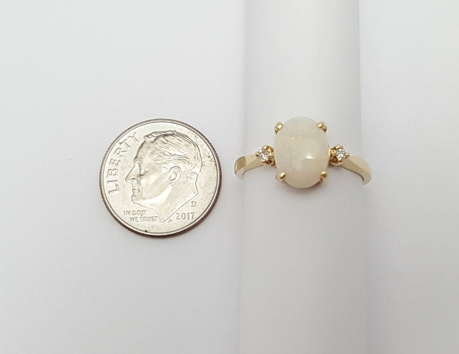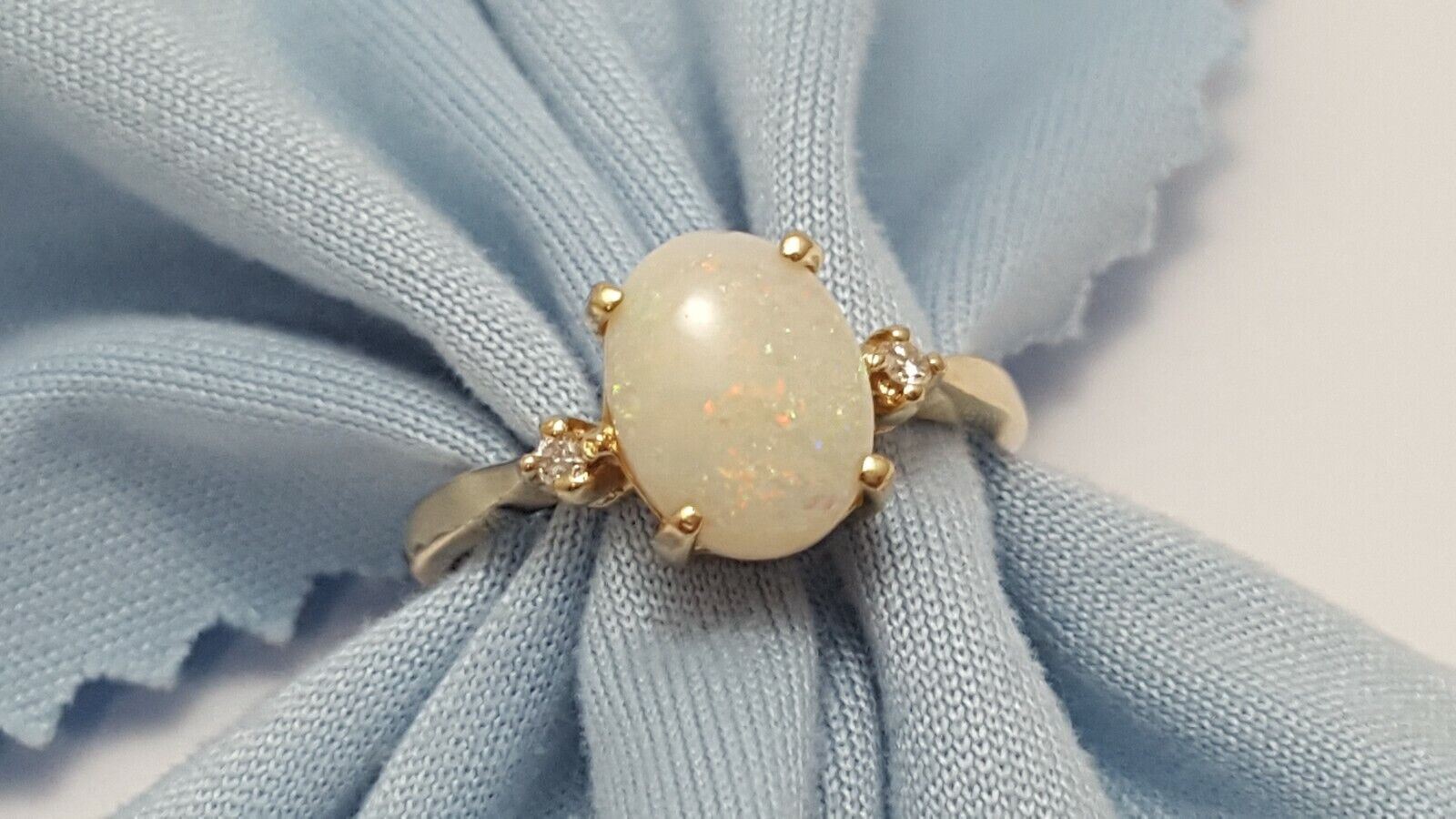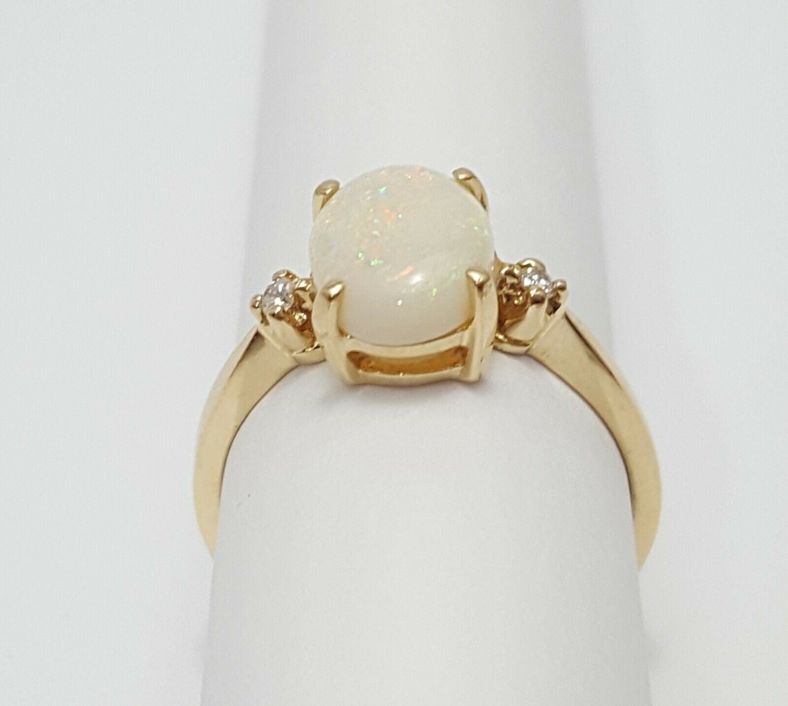 14K Solid Yellow Gold Designers Ladies Diamond & Opal Ring