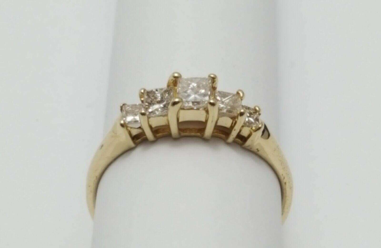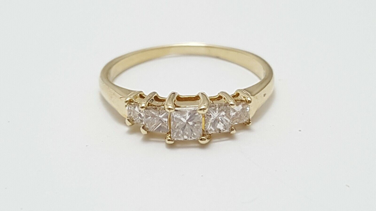 14K Solid Yellow Gold Ladies Princess Cut Diamond Ring