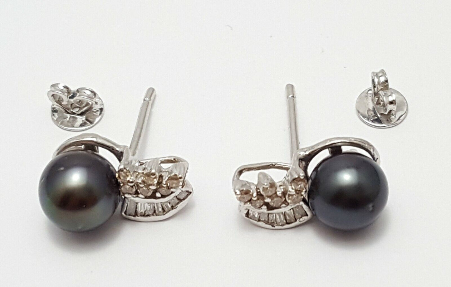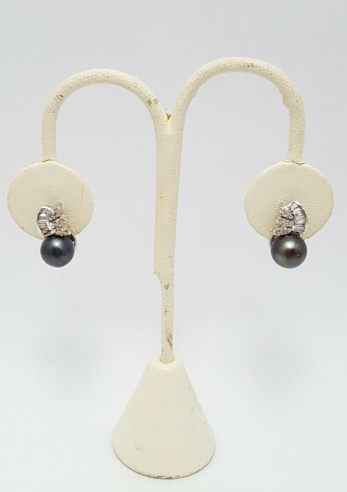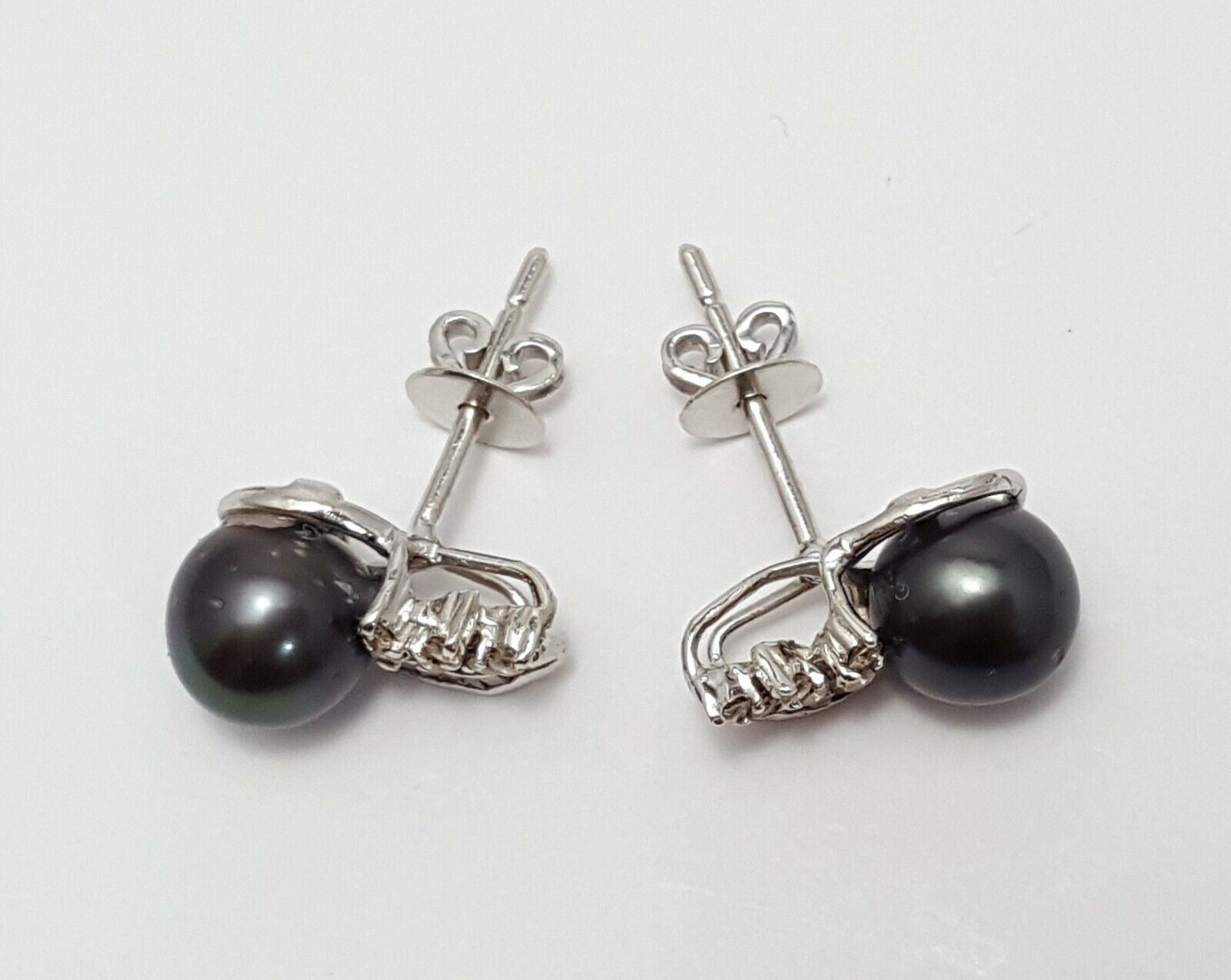 14K White Gold Designer Stud Tahitian Pearl & Diamonds Earrings
