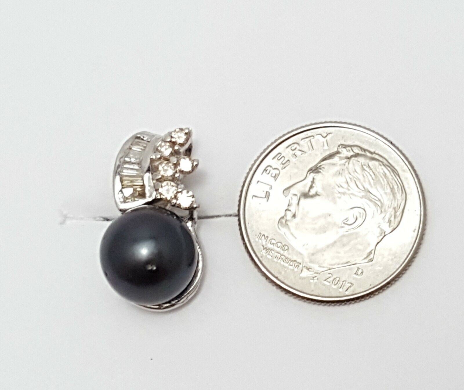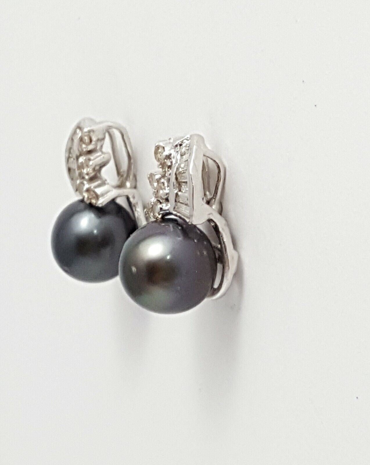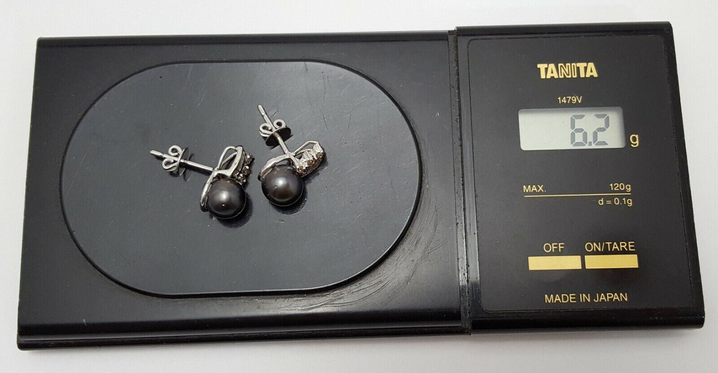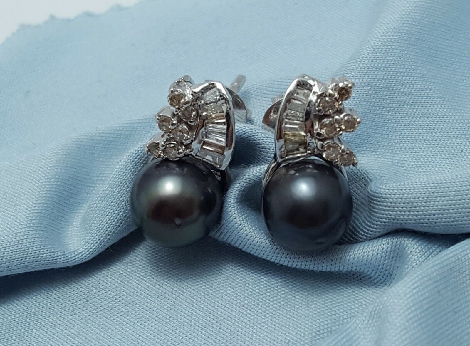 14K White Gold Designer Stud Tahitian Pearl & Diamonds Earrings