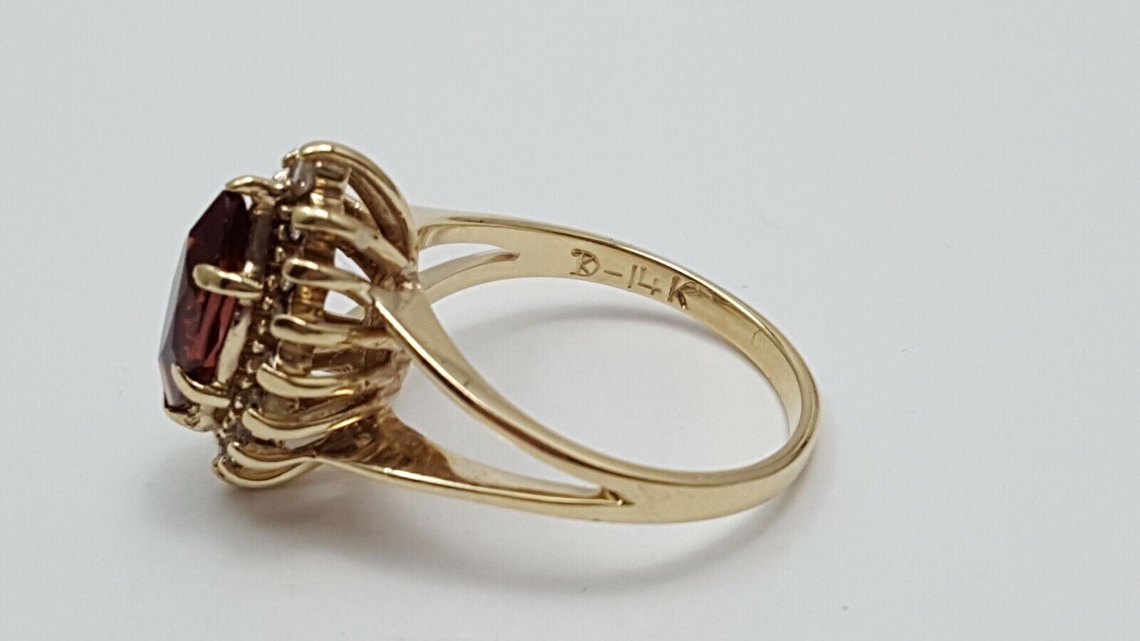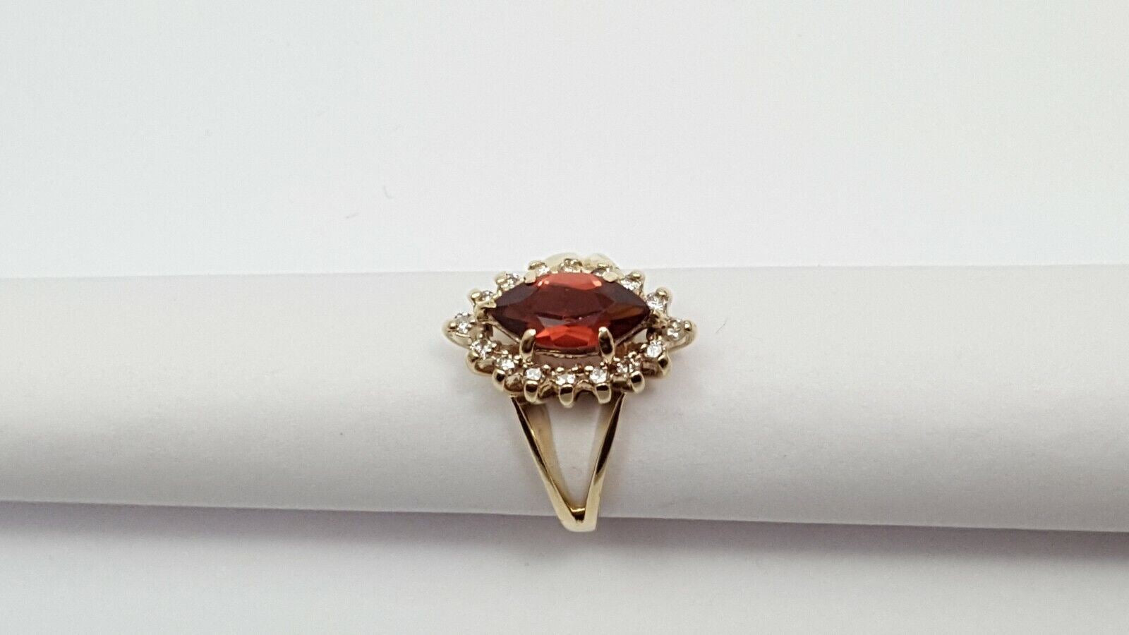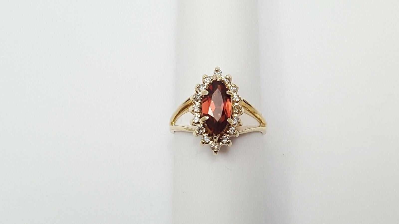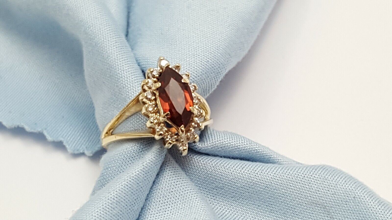 14K Solid Yellow Gold Garnet & Diamond Ring