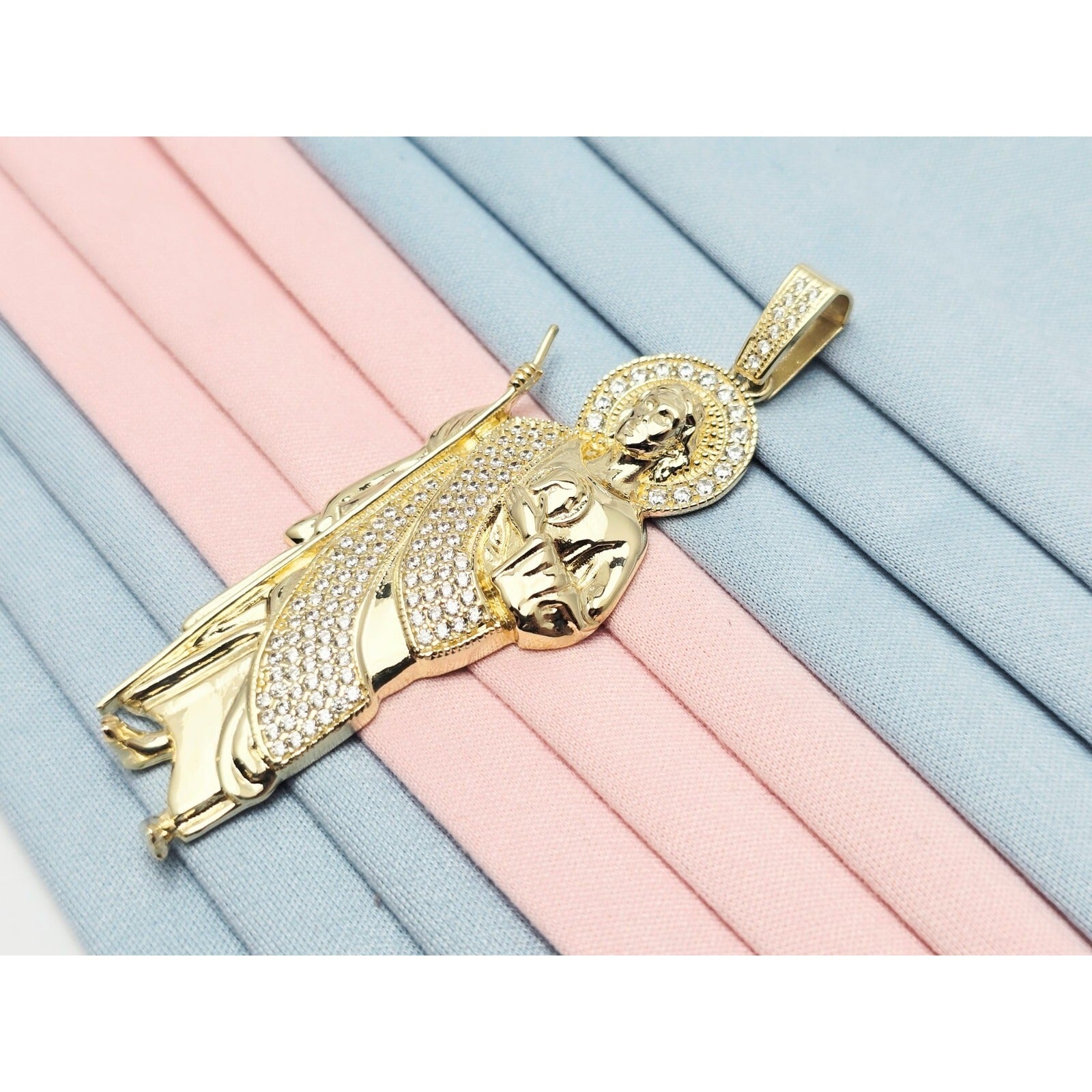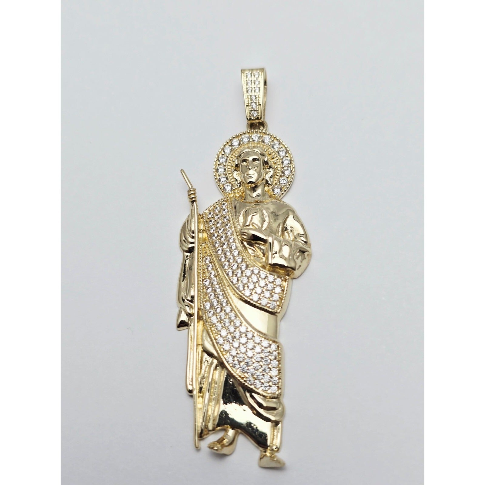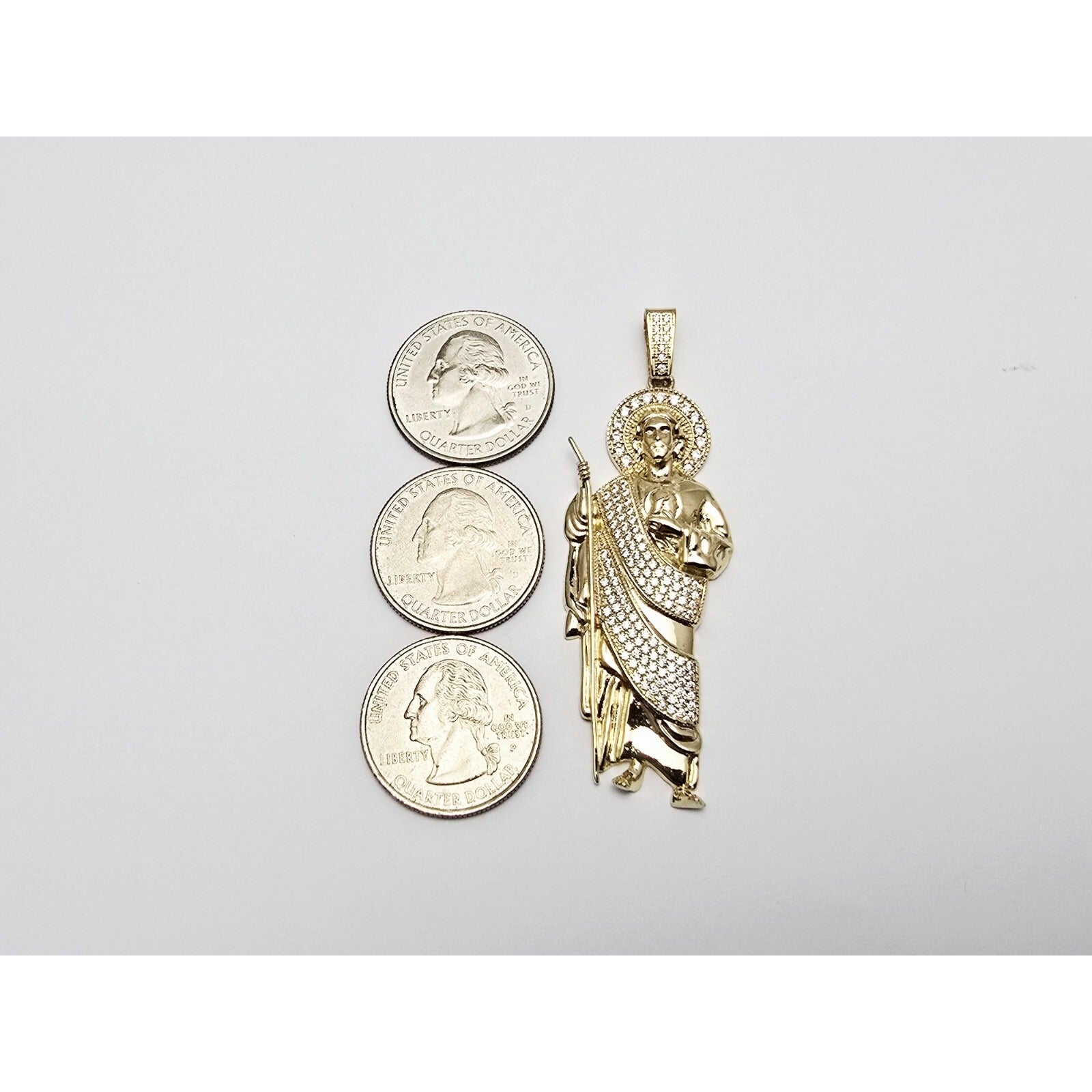 Large 10K Yellow Gold Saint Jude CZ Charm Pendant