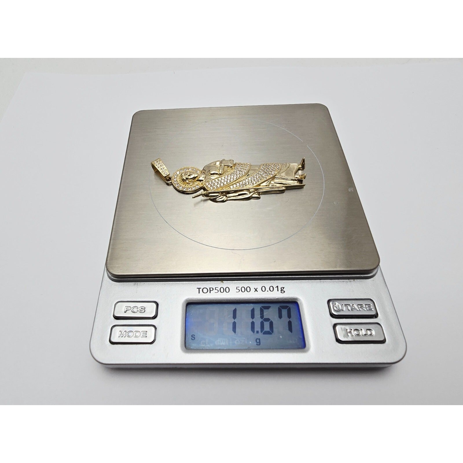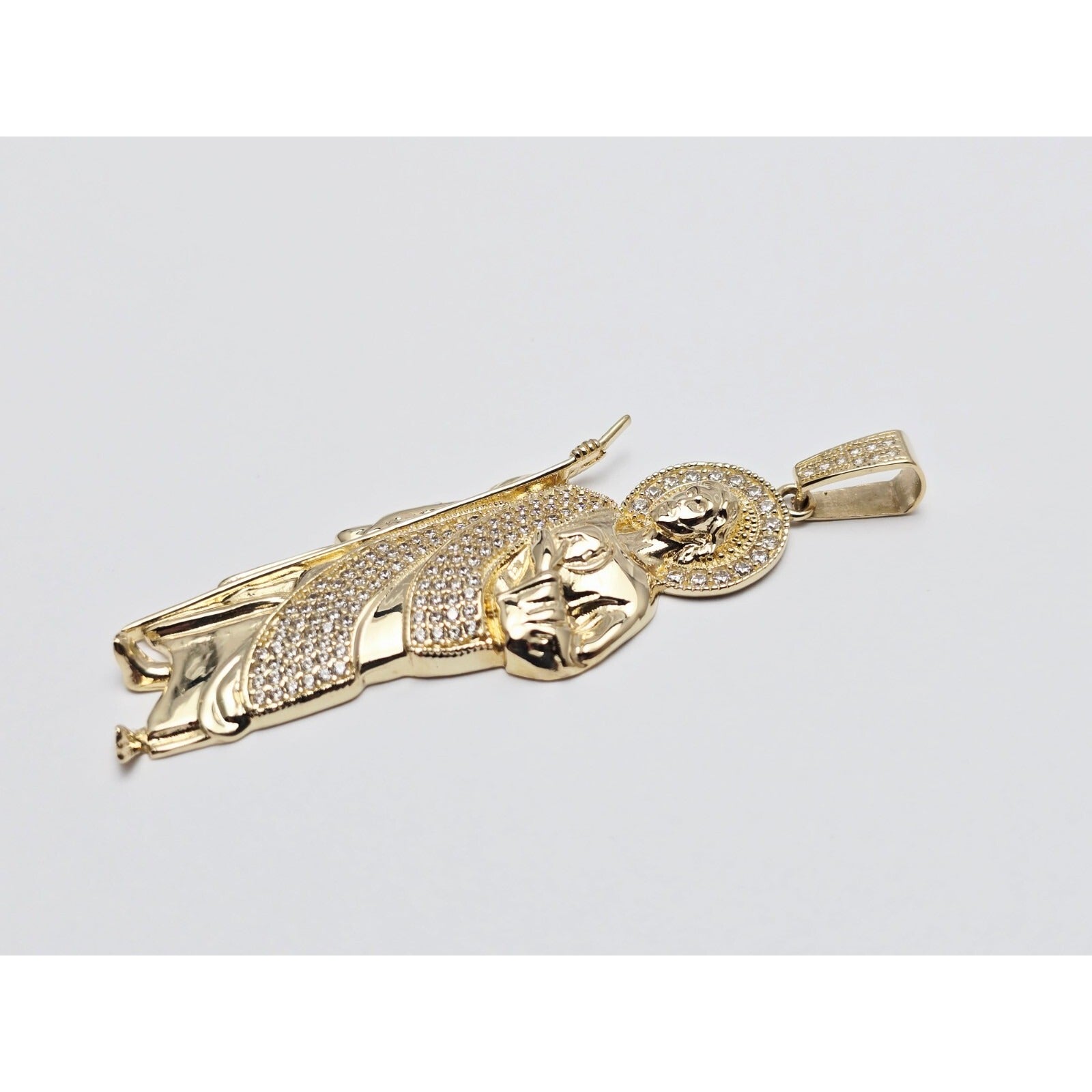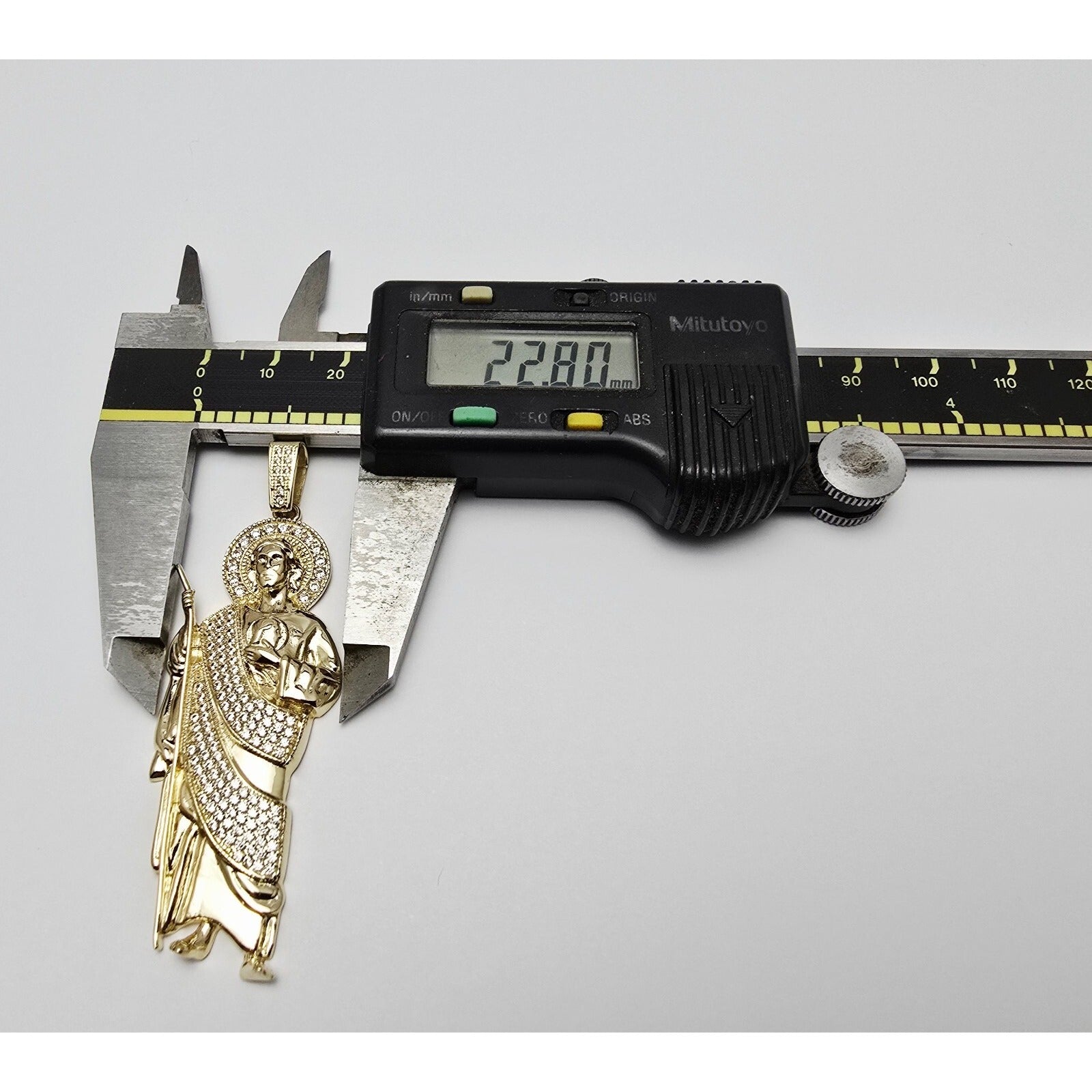 Large 10K Yellow Gold Saint Jude CZ Charm Pendant