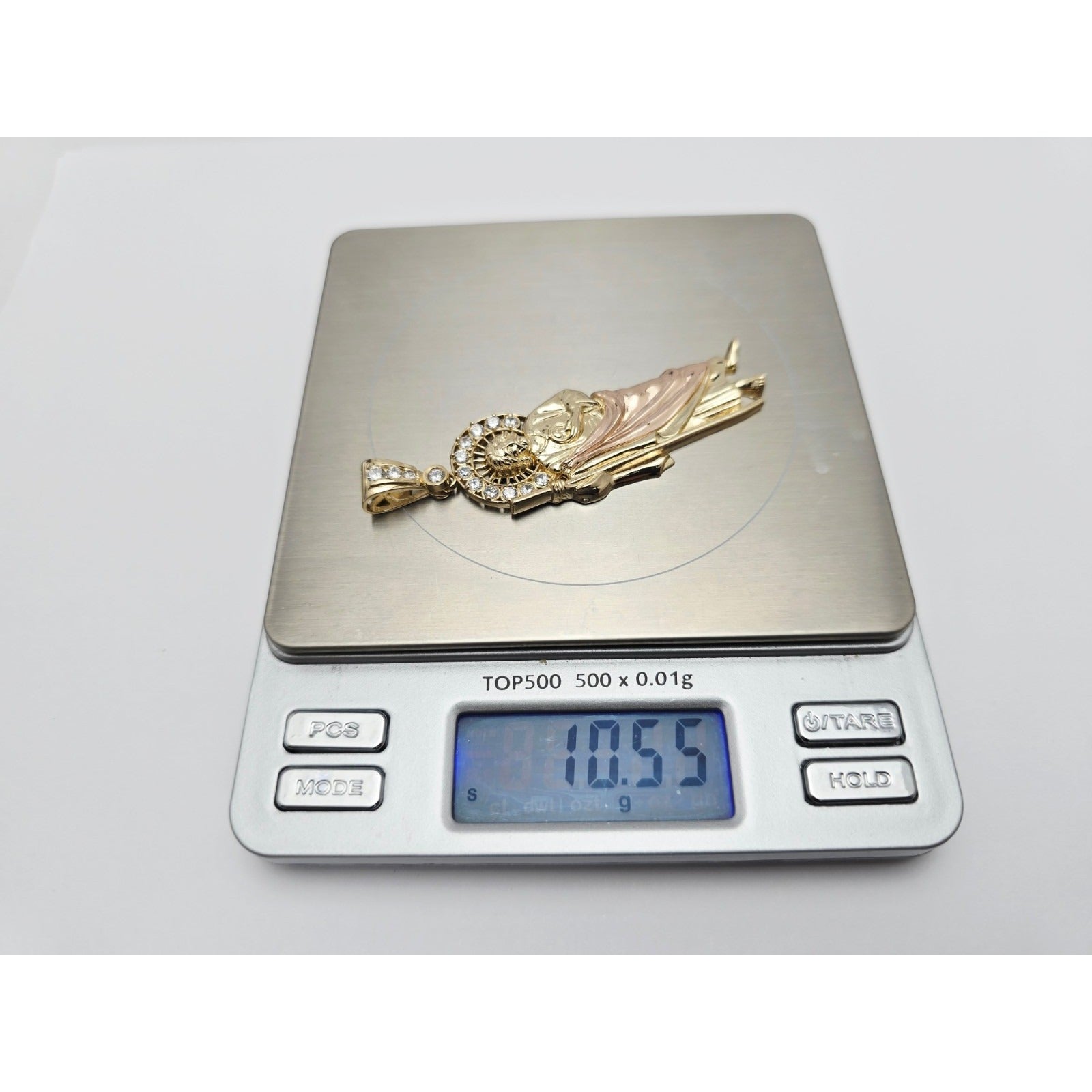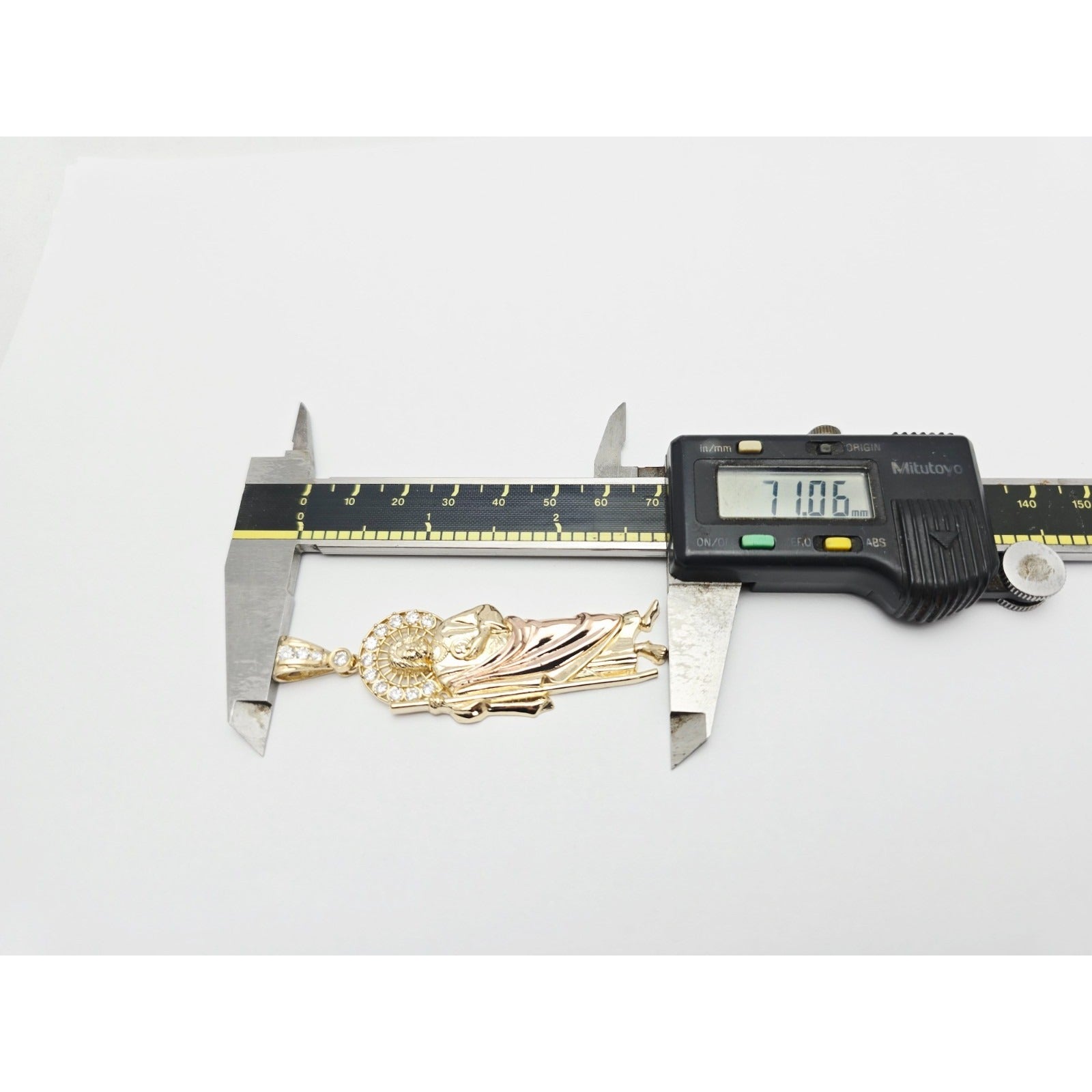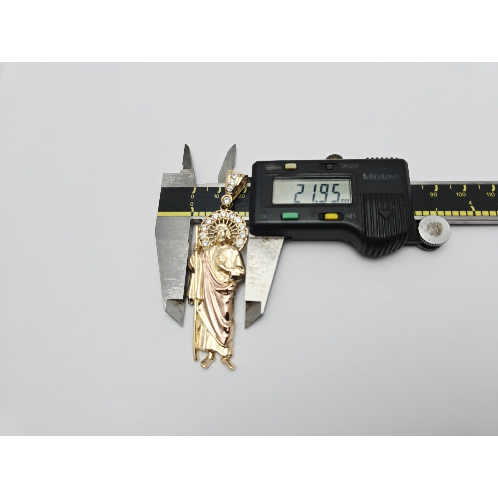 Large 14K Two Tone Gold Saint Jude CZ Charm Pendant