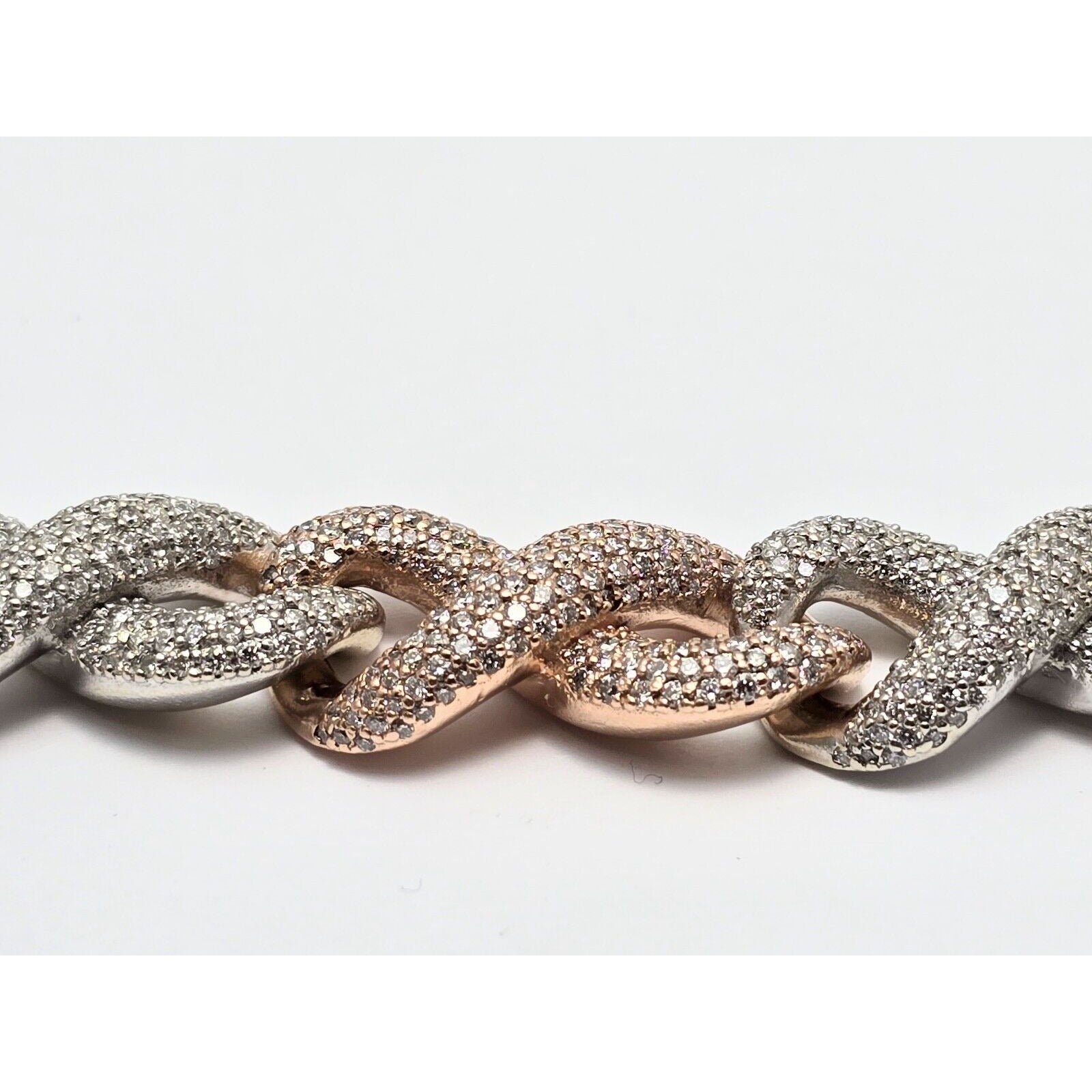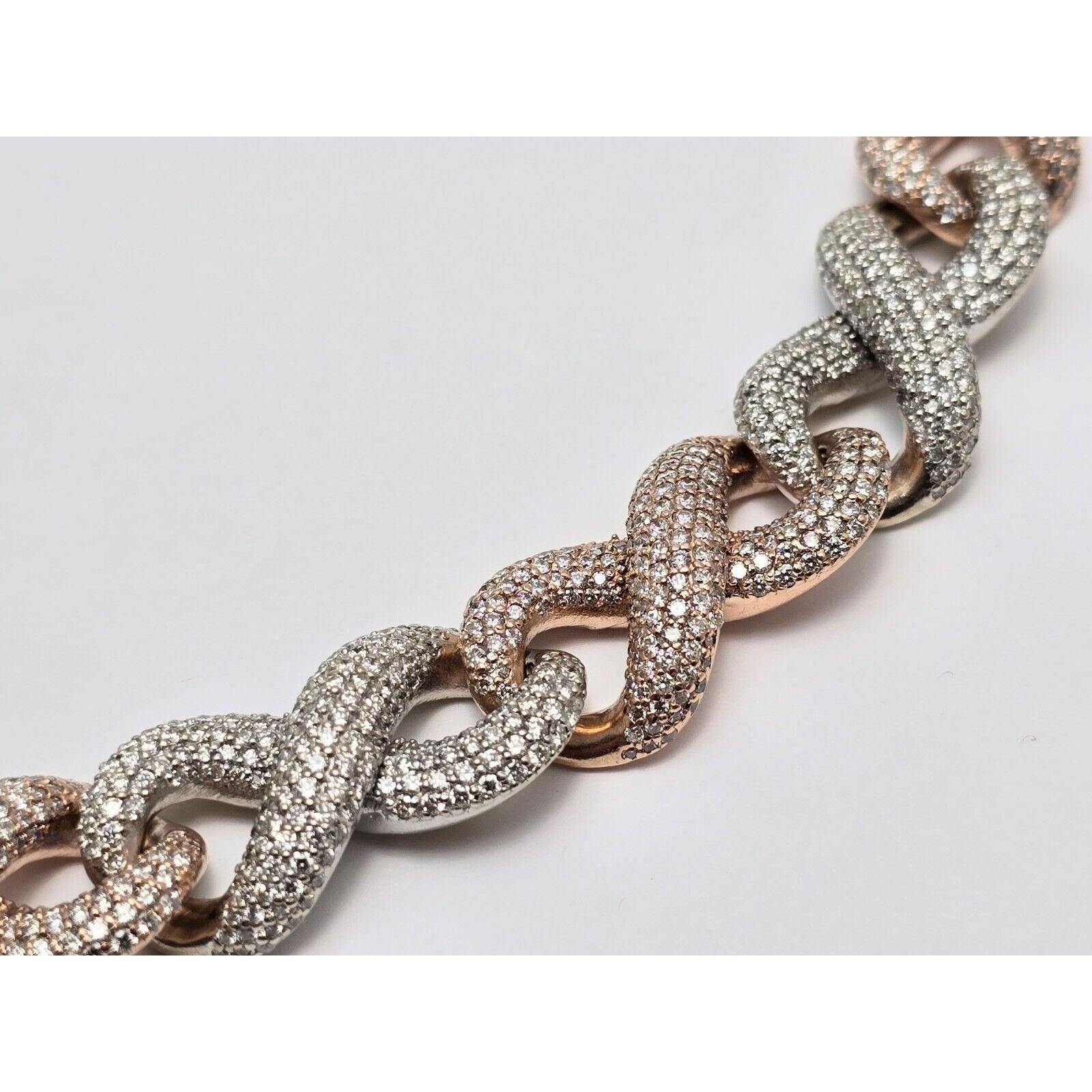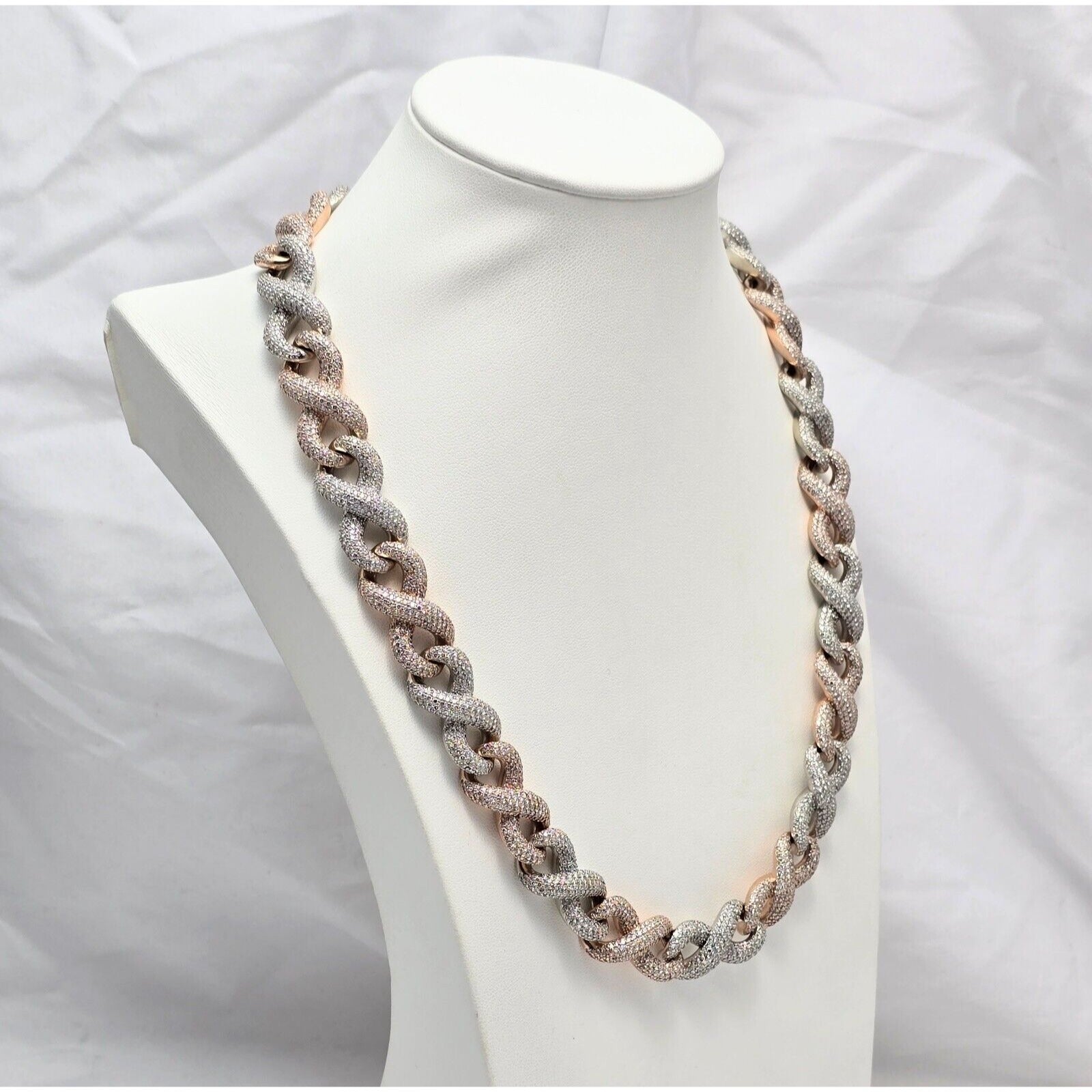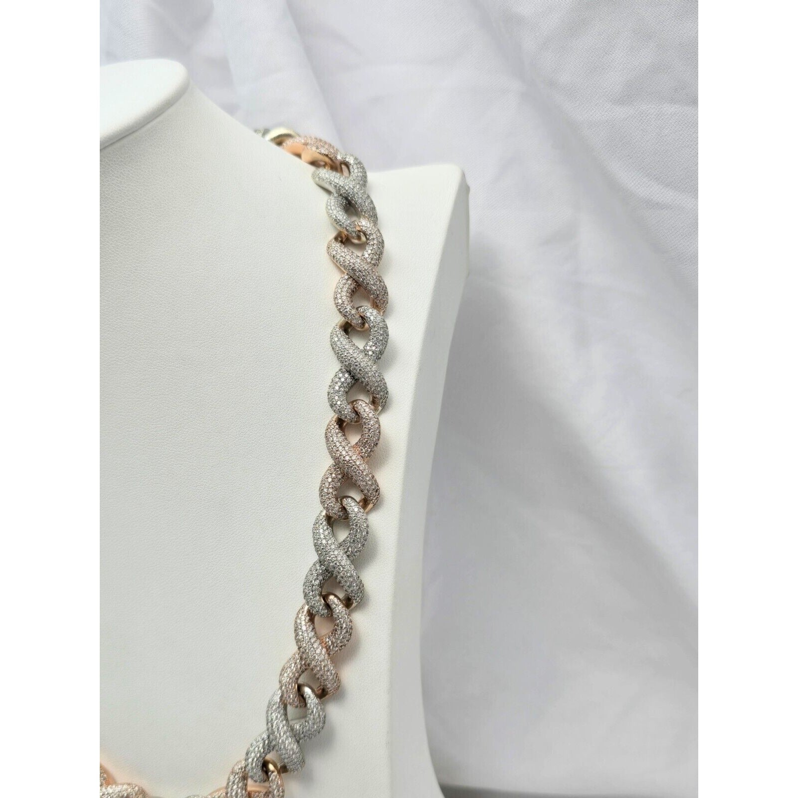 Large Heavy 10K Two Tone Gold Diamond Infinity Cuban Link Chain