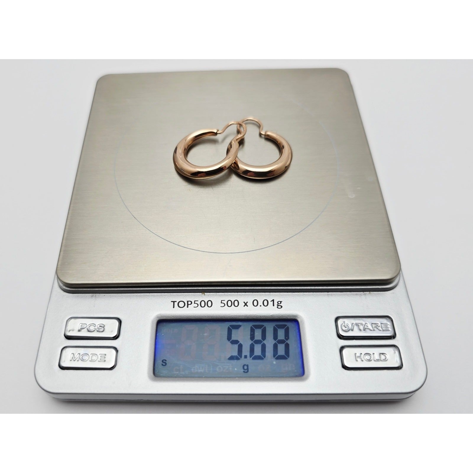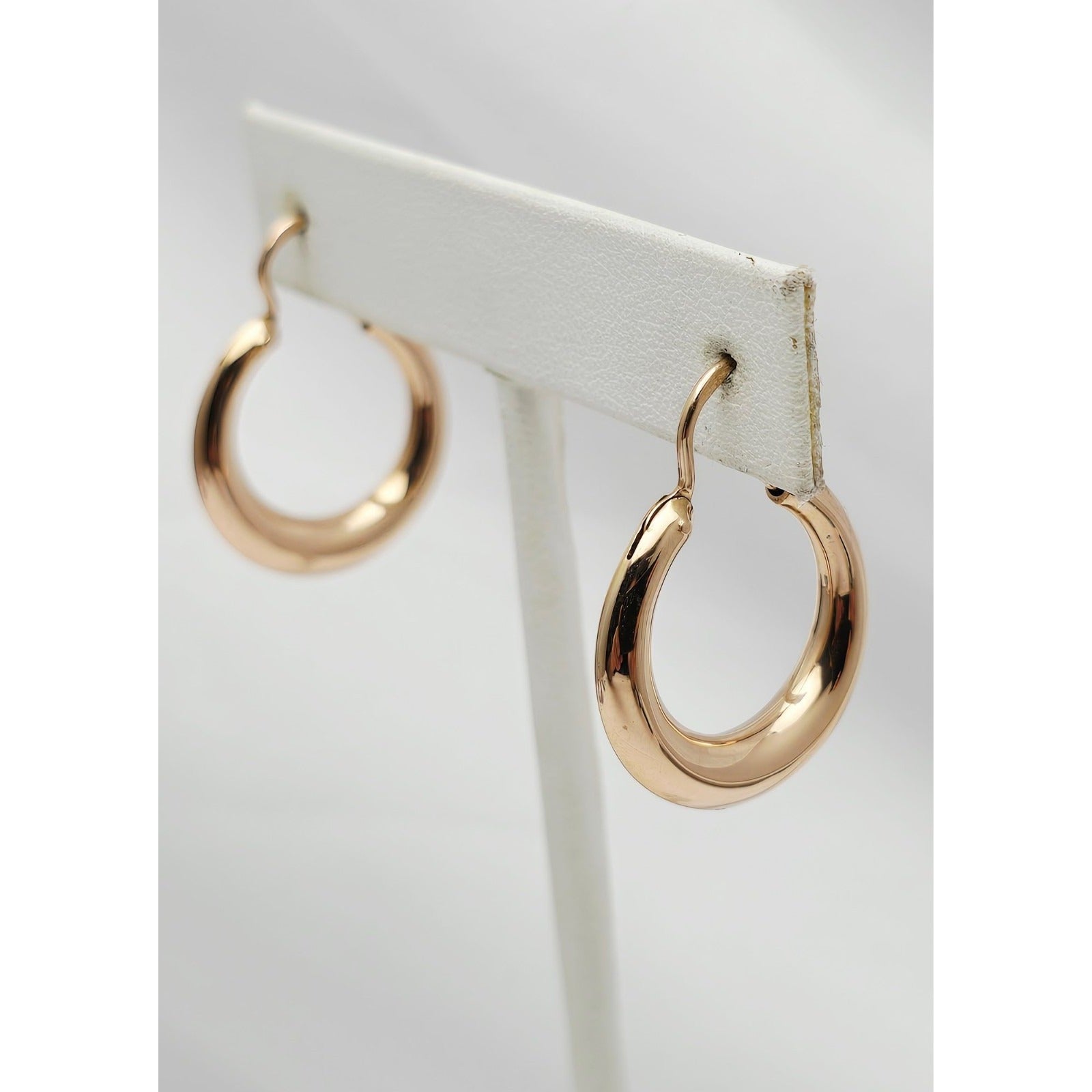 Medium 14K Rose Gold Polished Round Hinged Hoop Earrings