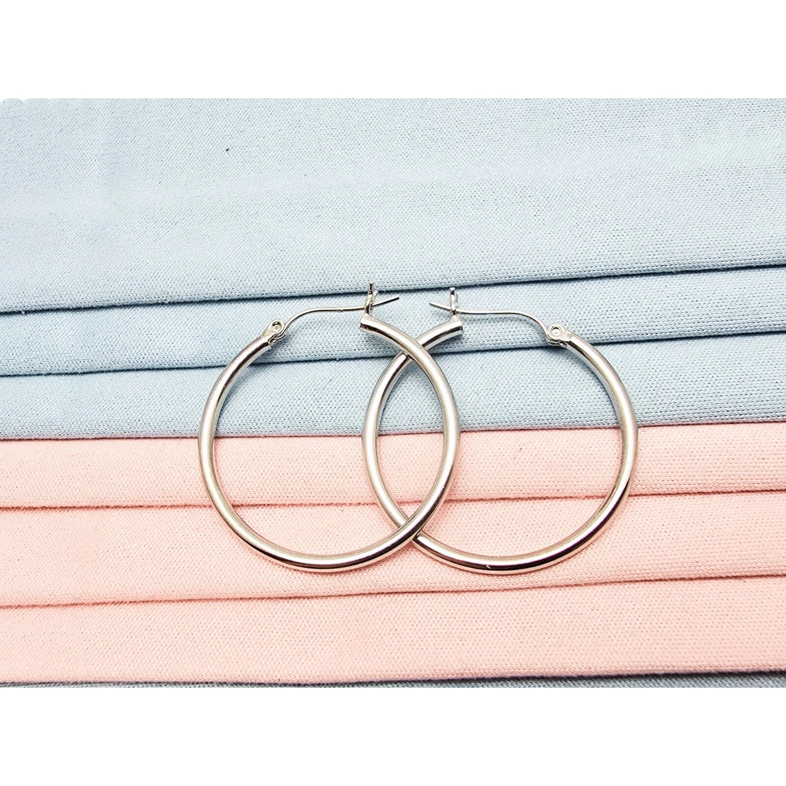 Medium Sized 14K White Gold Hinged Hoop Earrings