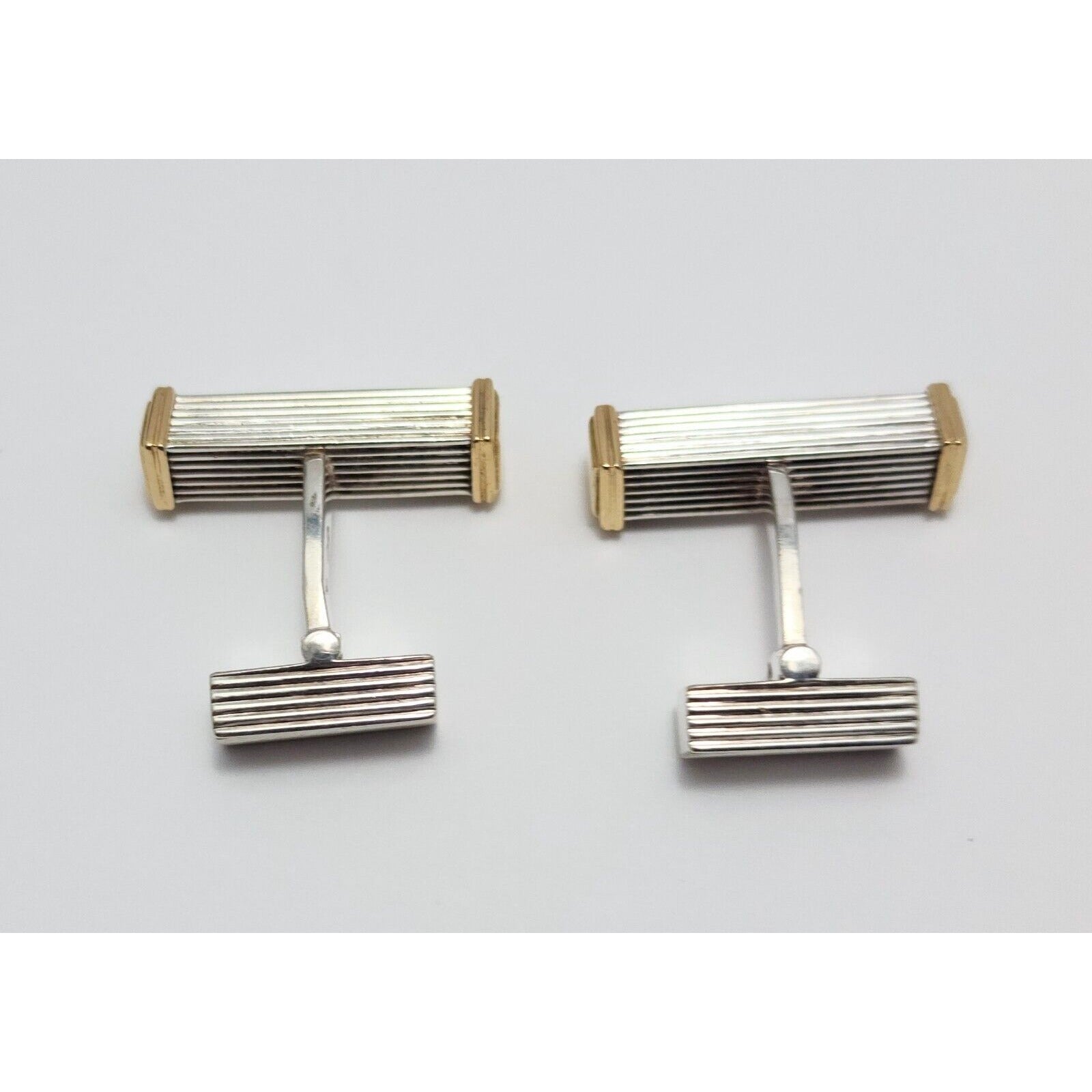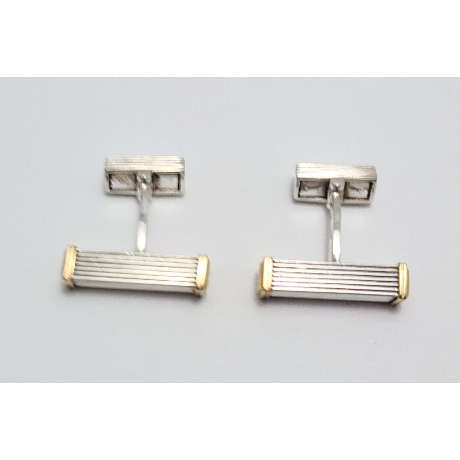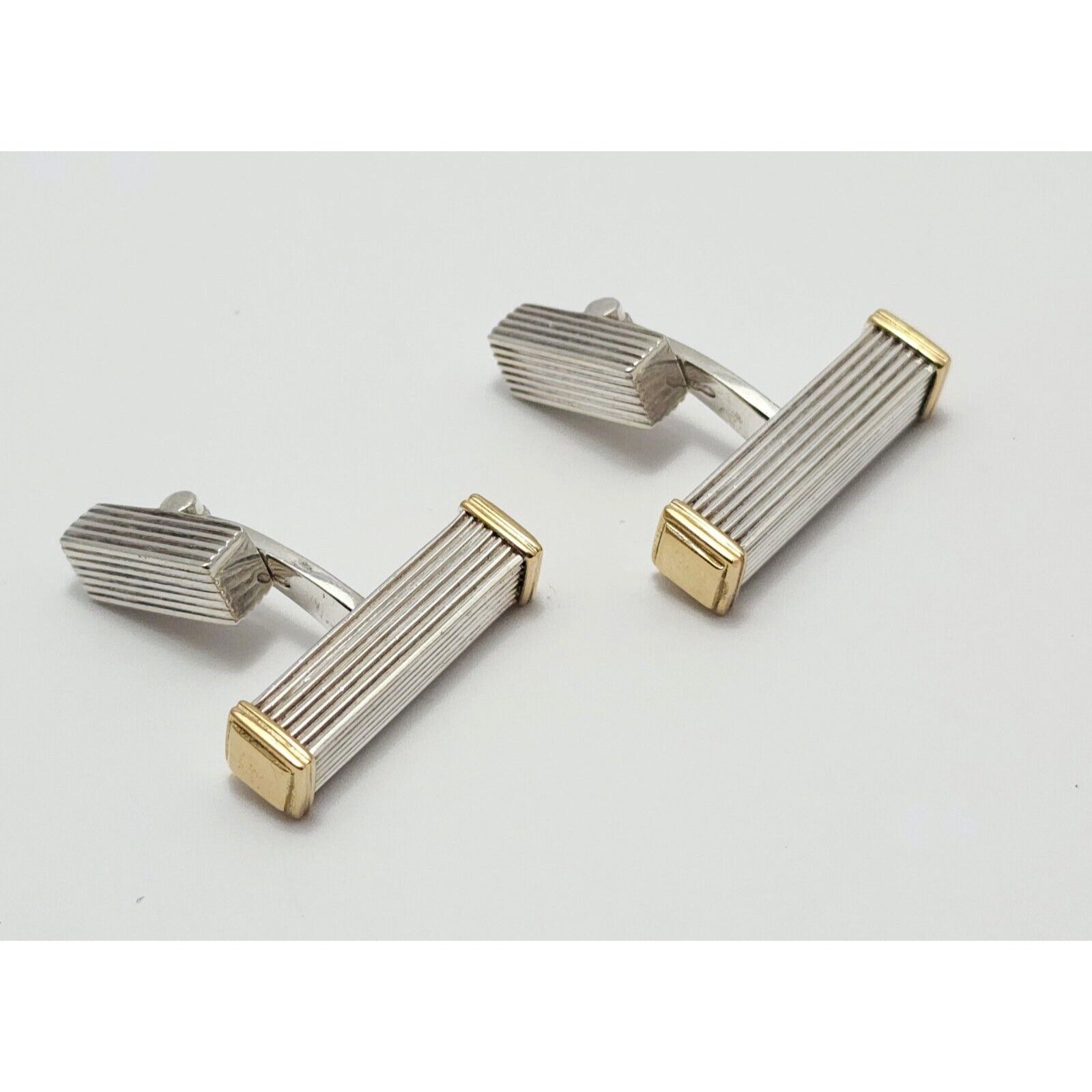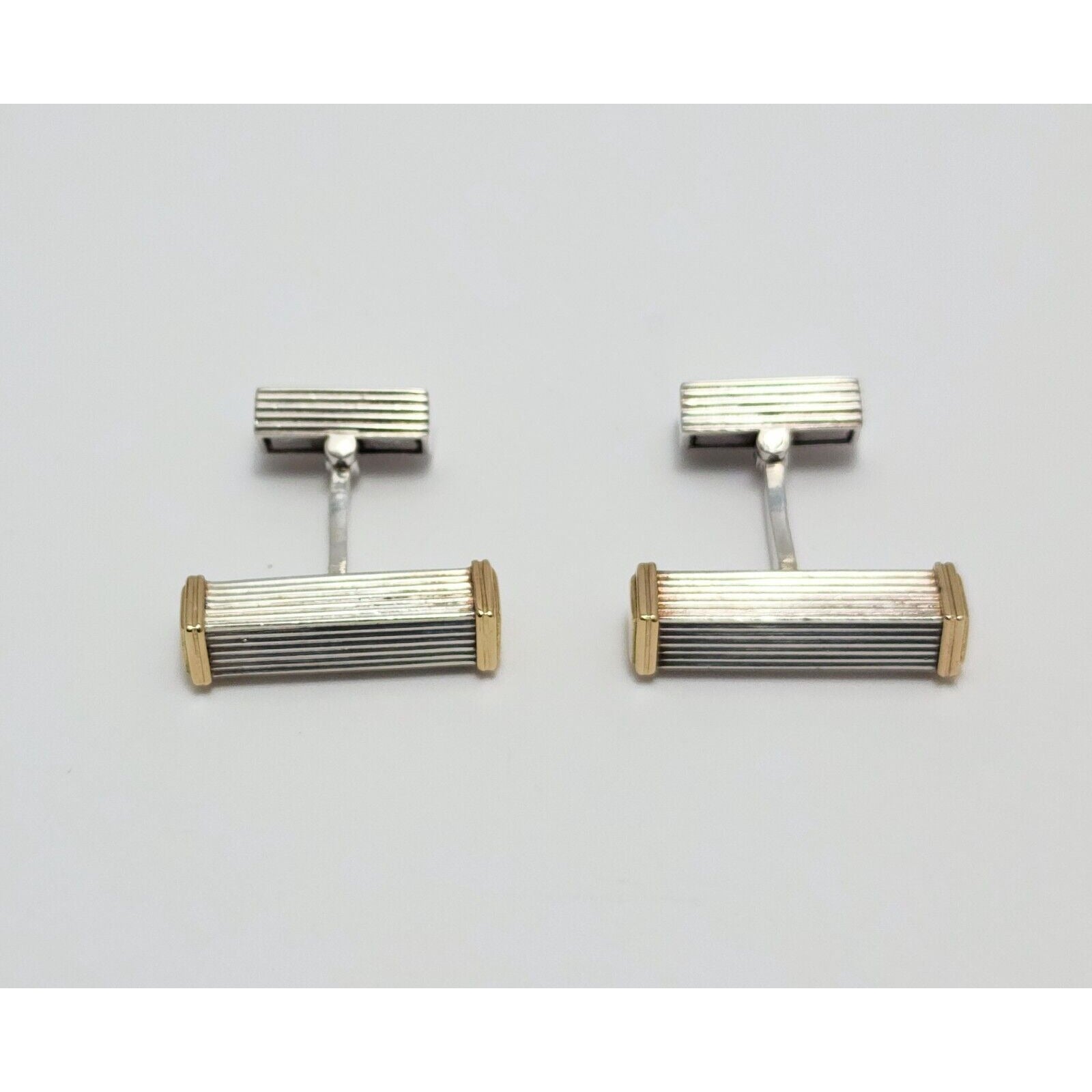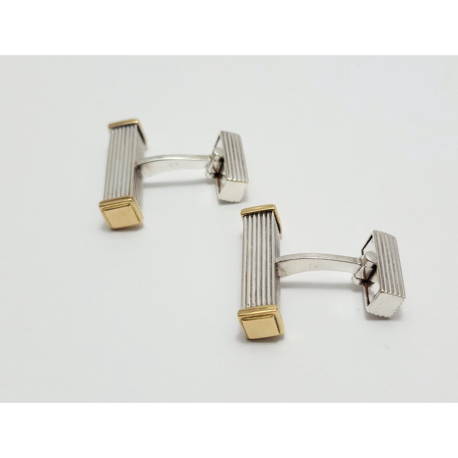 Modern GTP 18K Solid Yellow Gold & 925 Sterling Silver Cufflinks