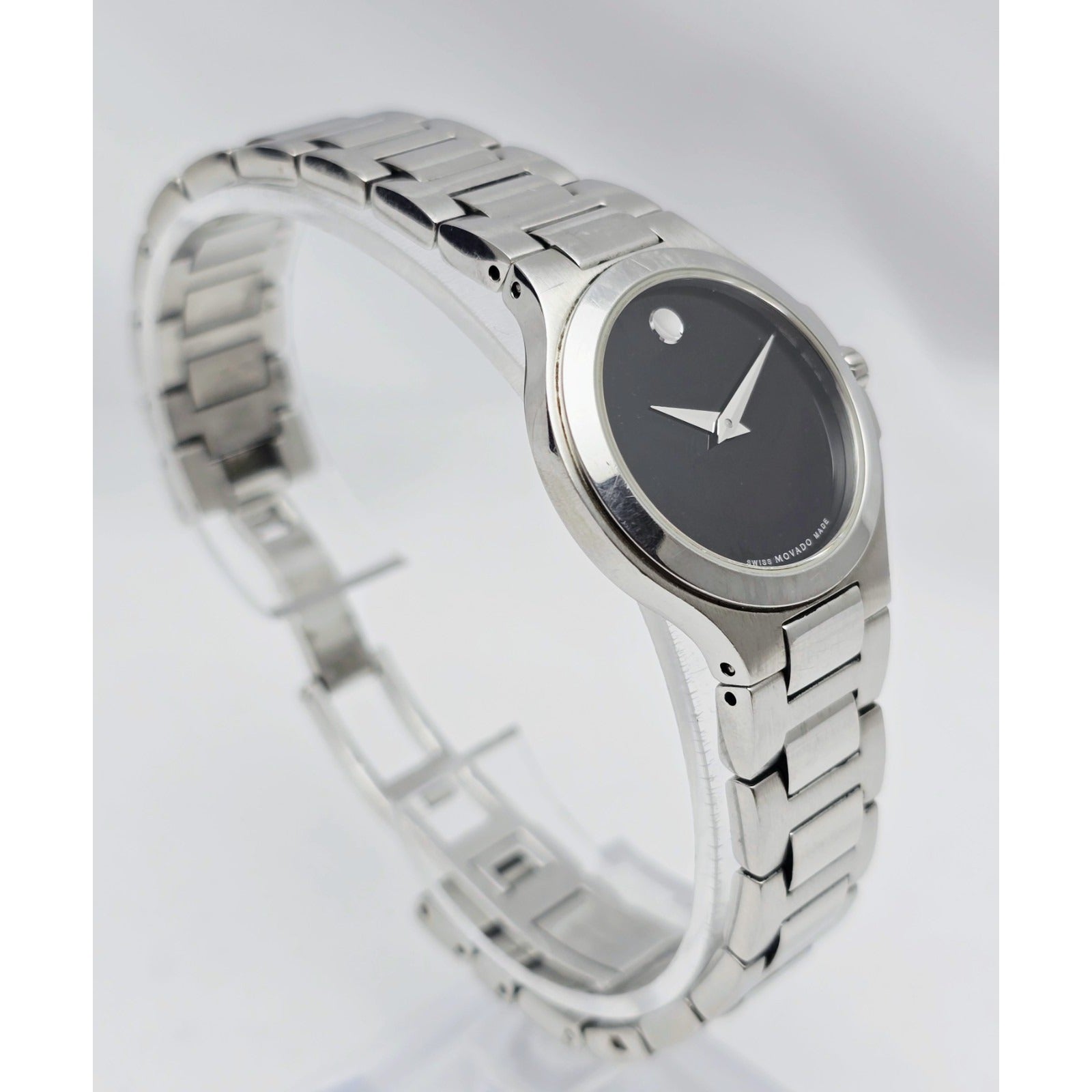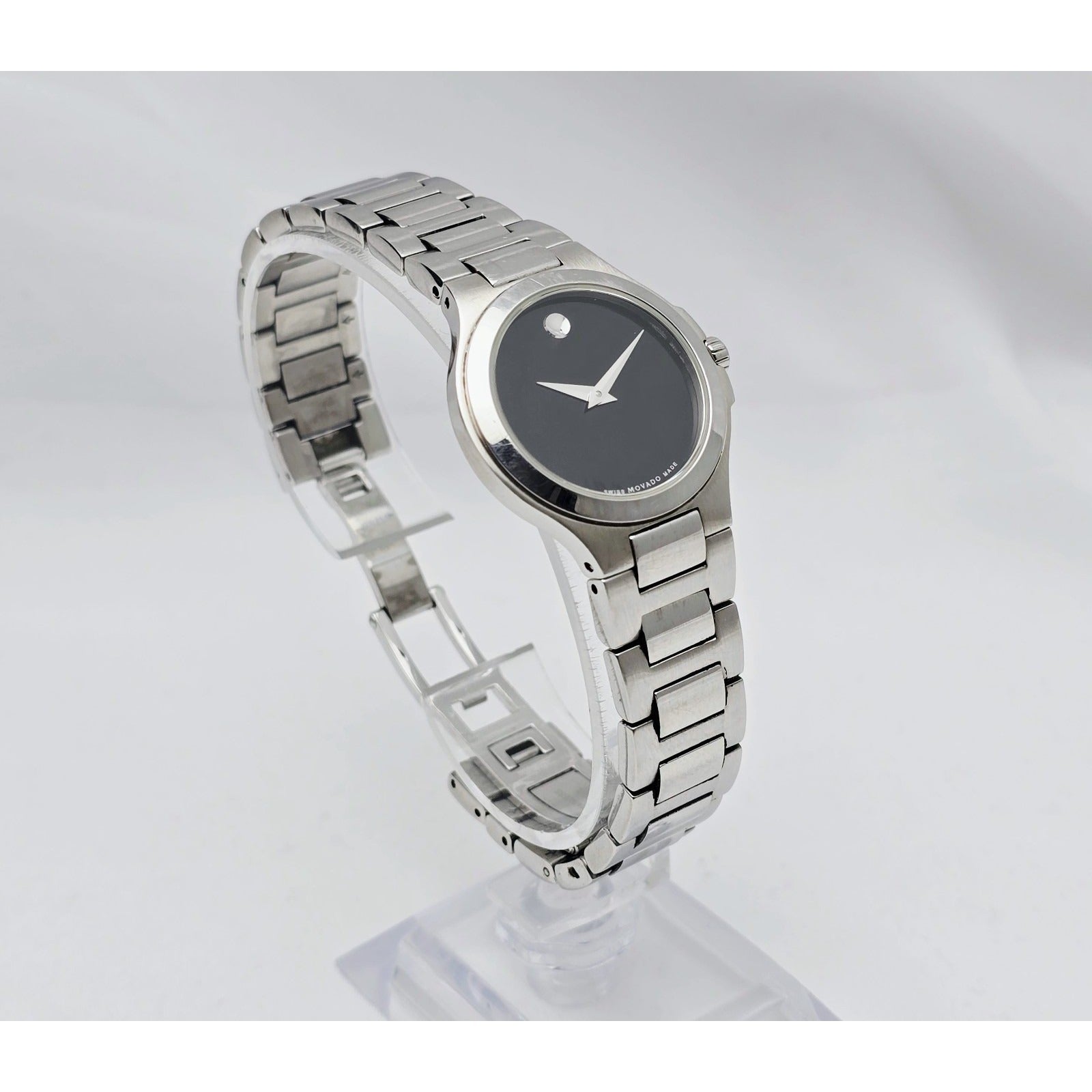 Movado Museum 28mm Stainless Steel Ladies Quartz Black Dial Watch 01.3.14.1033