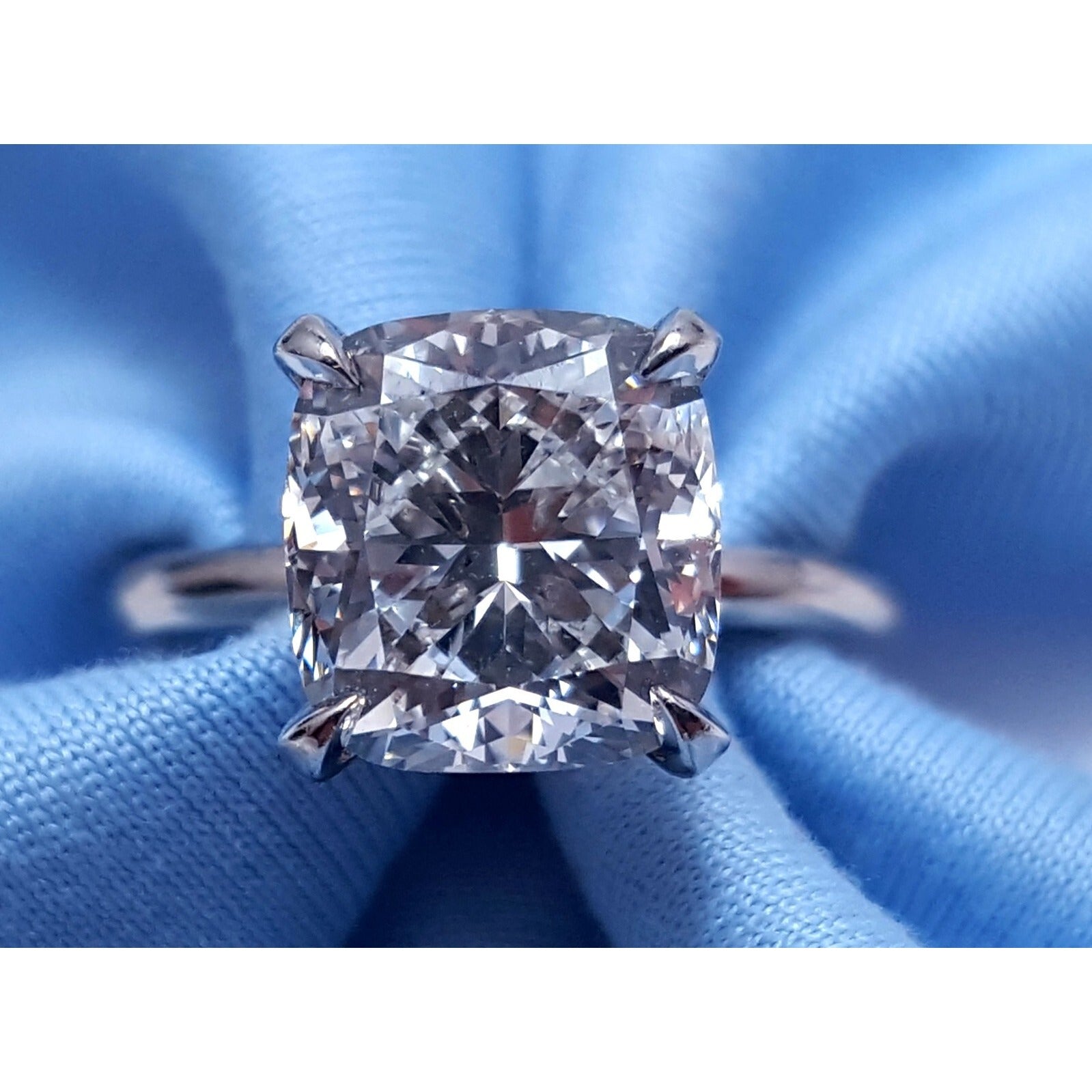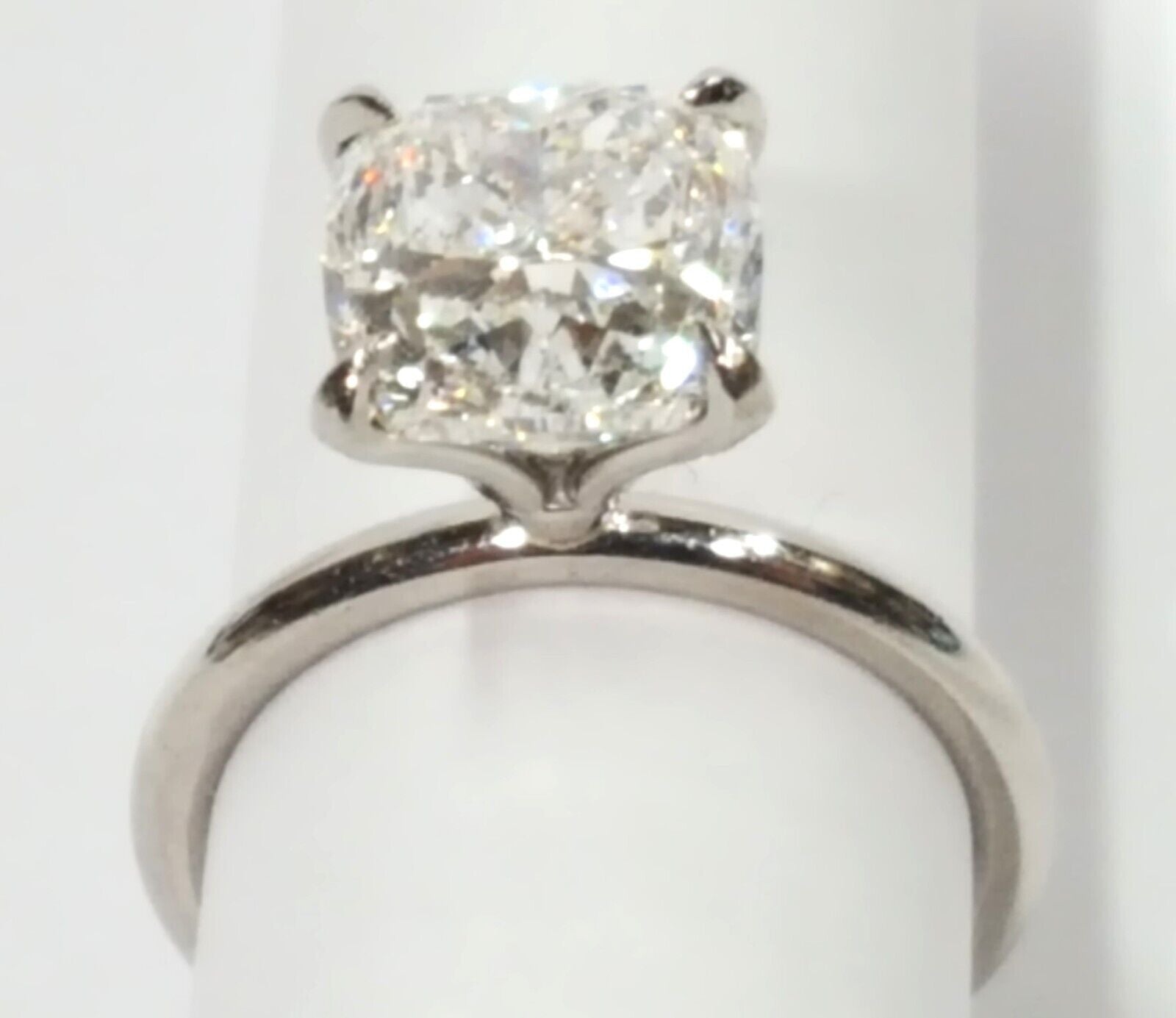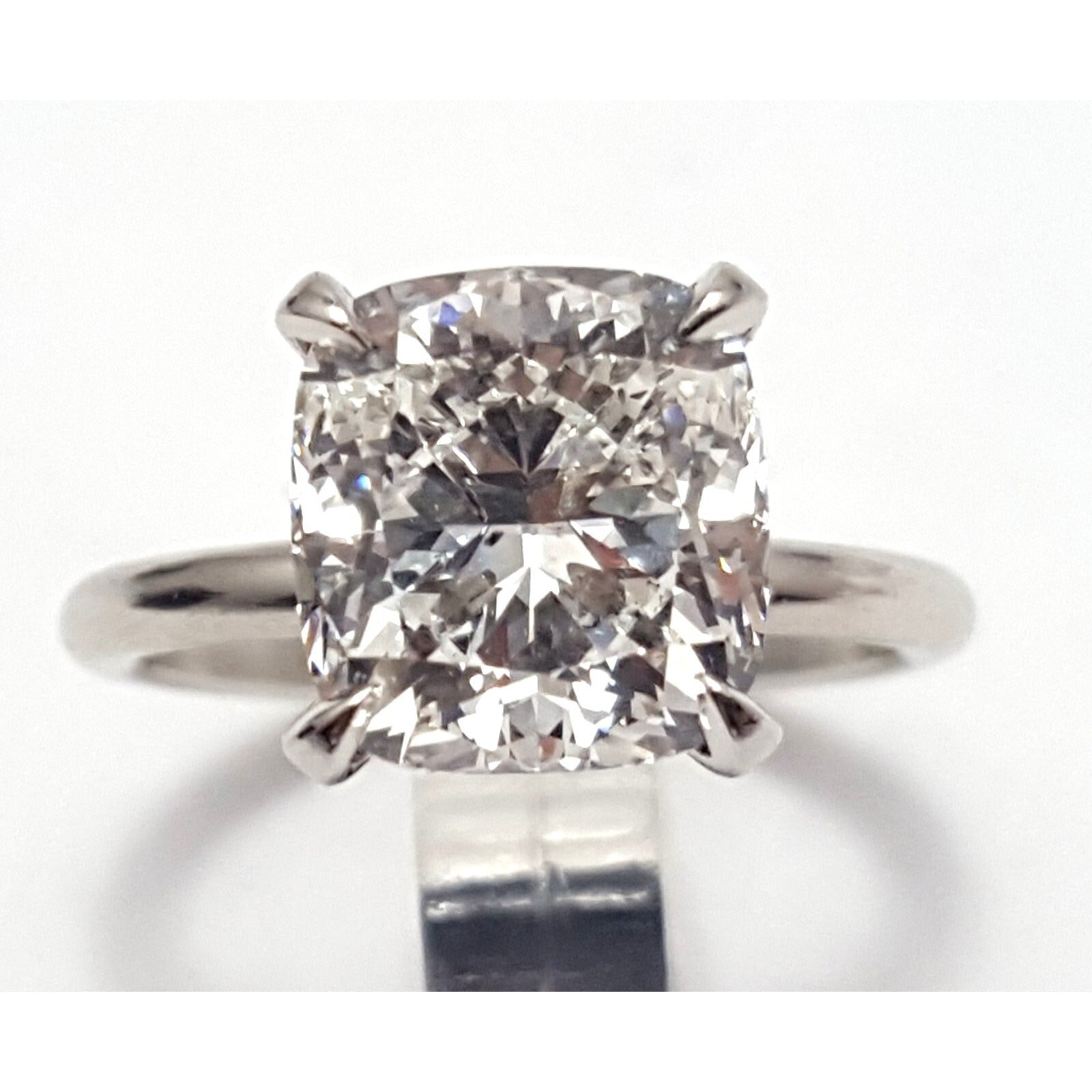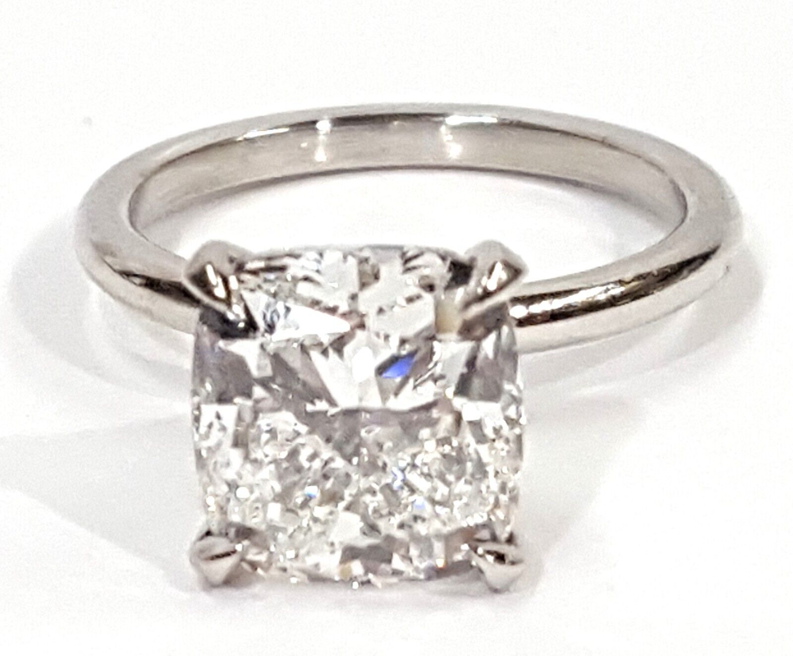 Platinum 3.01ct Natural Cushion Cut Solitaire Diamond Engagement Ring GIA Cert