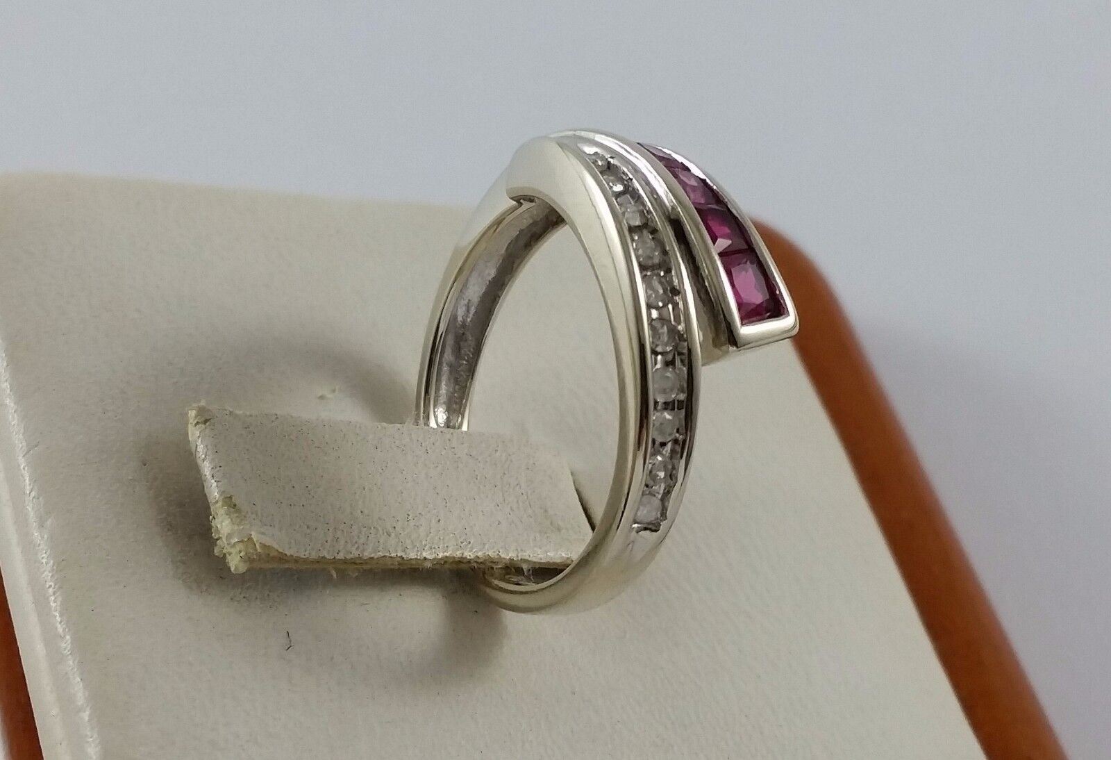 Pristine 10K Solid White Gold Red Tourmaline & Diamonds Ring