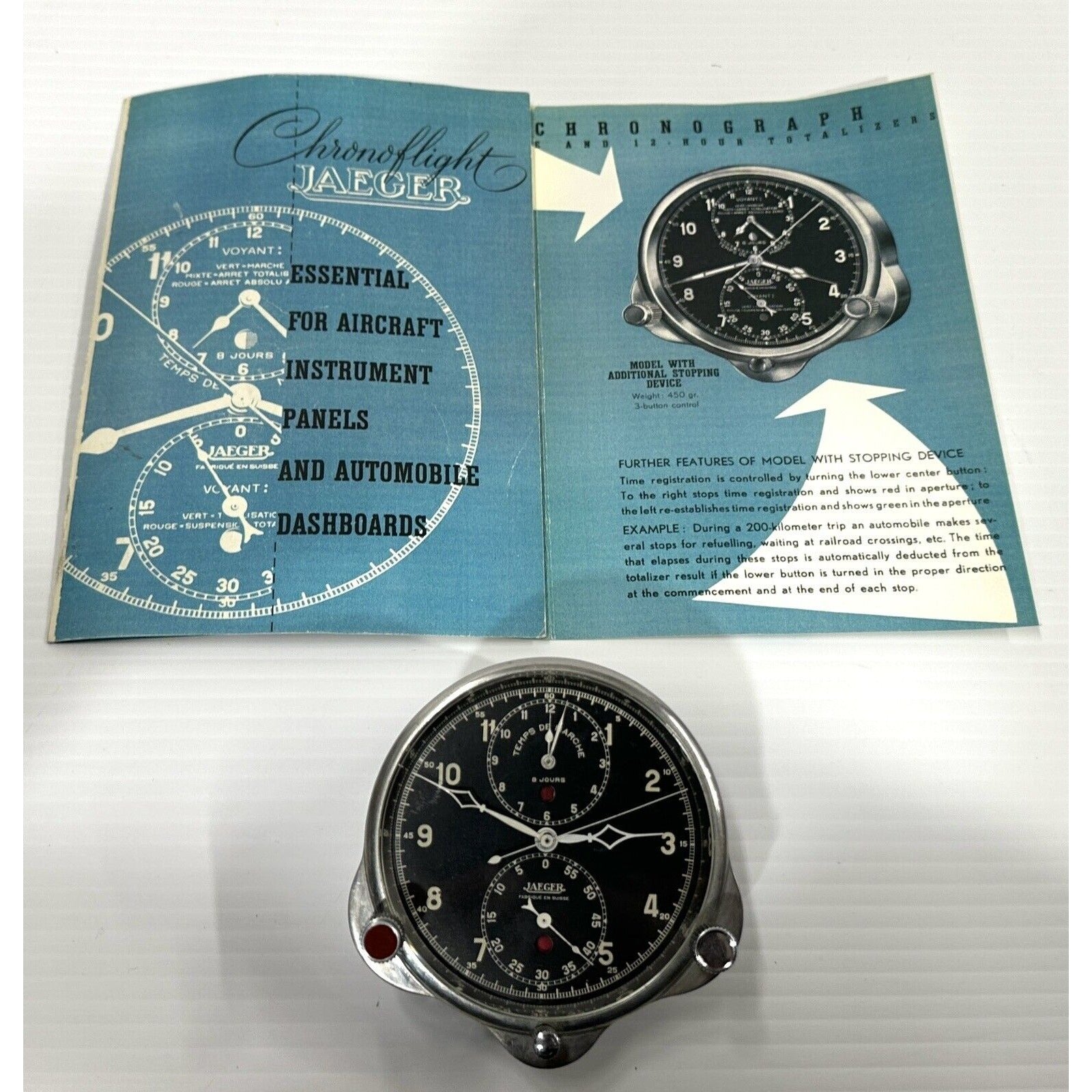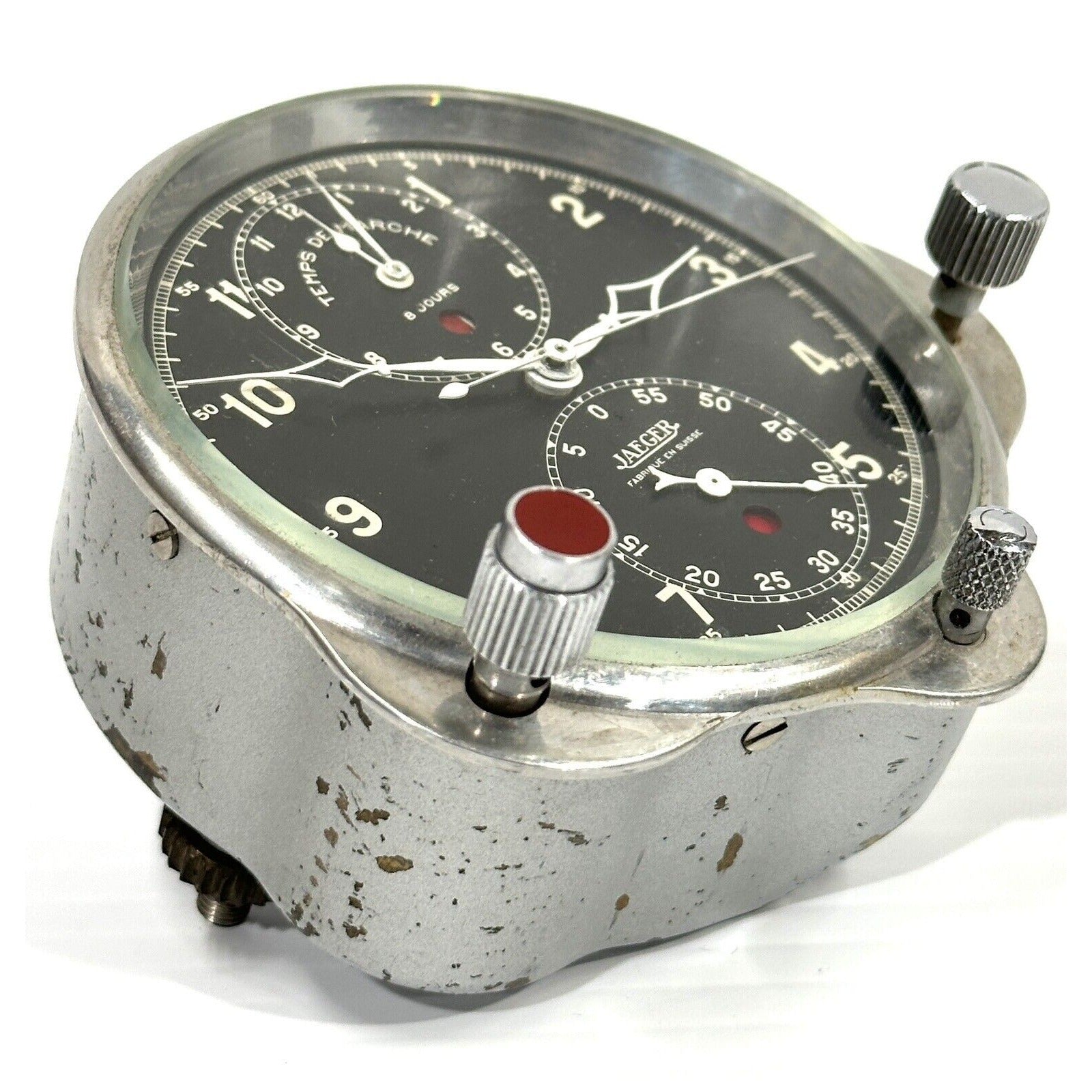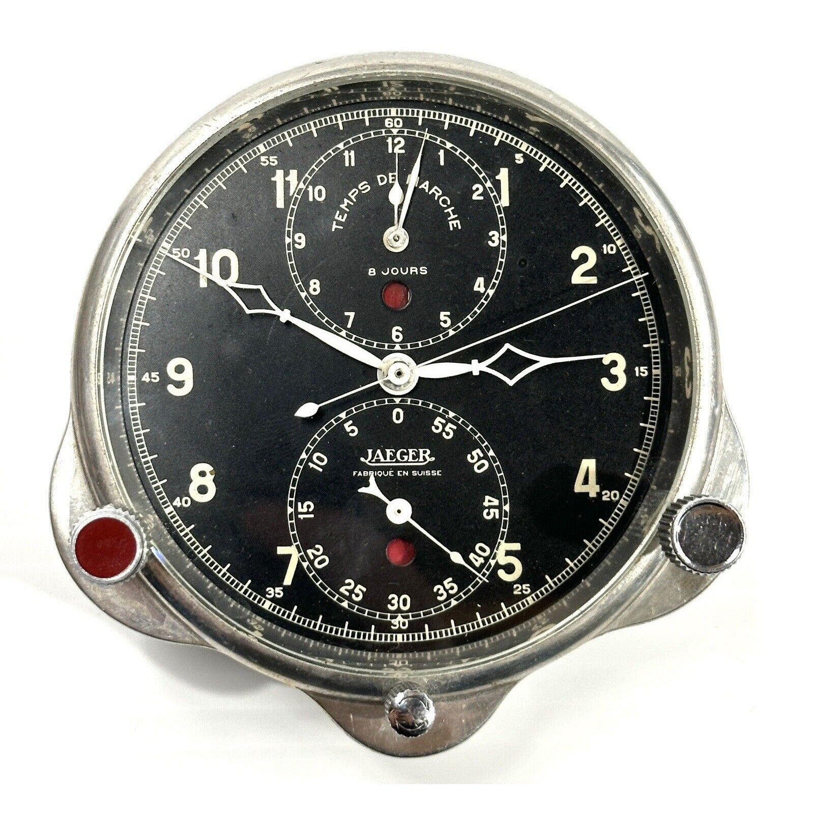Rare Vintage 1925-1950s Jaeger Temps De Marche 8-Day Chronograph Cockpit Clock