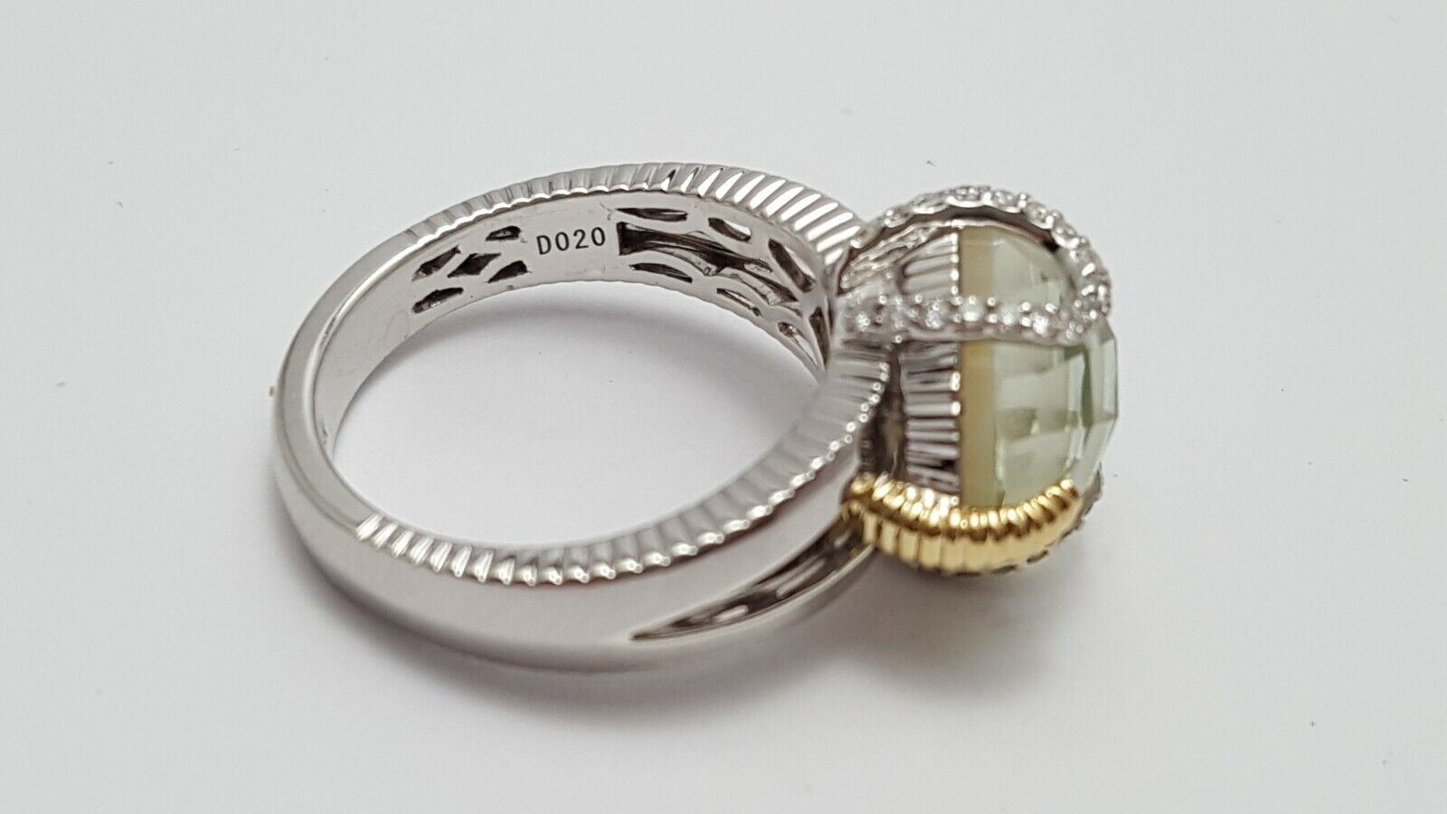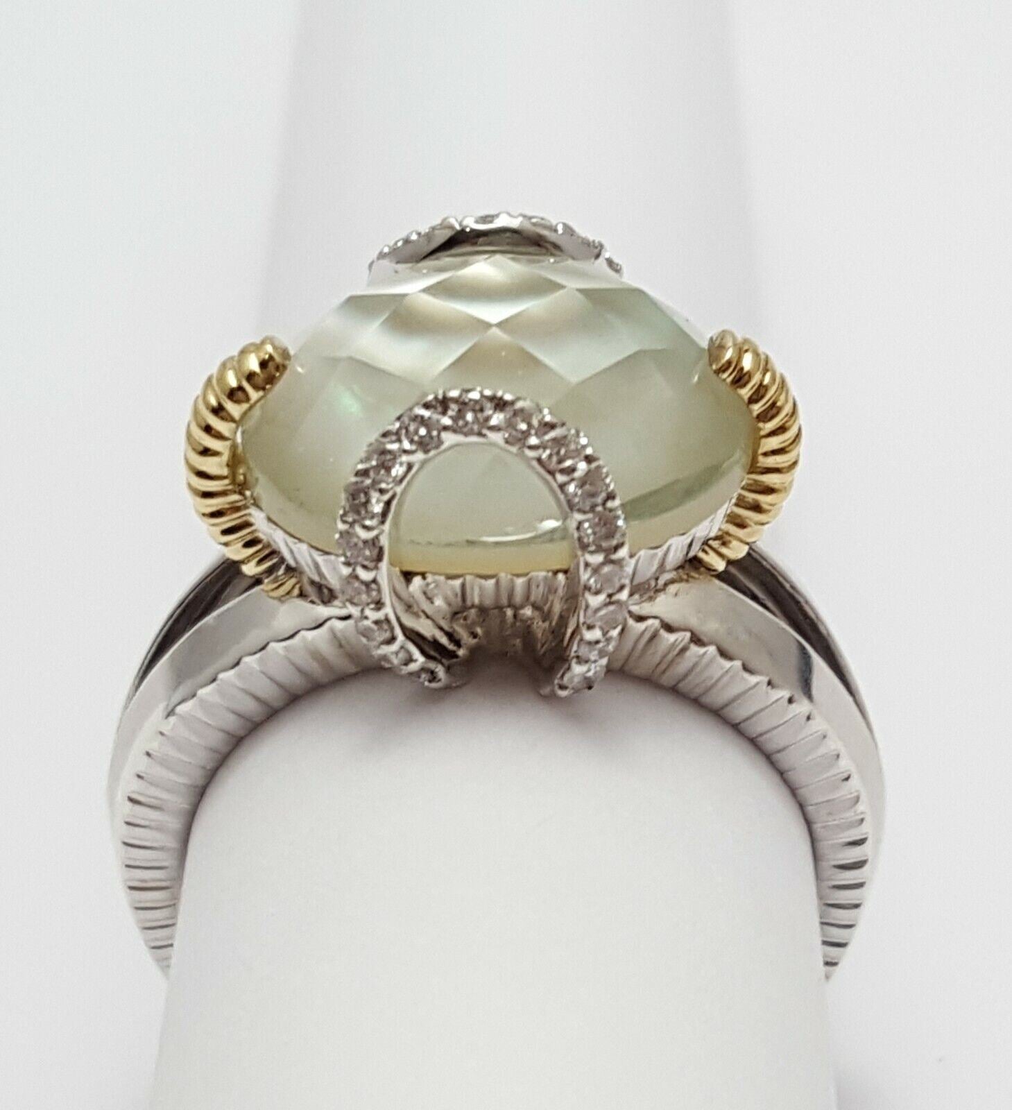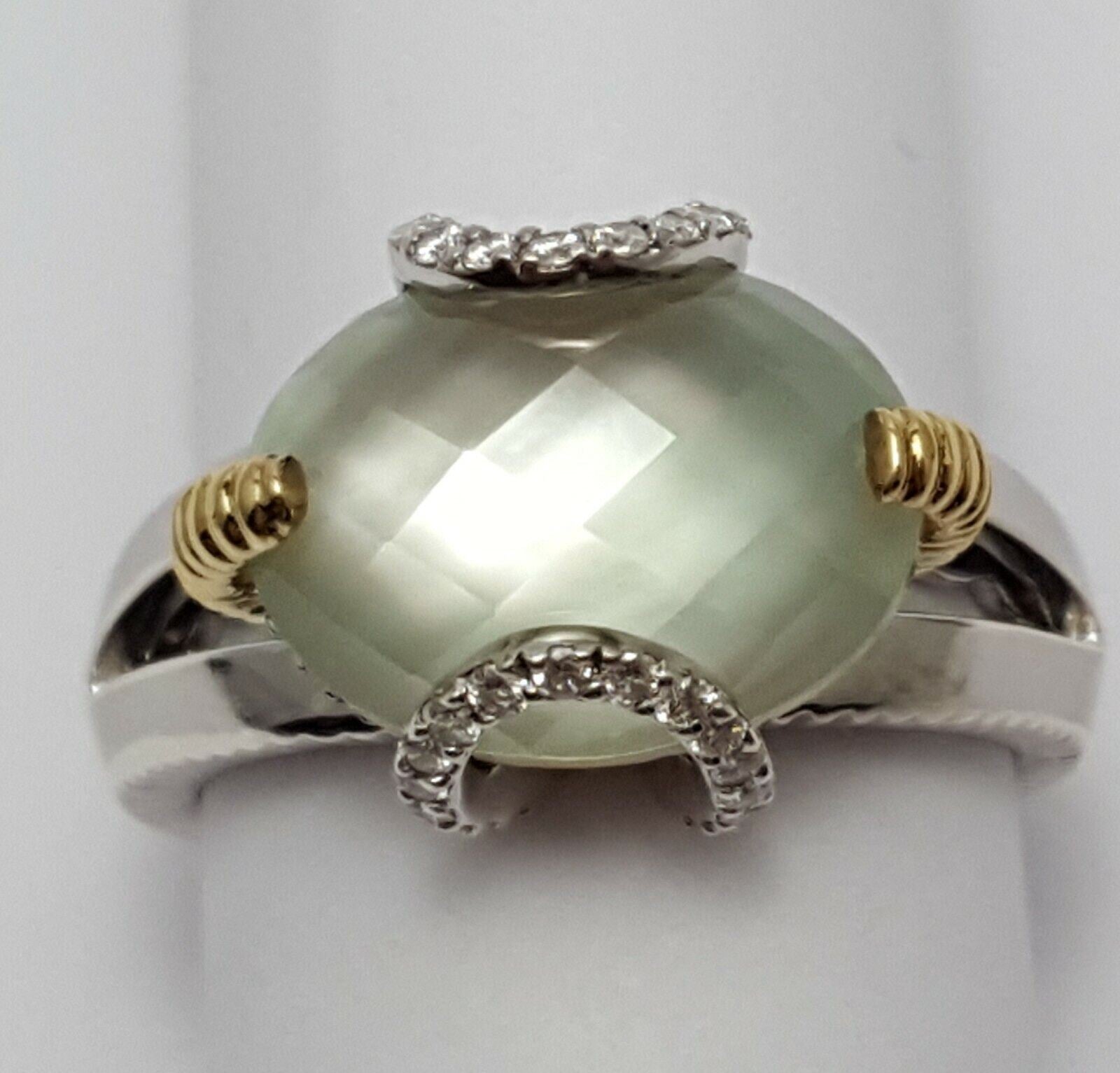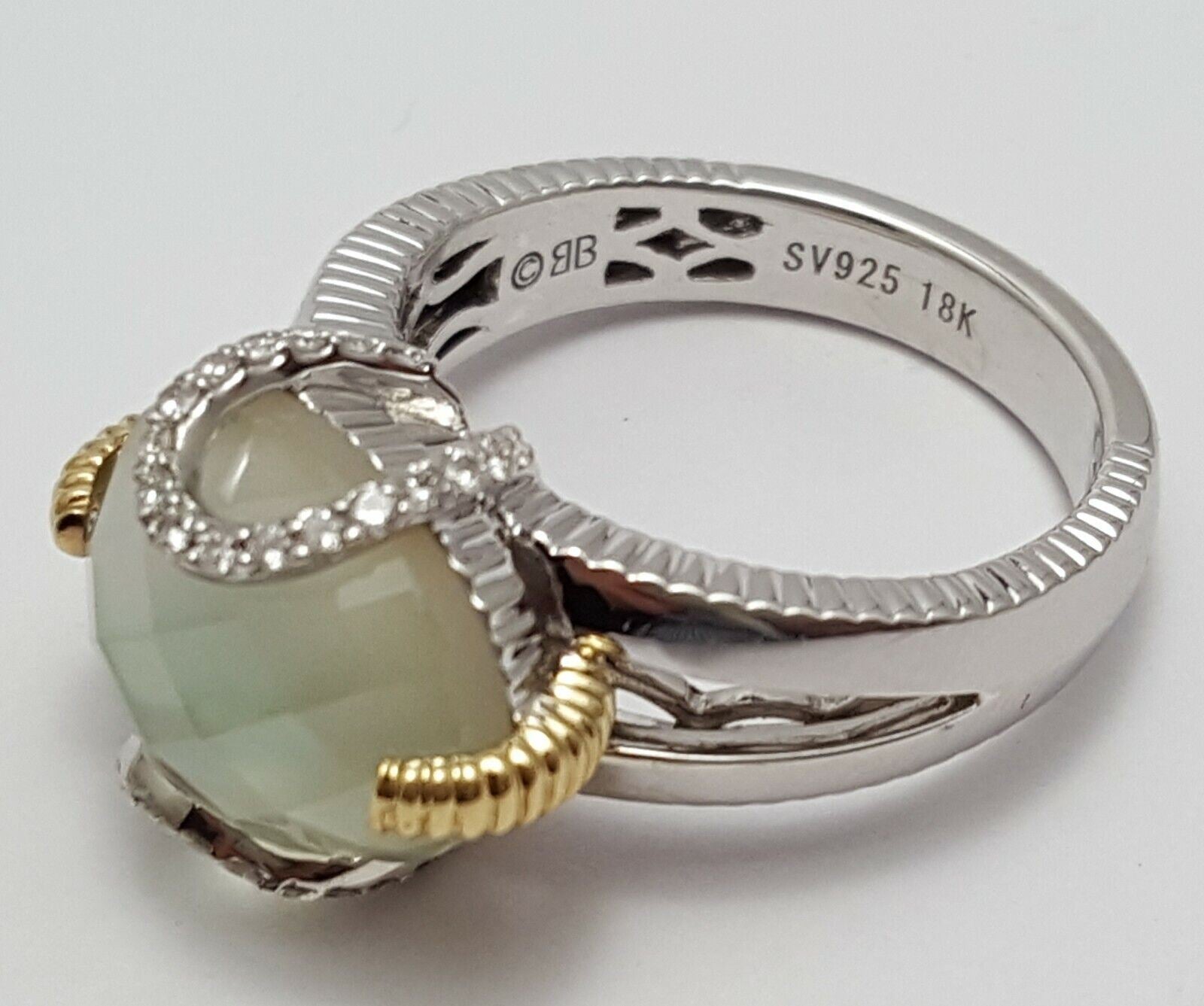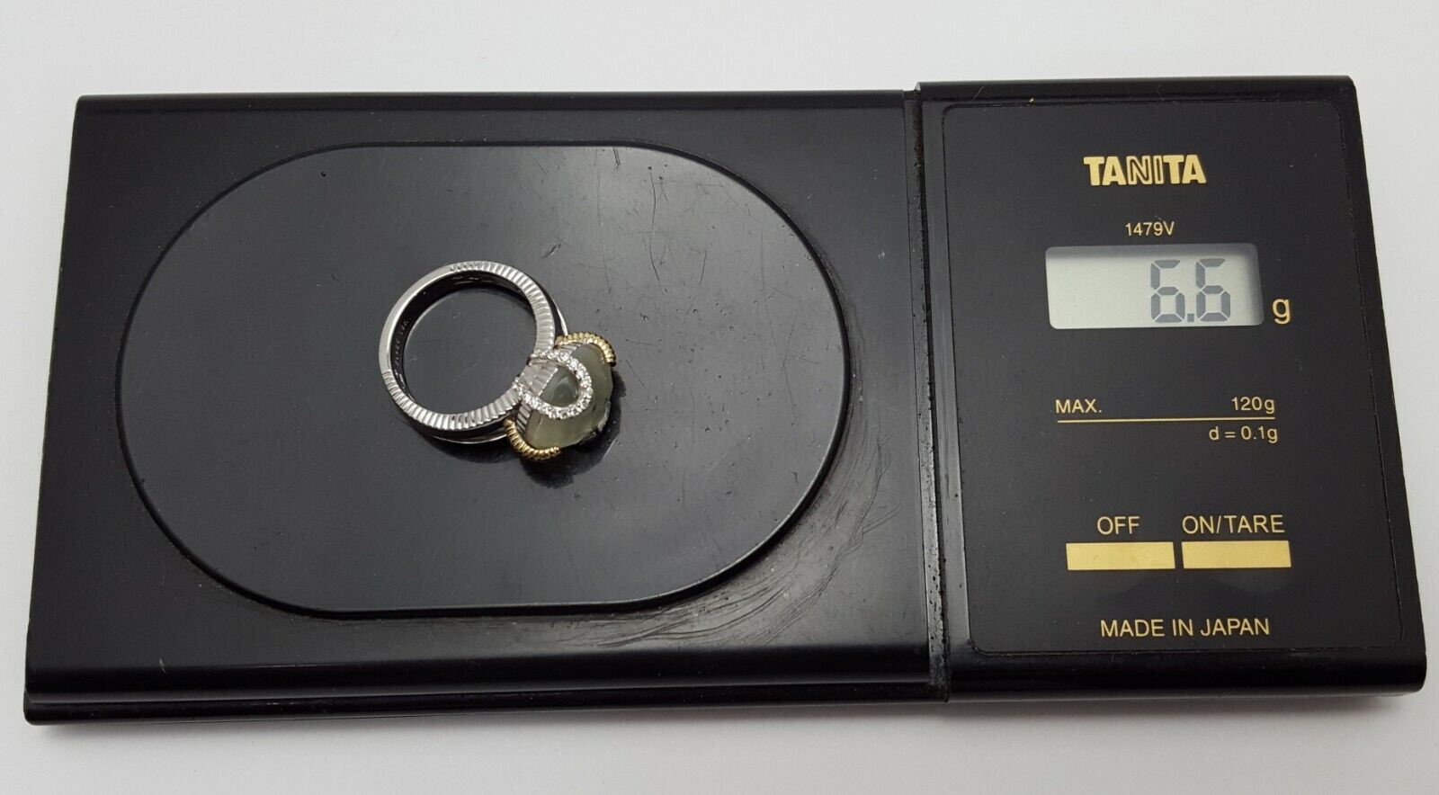RB Signed Sterling Silver 925 18K Yellow Gold Two Tone Ring with Diamonds & Crystal