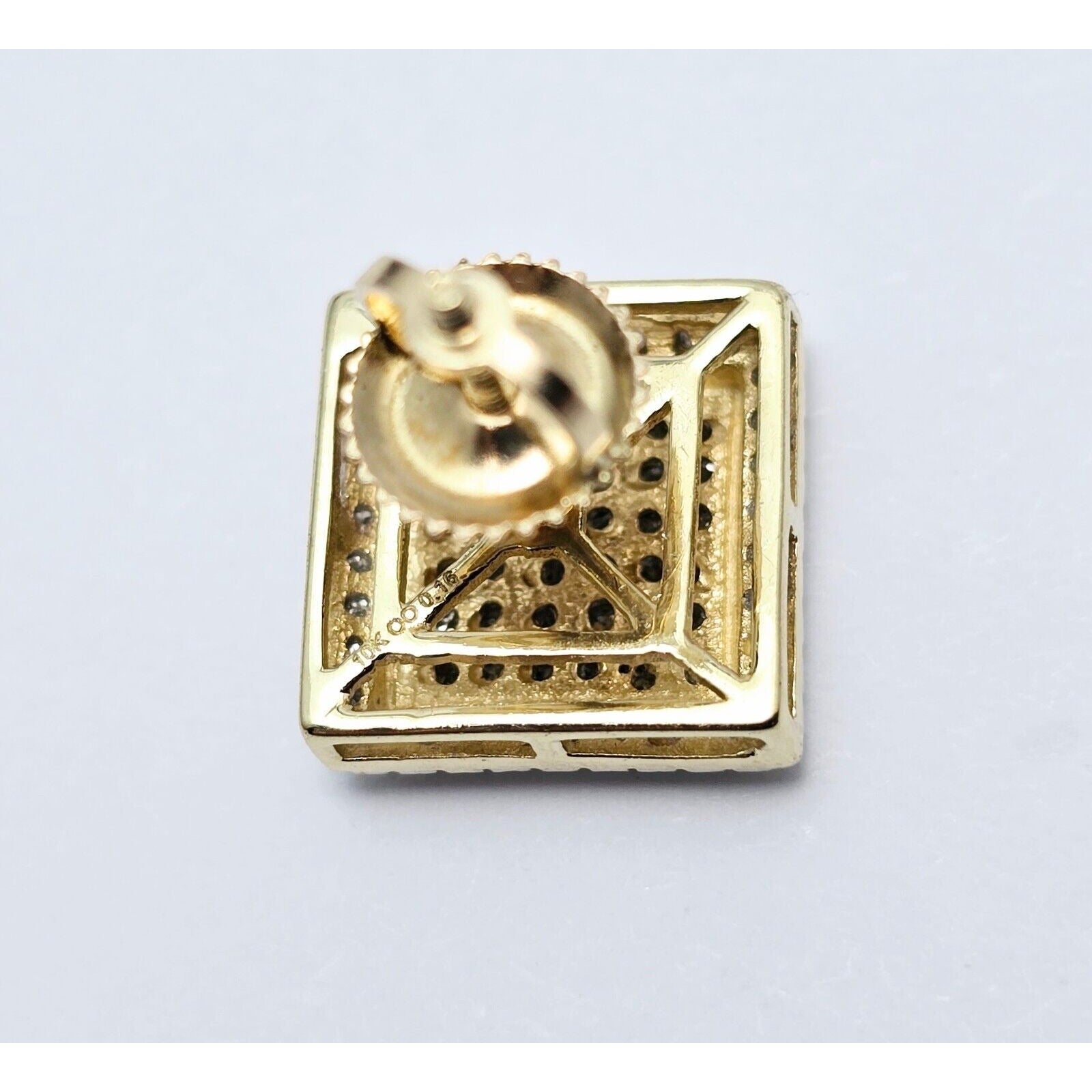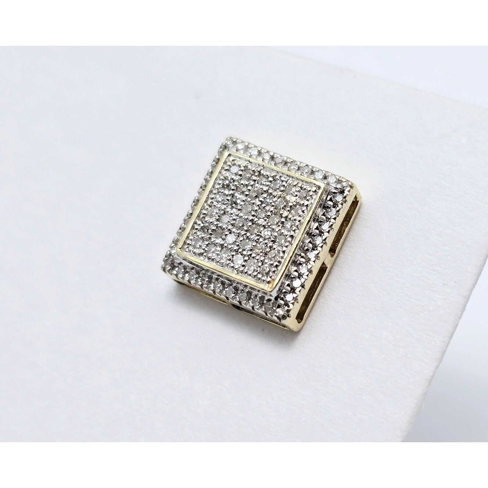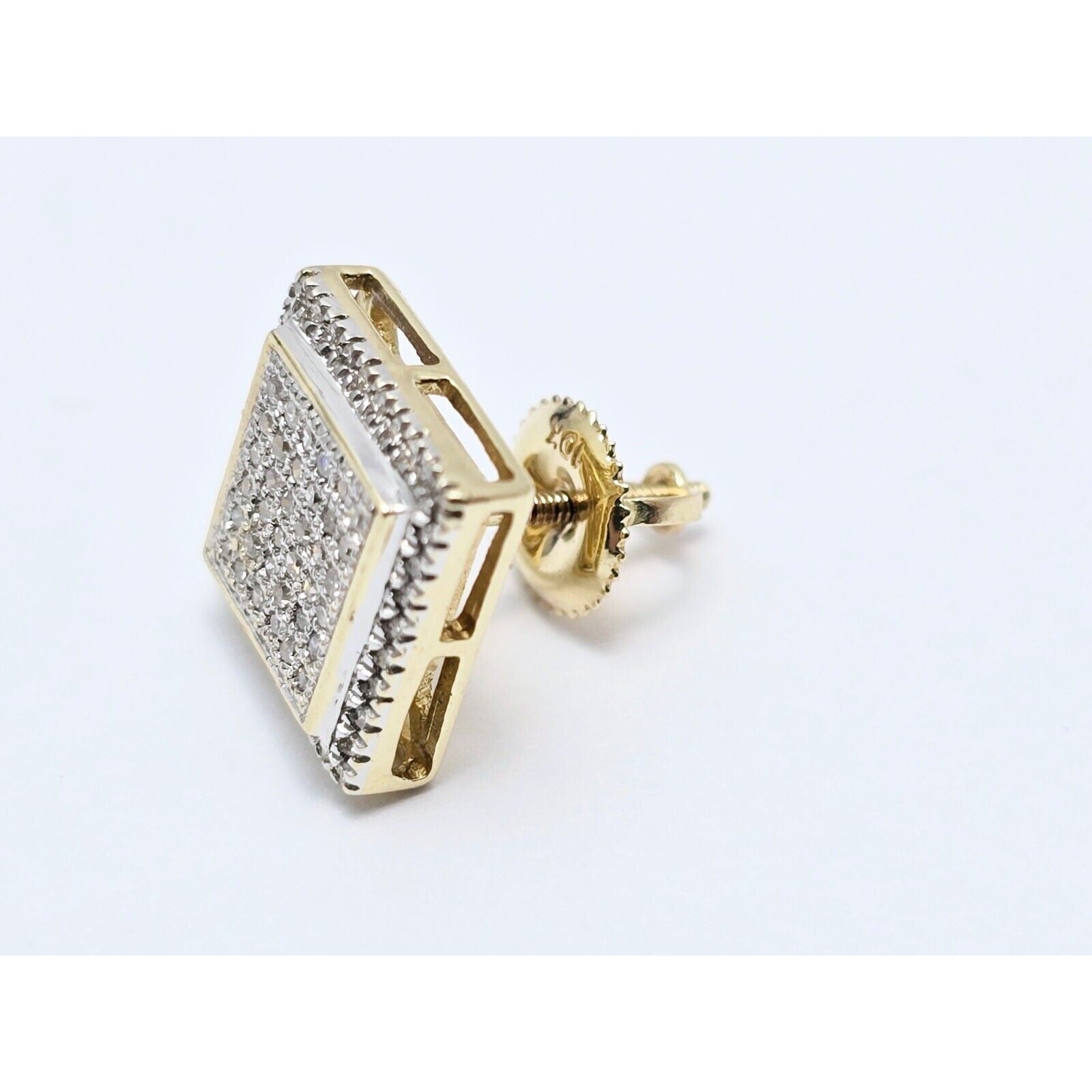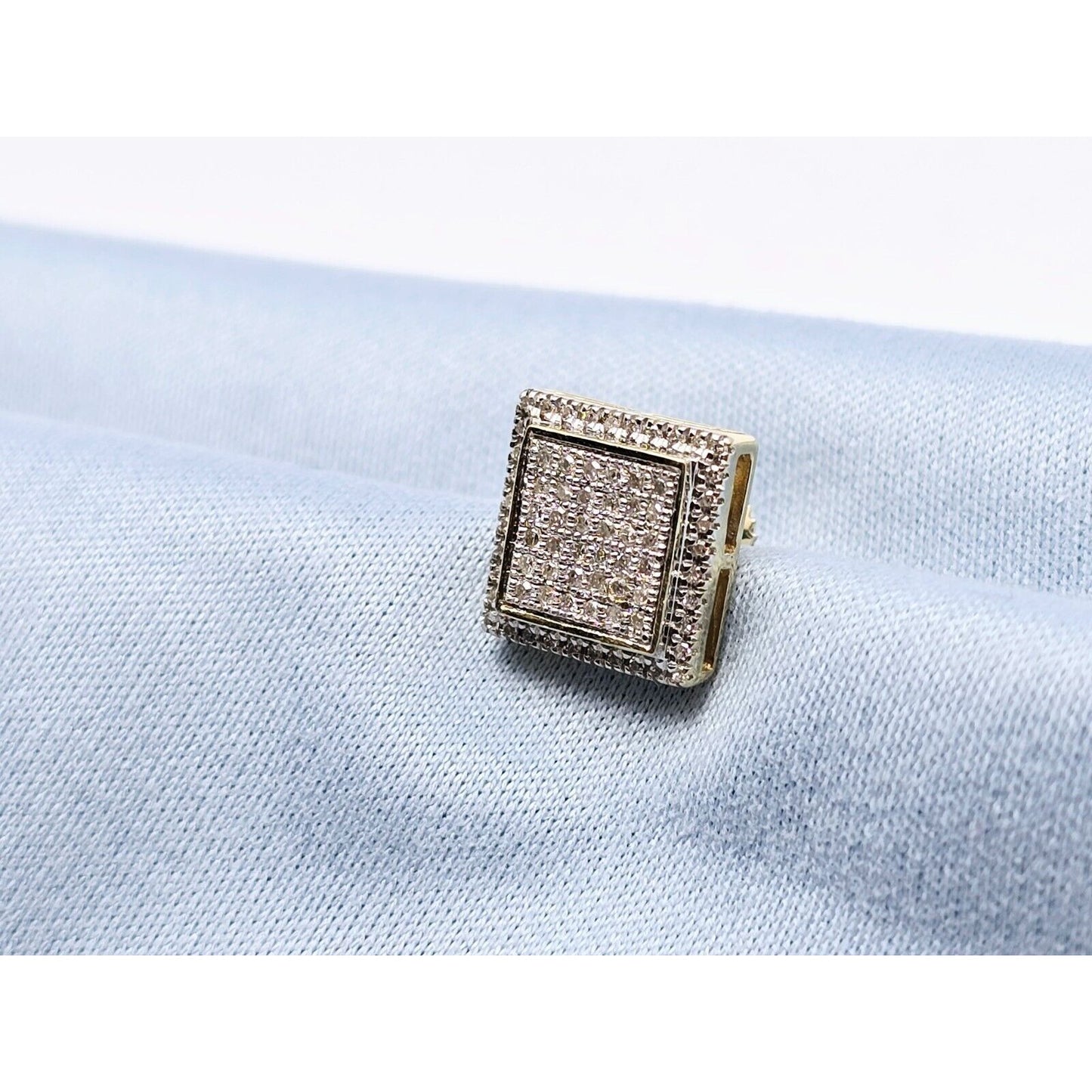 Single 10K Two Tone Gold Square Shaped Diamond Stud Earring