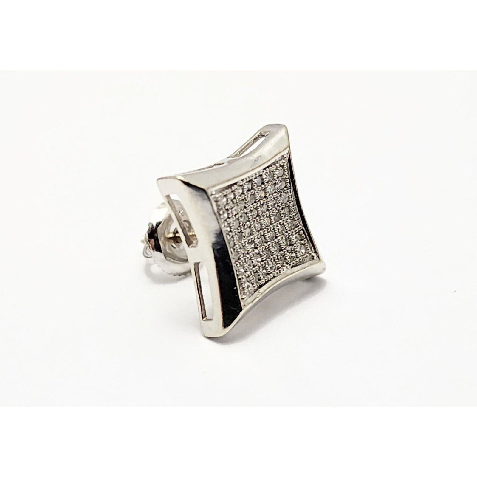 Single 10K White Gold Square Shaped Diamond Stud Earring