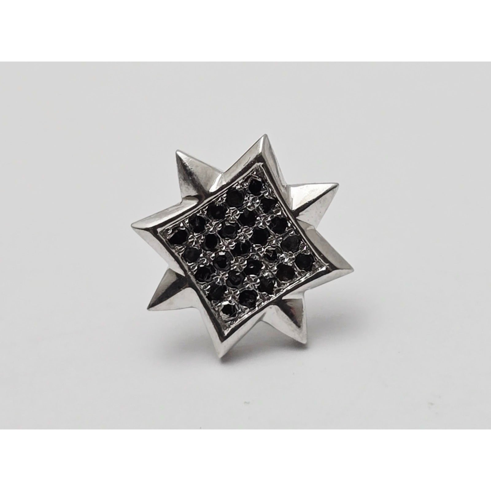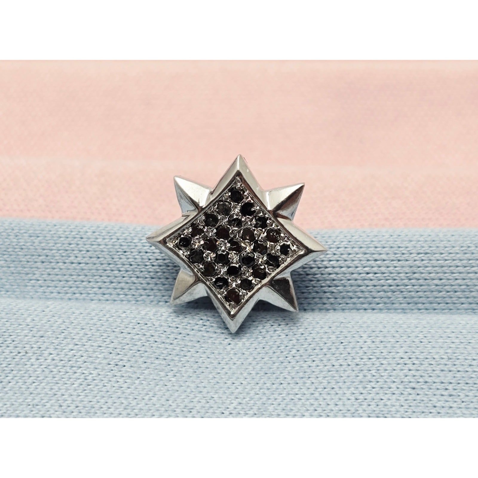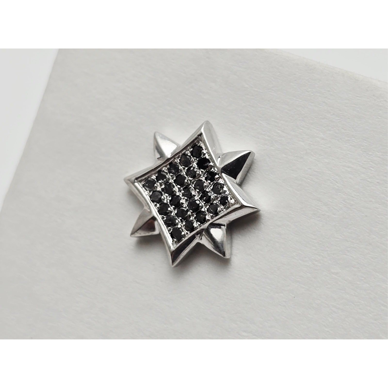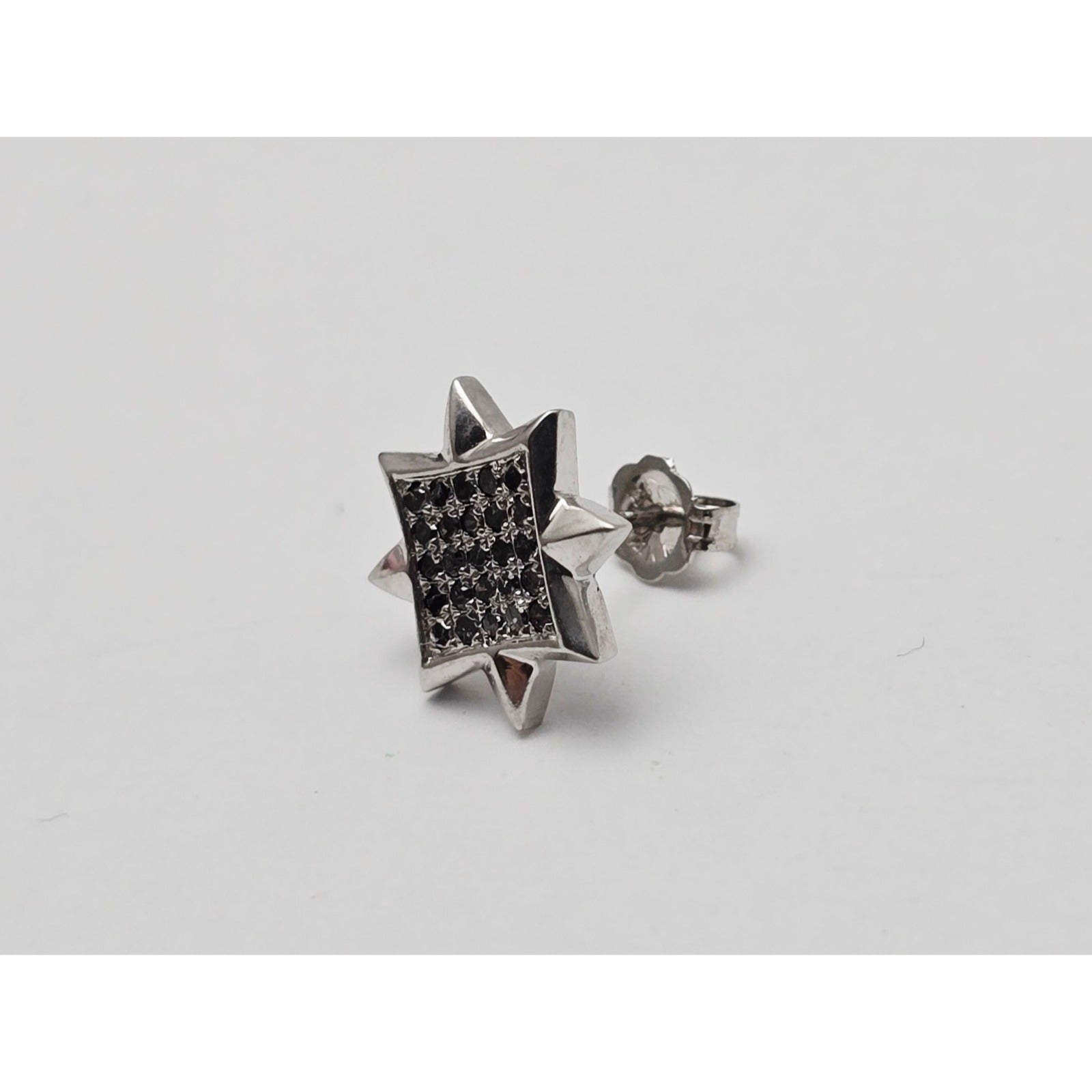 Single 10K White Gold Star Shaped Black Diamond Stud Earring