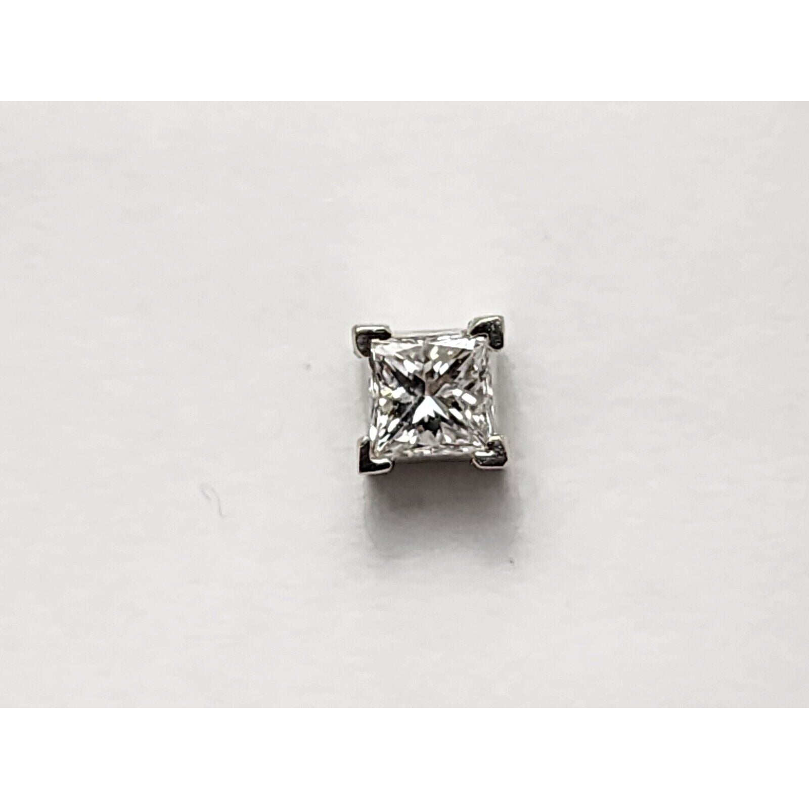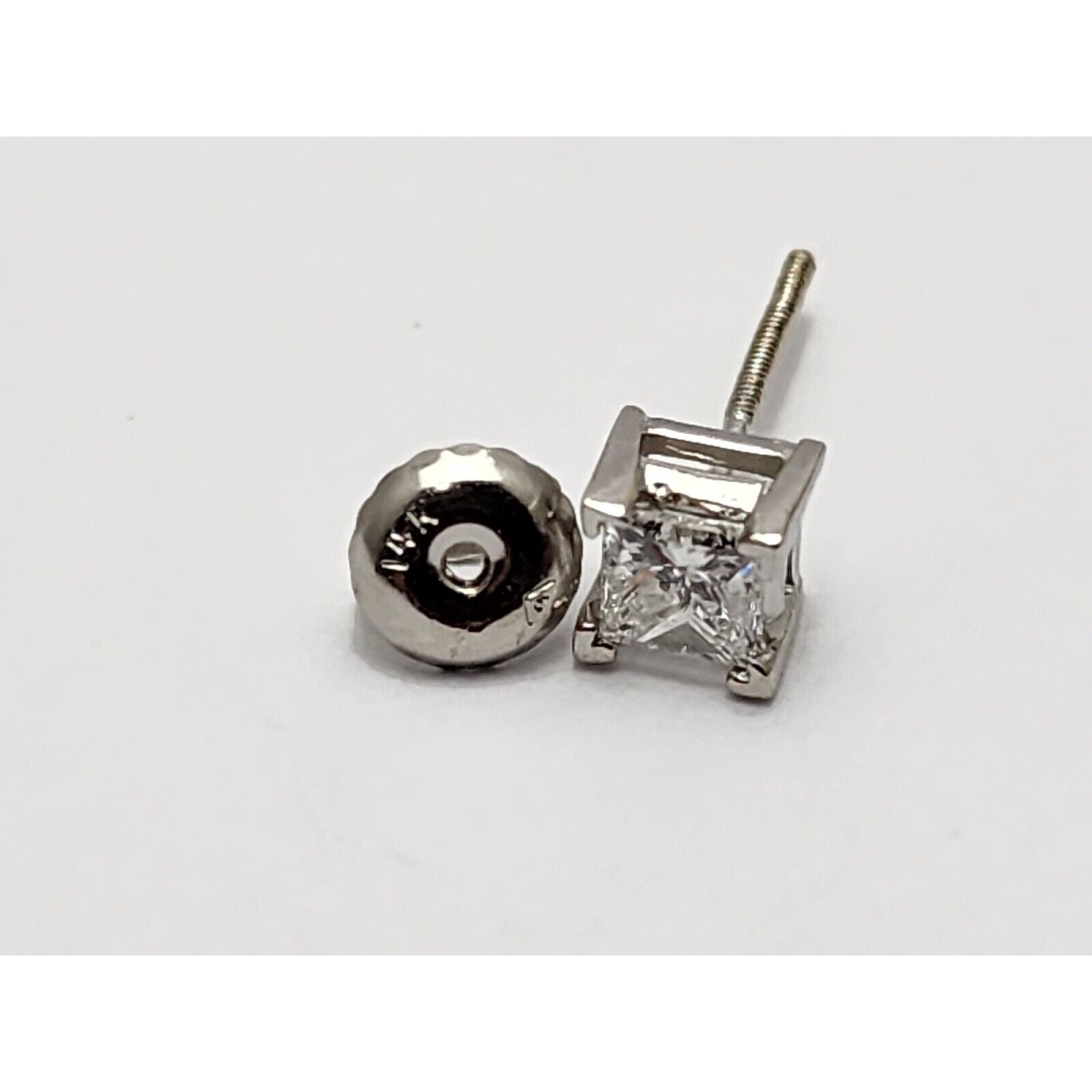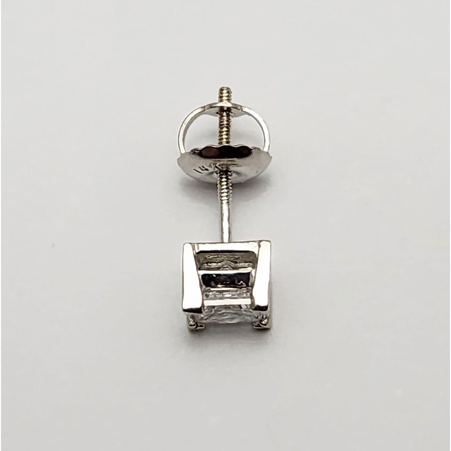 Single 14K White Gold Square Princess Cut Diamond Screw Back Stud Earring