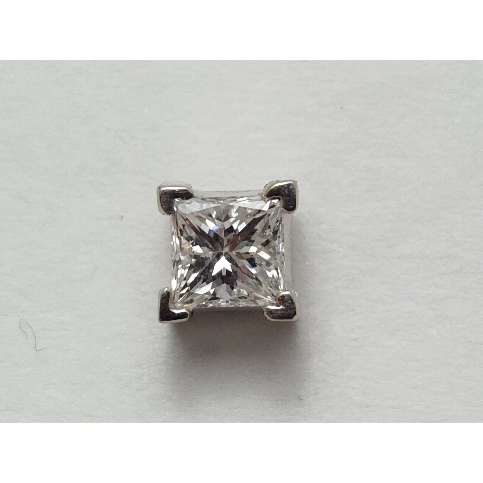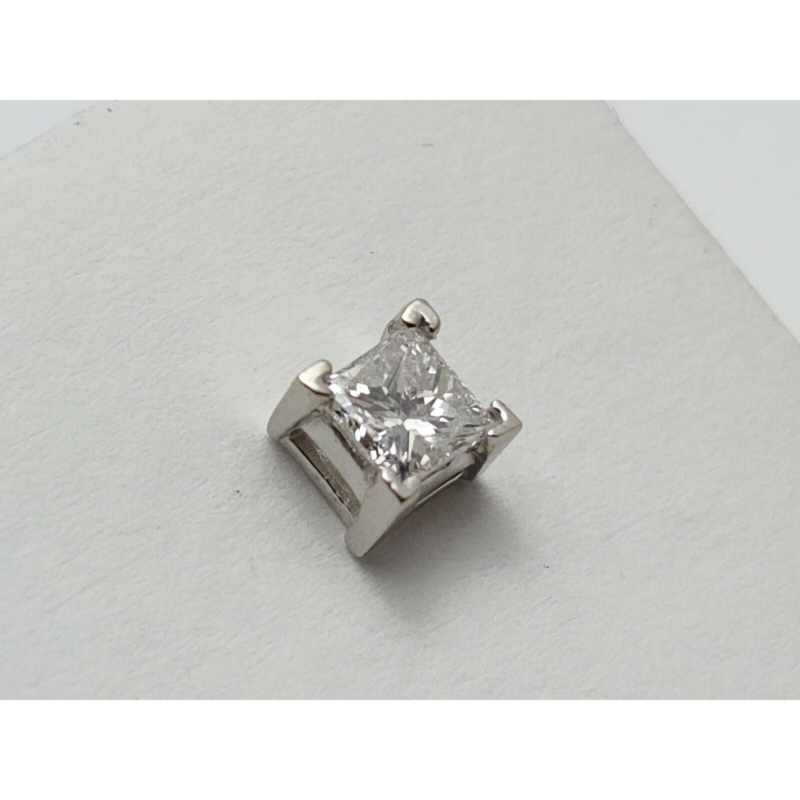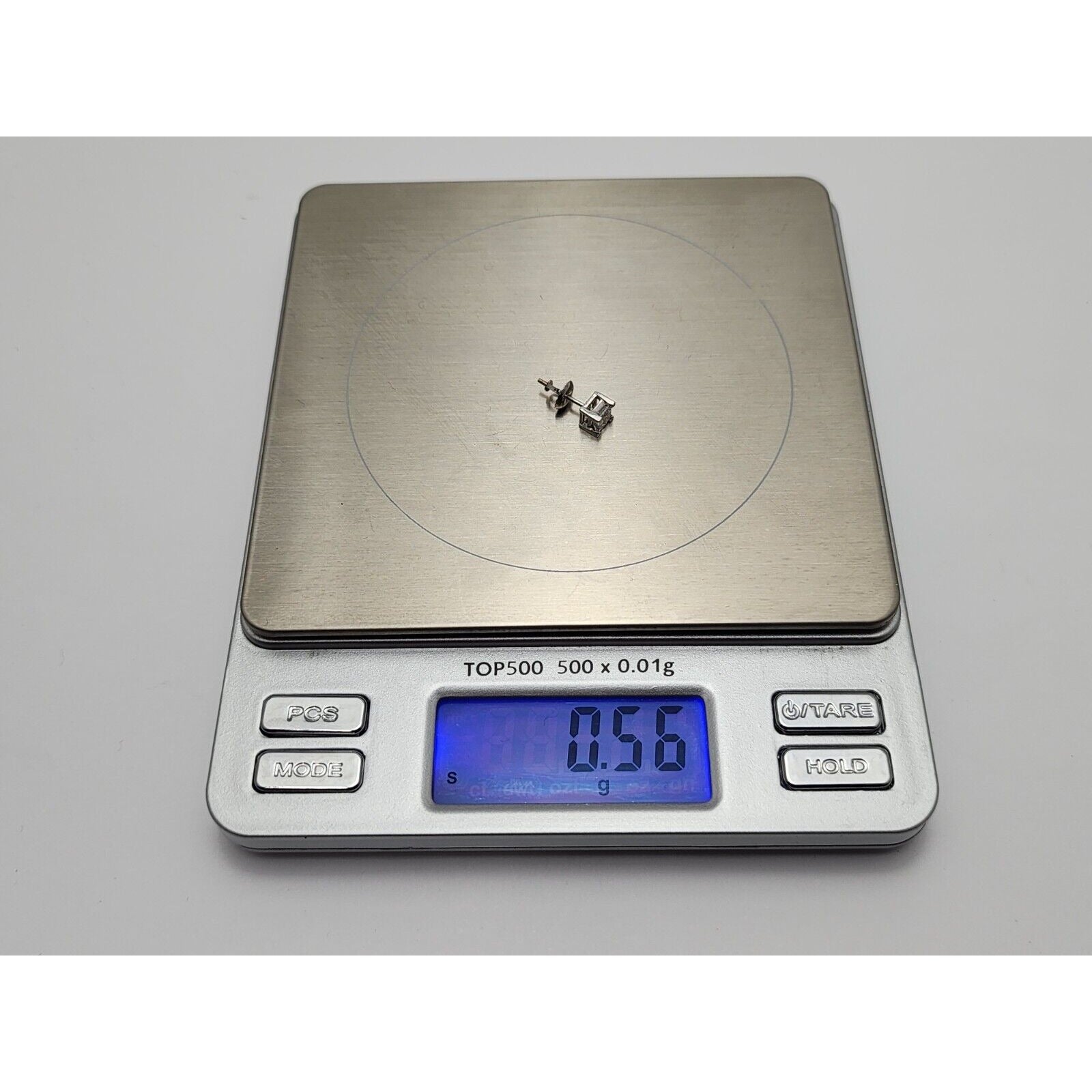 Single 14K White Gold Square Princess Cut Diamond Screw Back Stud Earring