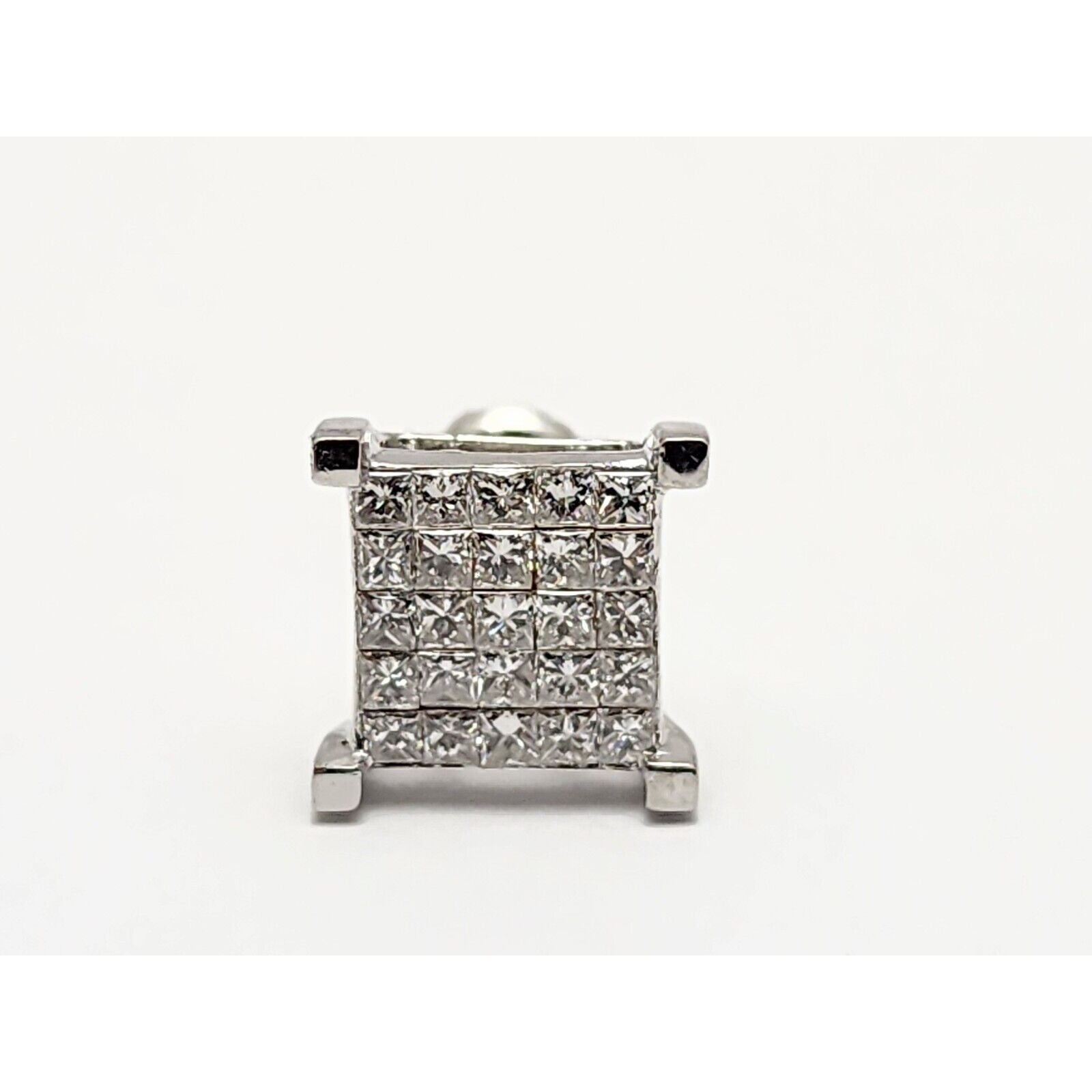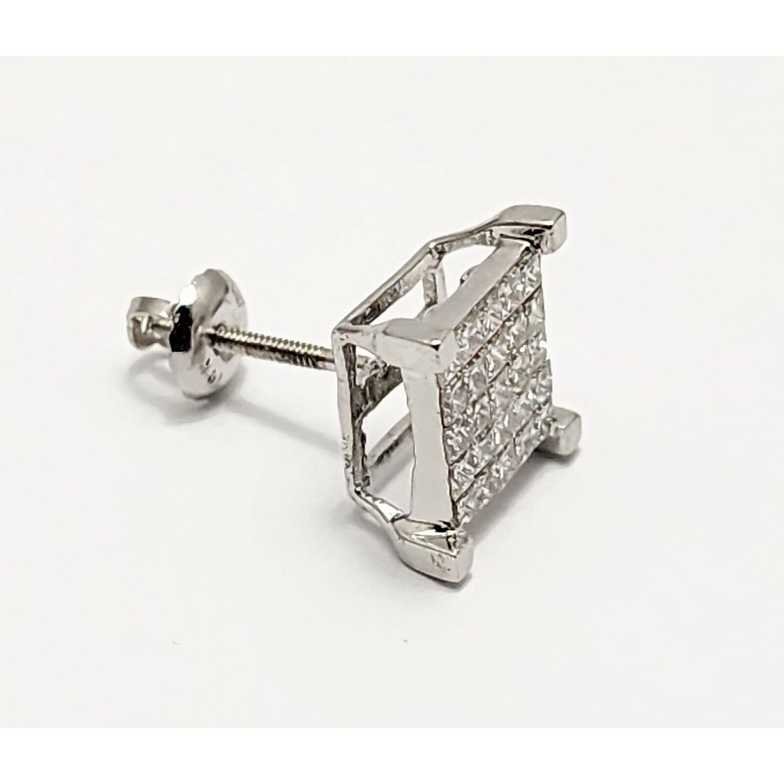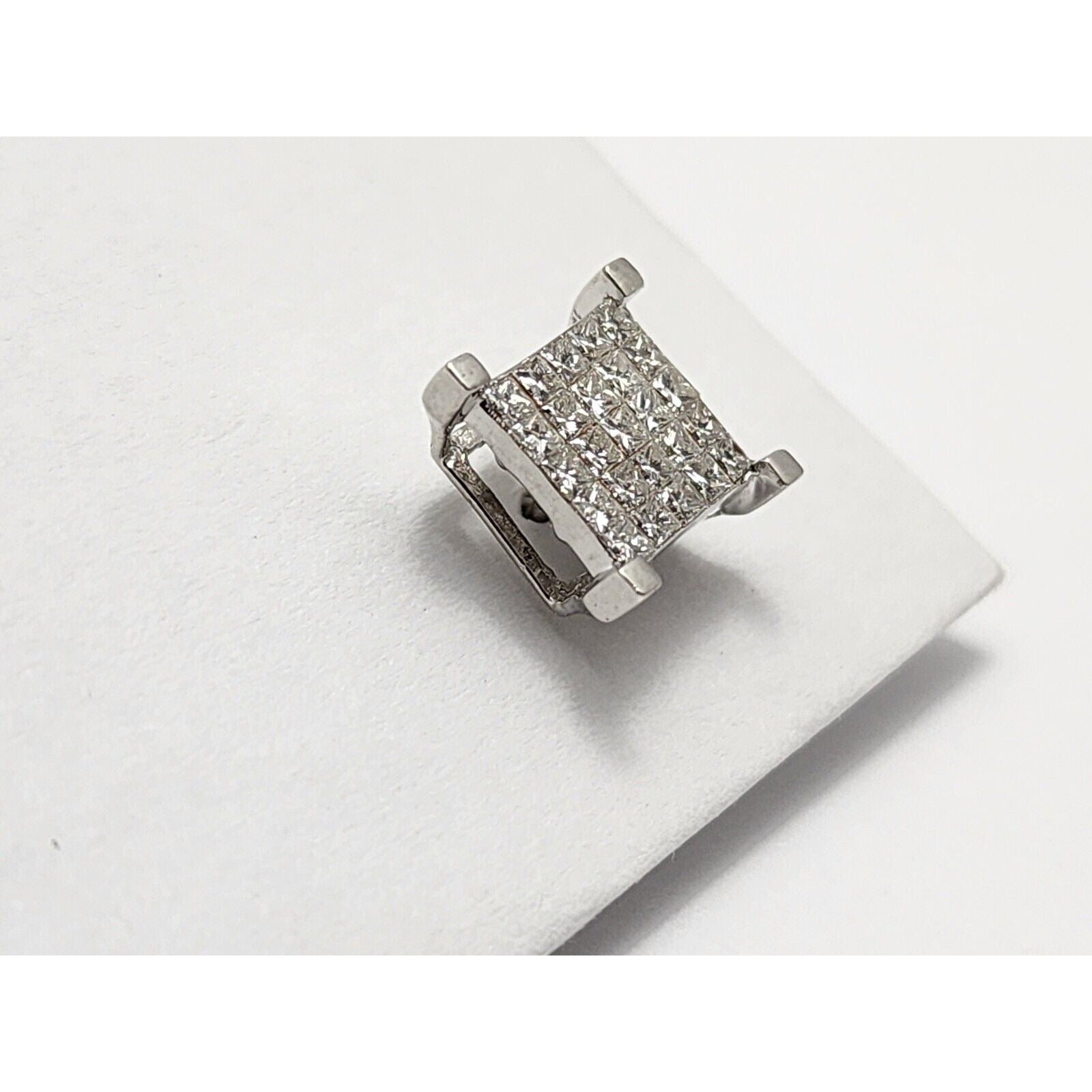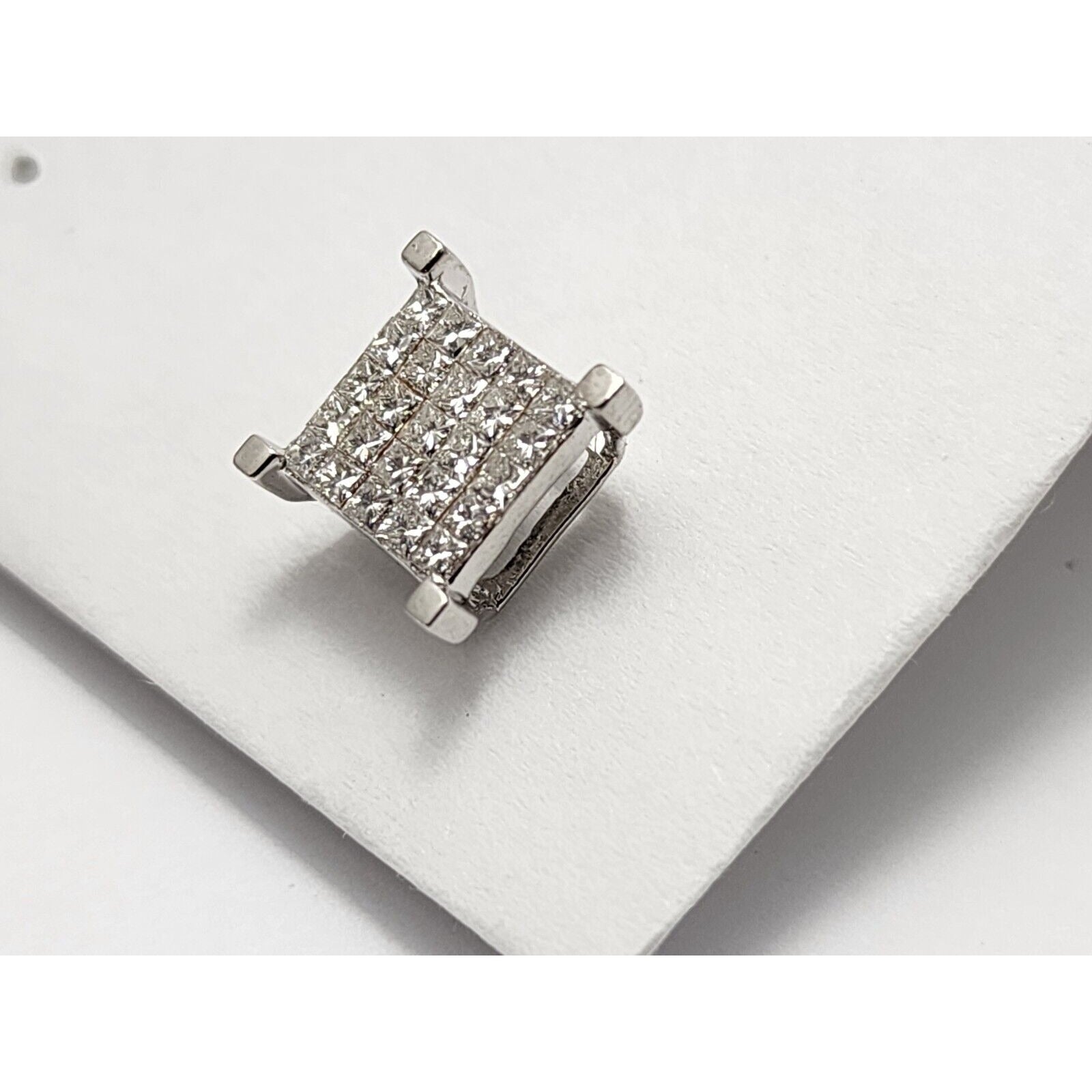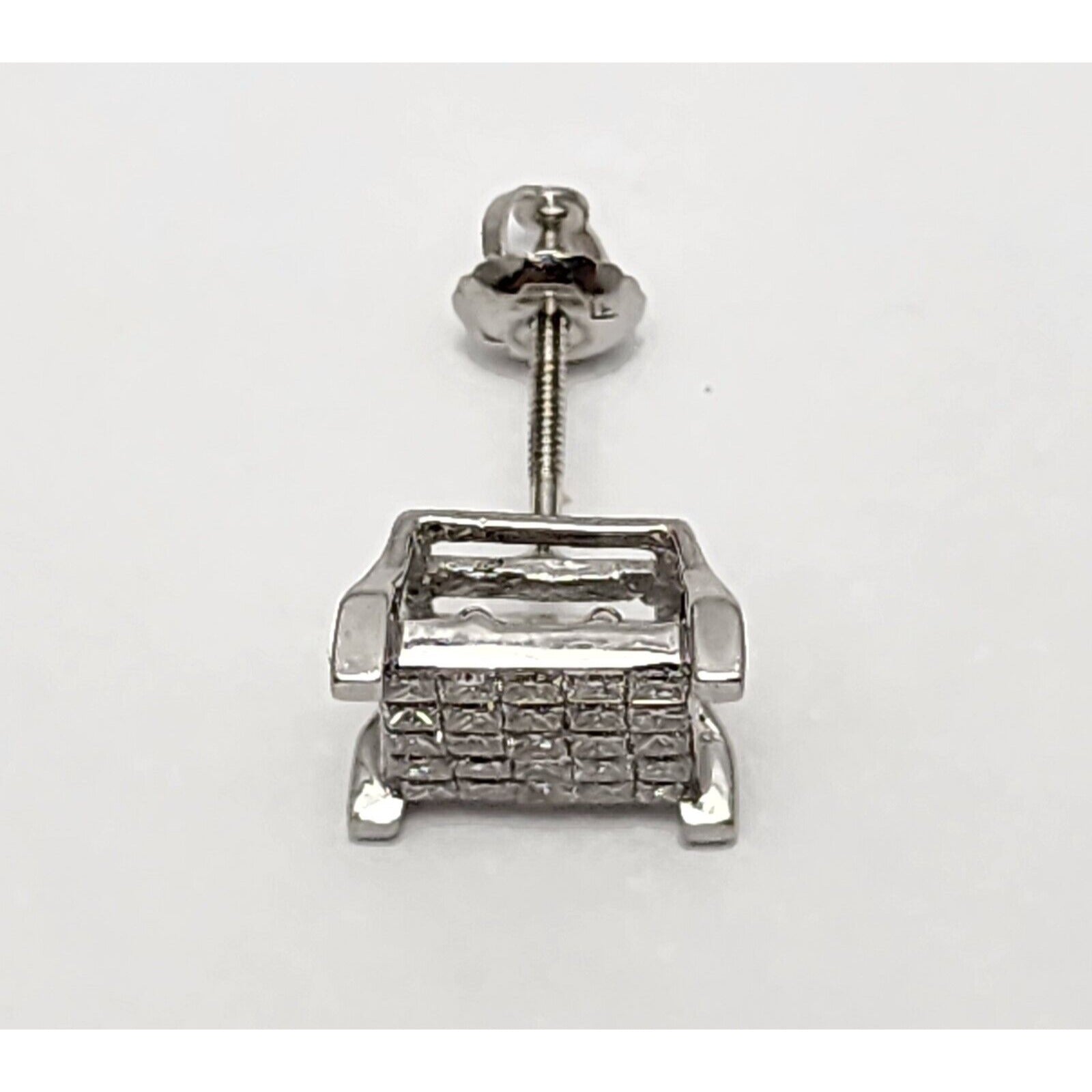 Single 14K White Gold Square Shaped Diamond Stud Earring