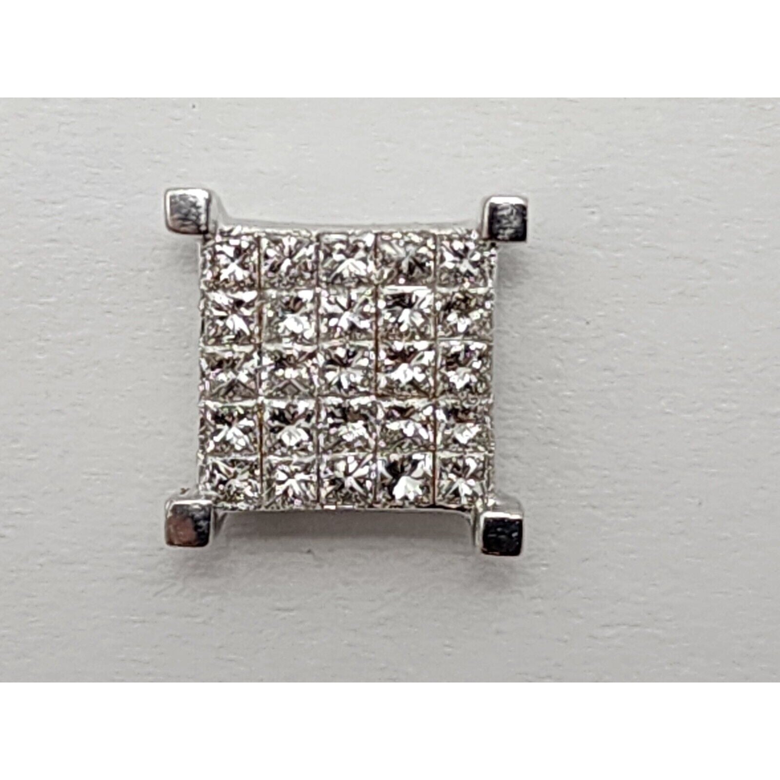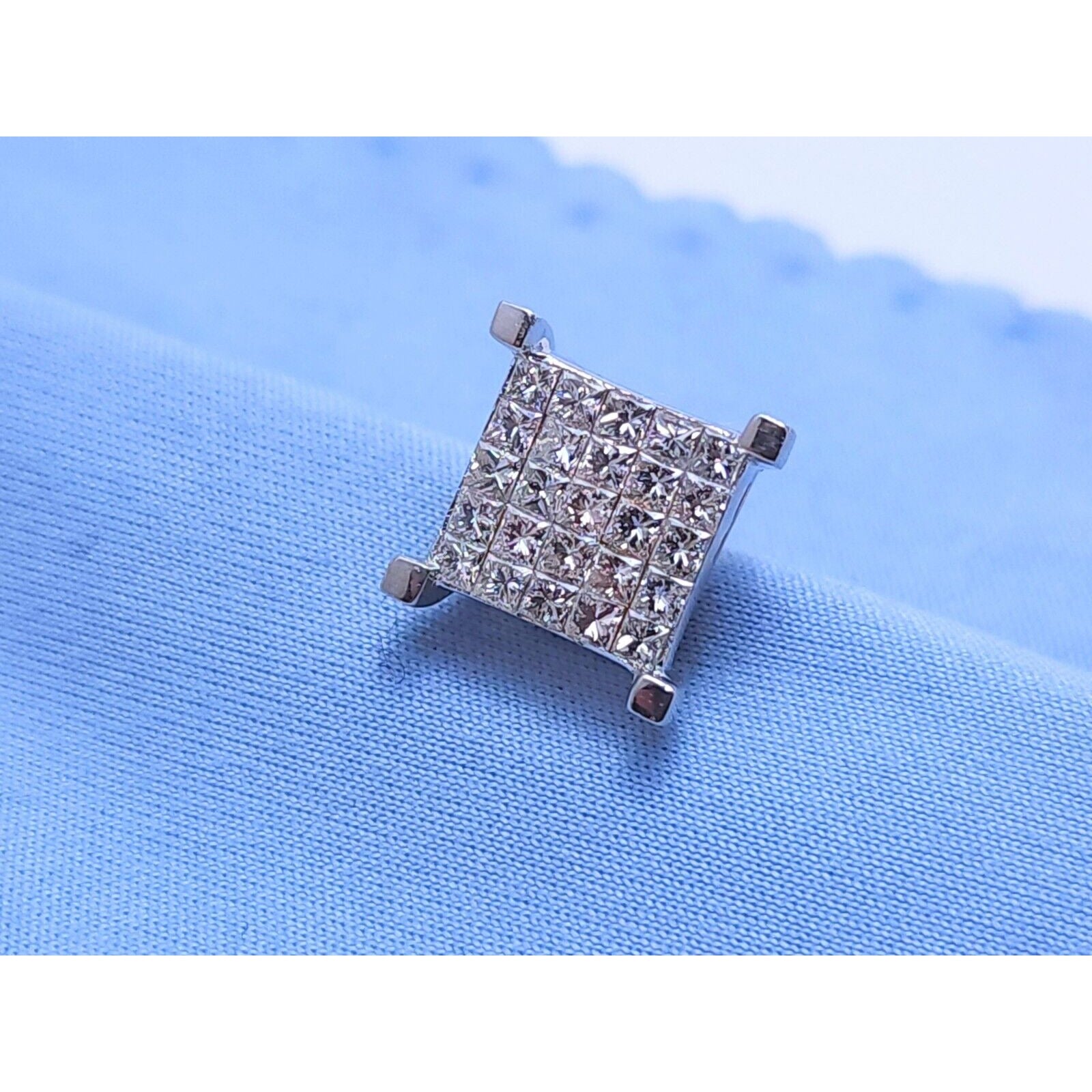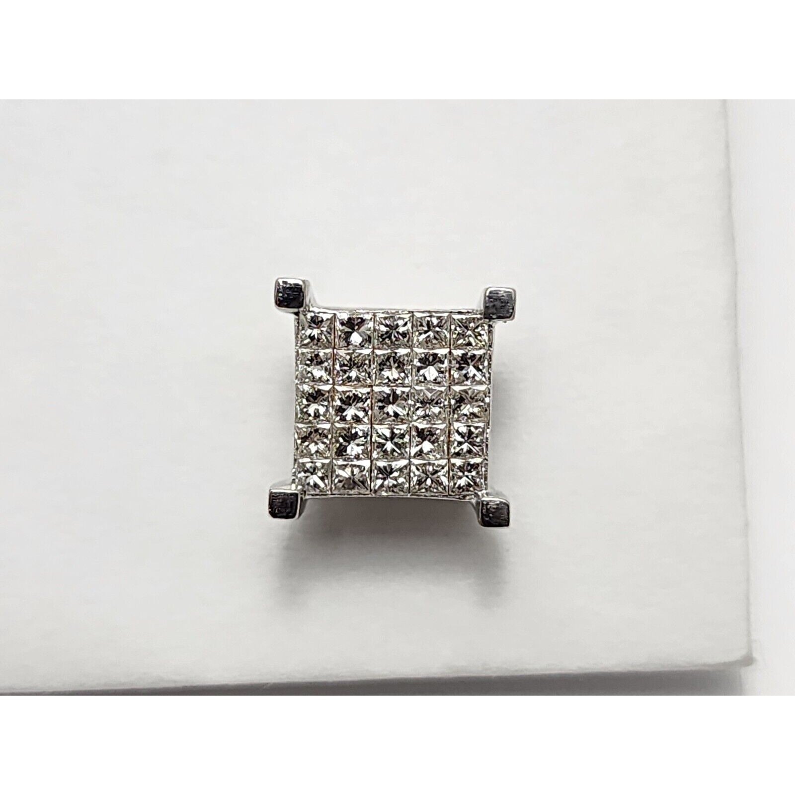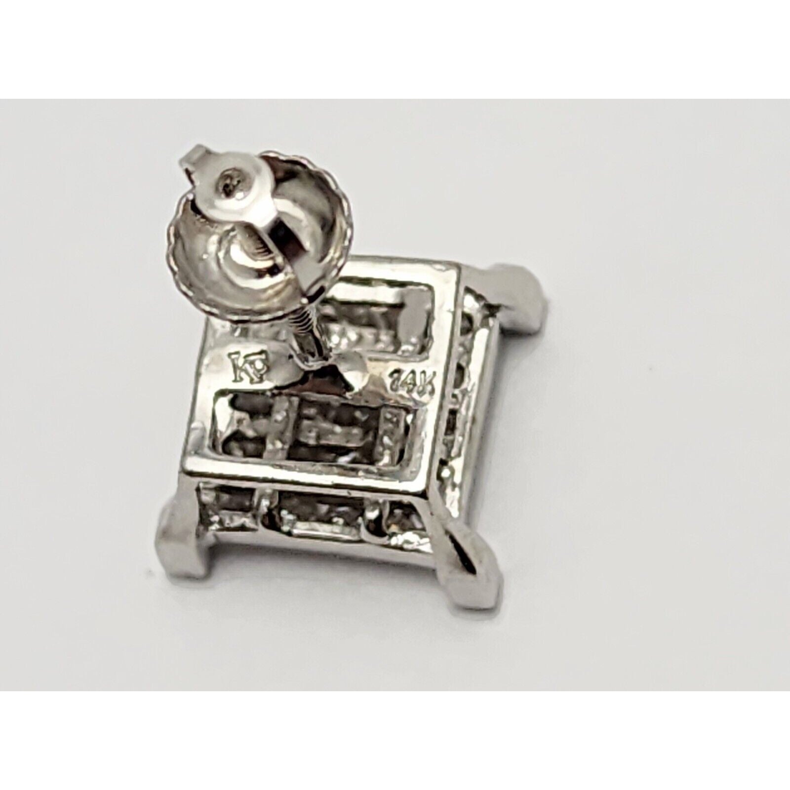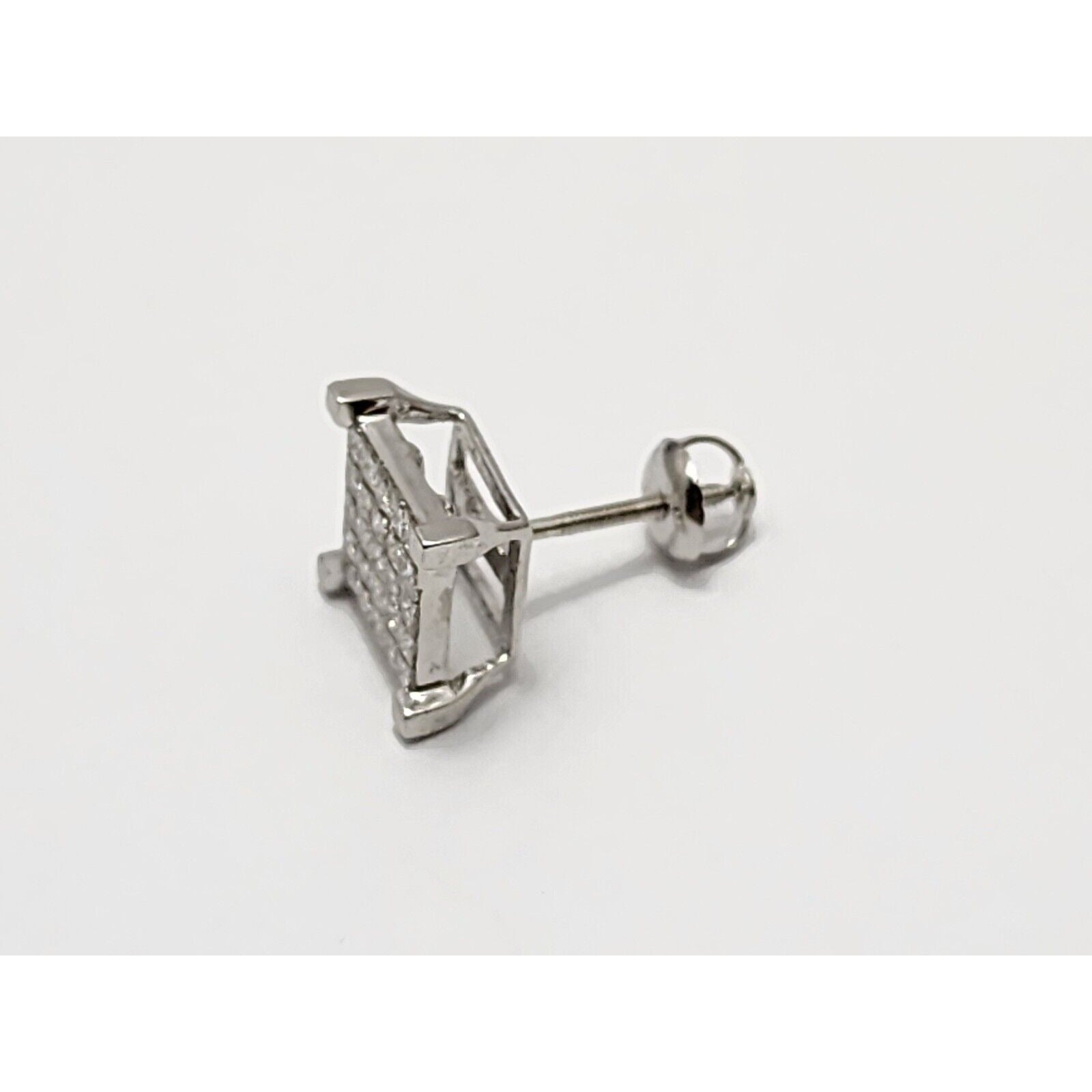 Single 14K White Gold Square Shaped Diamond Stud Earring